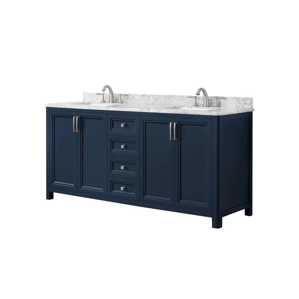 Sandon 72"x22"x34.5" Midnight Blue Bathroom Vanity. By Home Decorators Collection, Midnight Blue, Carrara Marble Top with 2 Rectangular Sink Basins, Grade: 1st Quality,This is a liquidated product. Any pre-existing retail, wholesale or manufacturer warranties will not transfer with the sale of this Product unless expressly stated otherwise. Weight: 350. Sold by: Piece. Sold as: Quantity X Price. Inventory #: 5081-50804-SAN 72