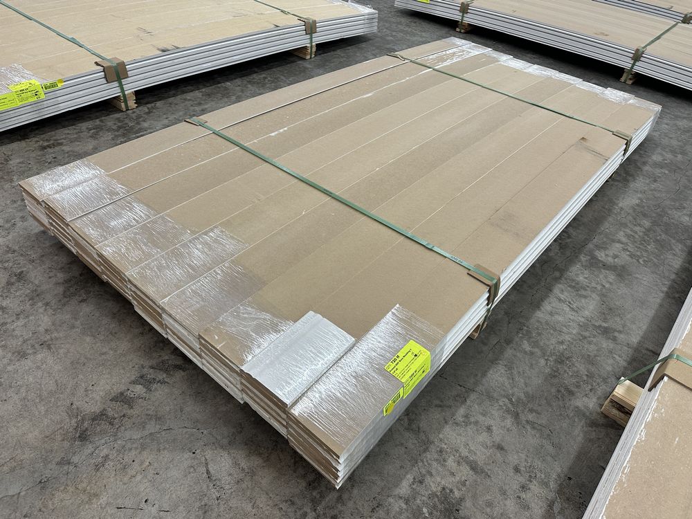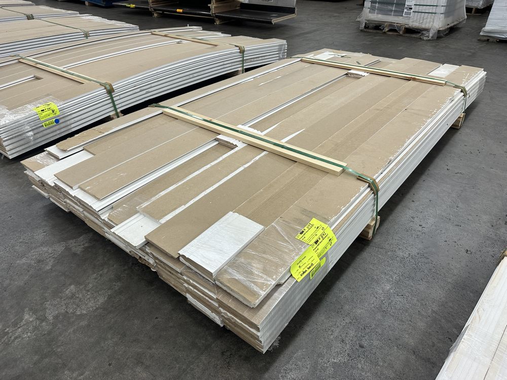 Primed MDF Base Moulding 5 1/4"x8' *See Description*. Grade: B *Fork Damage, Contains Some Broken Boards*,This is a liquidated product. The Auction Company makes no express or implied representations or warranties of any kind regarding the Product. Any pre-existing retail, wholesale or manufacturer warranties will not transfer with the sale of this Product unless expressly stated otherwise on this page. The Buyer accepts the Product in as-is condition, with all faults. Weight: 690. Sold by: Linear Foot. Sold as: Quantity X Price. Inventory #: 3020-Prmd 5