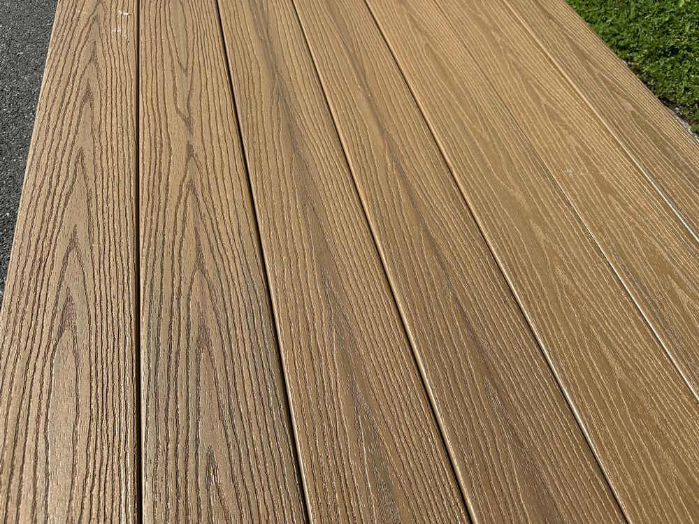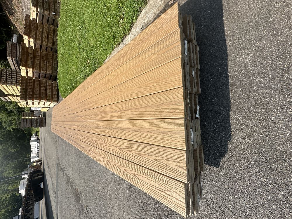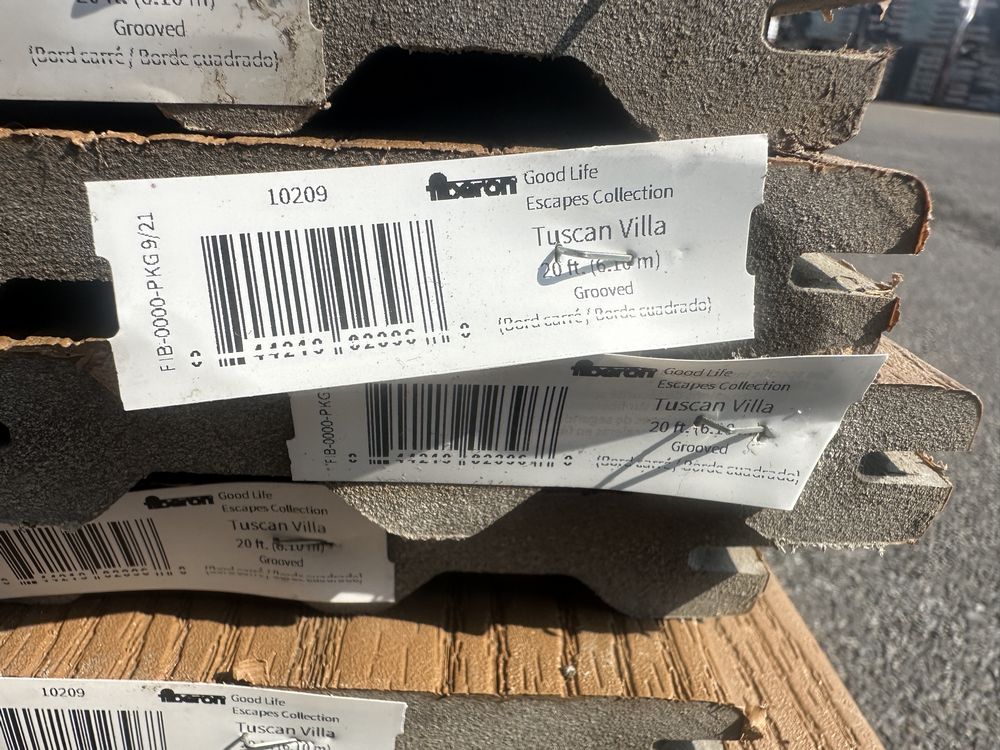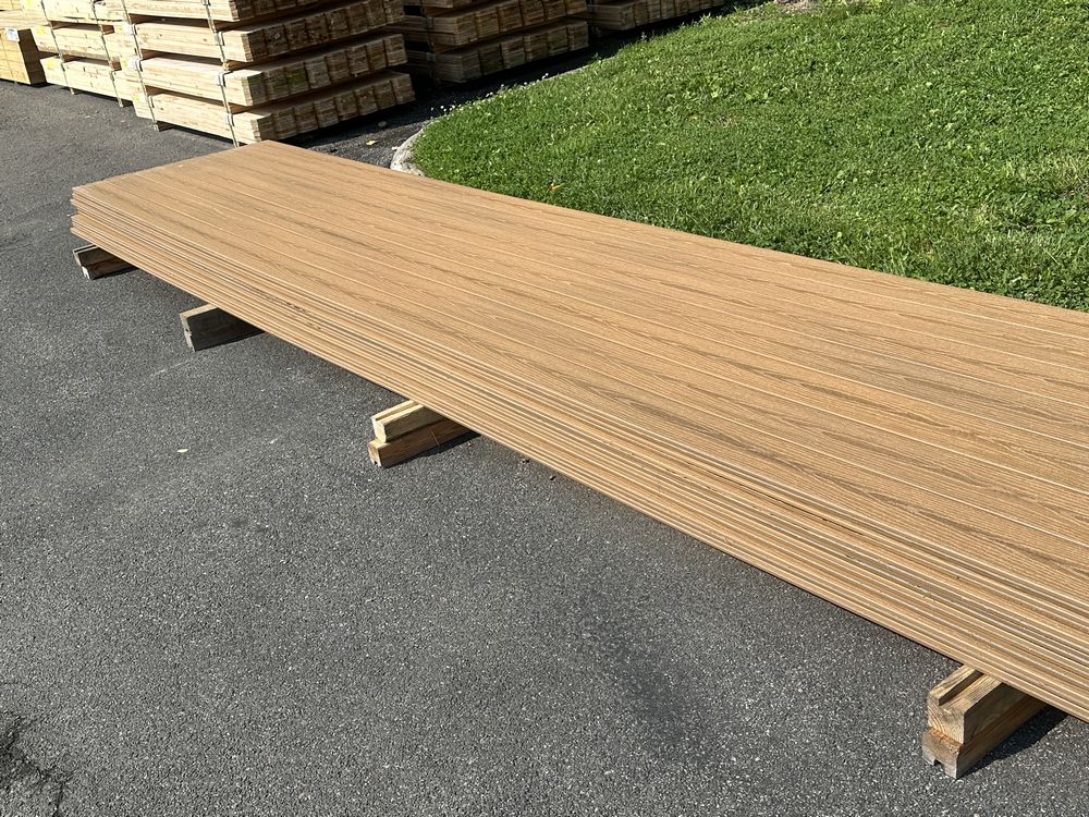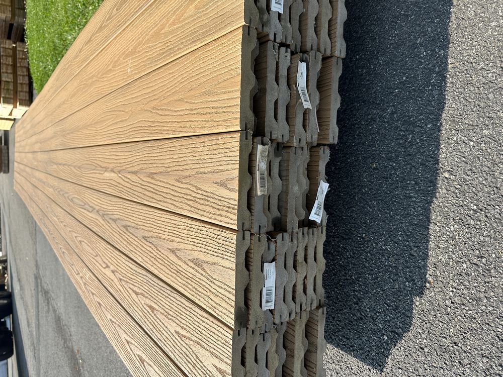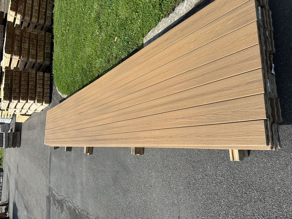 Tuscan Villa PVC Grooved Composite Decking 5/4"x6"x20'. By Fiberon, PVC Cap, 56 Boards Total, Grooved Edge, Scalloped Bottom, Actual Dimensions 1"x6"x20', Grade: 1st Quality,This is a liquidated product. The Auction Company makes no express or implied representations or warranties of any kind regarding the Product. Any pre-existing retail, wholesale or manufacturer warranties will not transfer with the sale of this Product unless expressly stated otherwise on this page. The Buyer accepts the Product in as-is condition, with all faults. Weight: X. Sold by: Linear Foot. Sold as: Quantity X Price. Inventory #: 1019-COMP-TV 5/4x06x20