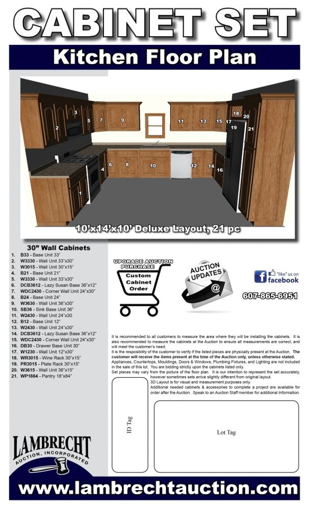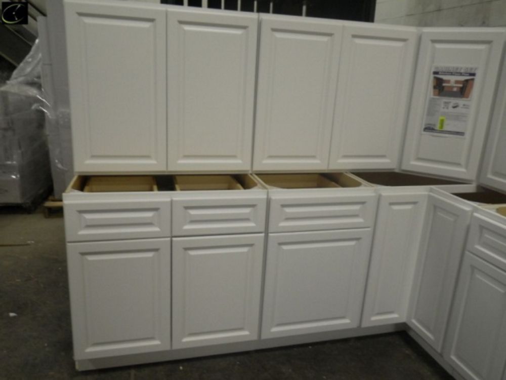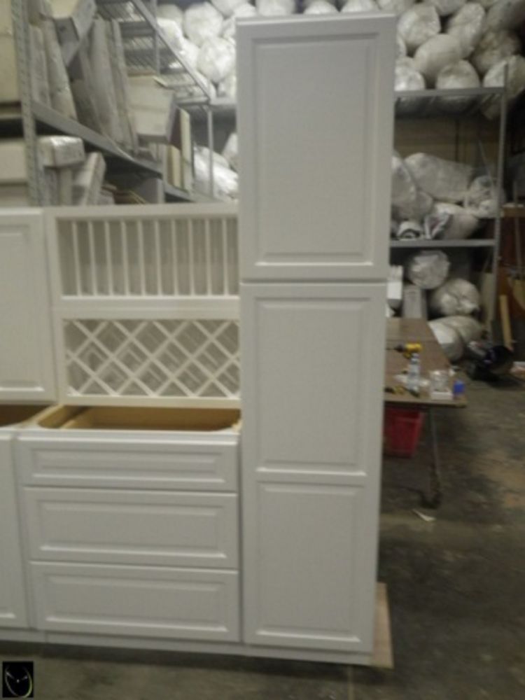 Newport White Kitchen Cabinet Set 10'x14'x10'. Deluxe Layout, 30" Walls, By GHI, Additional pieces may be available for order to the high bidder. Additional cabinets ship boxed, ready to assemble. -3/4” Solid Wood Face Frame -3/4" HDF 5-pcs Door & Drawer Front -Full Overlay and 1/2" raised Panel -1/2” Plywood Box Construction -3/4” Plywood Shelves -Natural Interior -6-Way Adjustable Concealed Soft Close Door Hinges -5 Piece Drawer Front -5/8” Thick Solid Wood Dovetail Drawer Box -Undermount Full Extension Soft Close Drawer Glides. Enclosed in each cabinet set will be a Build Sheet which lists the individual cabinets in each set. As the cabinets are palletized each cabinet will be checked off and signed by our staff member to ensure that the set is complete at the time of pick-up. Please keep this Build Sheet on hand because it will be required if there is an issue with your cabinet set. Cabinet issues will not be addressed without this build sheet.This is a liquidated product. The Auction Company makes no express or implied representations or warranties of any kind regarding the Product. Any pre-existing retail, wholesale or manufacturer warranties will not transfer with the sale of this Product unless expressly stated otherwise on this page. The Buyer accepts the Product in as-is condition, with all faults. Weight: X. Sold by: Set. Sold as: Quantity X Price. Inventory #: NPW-C 10x14x10 W30 DLX