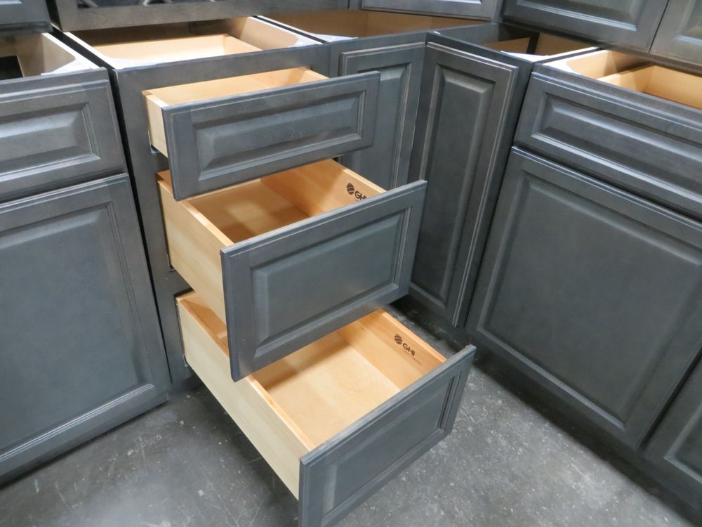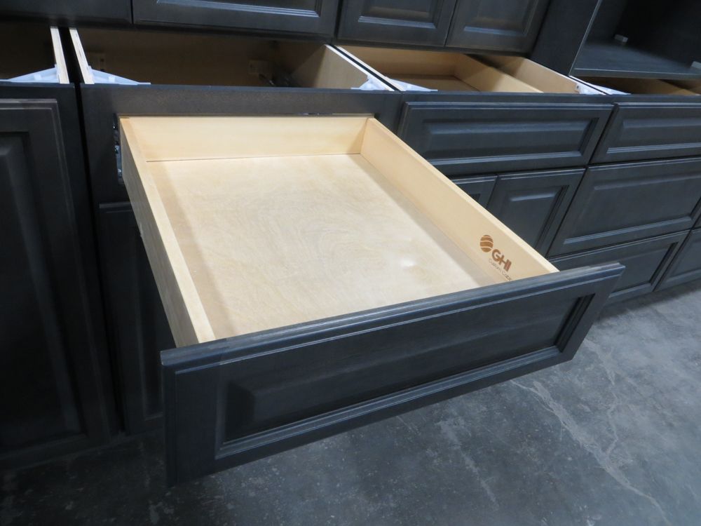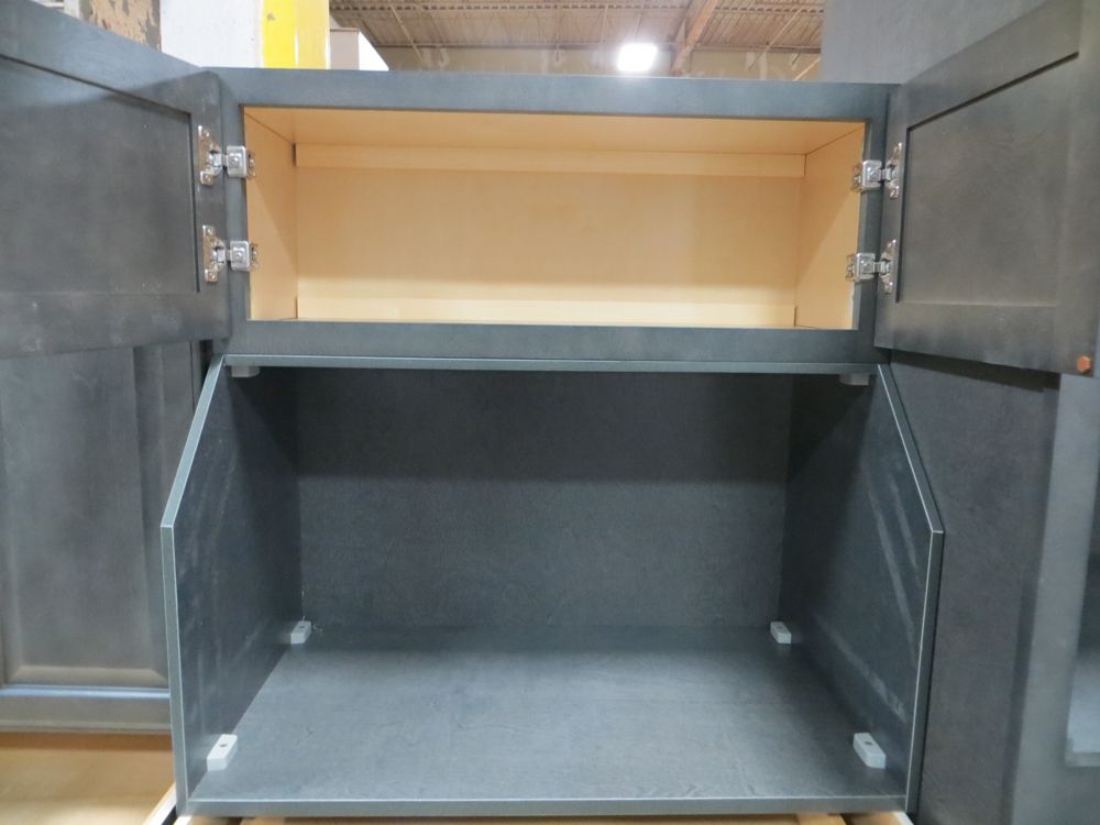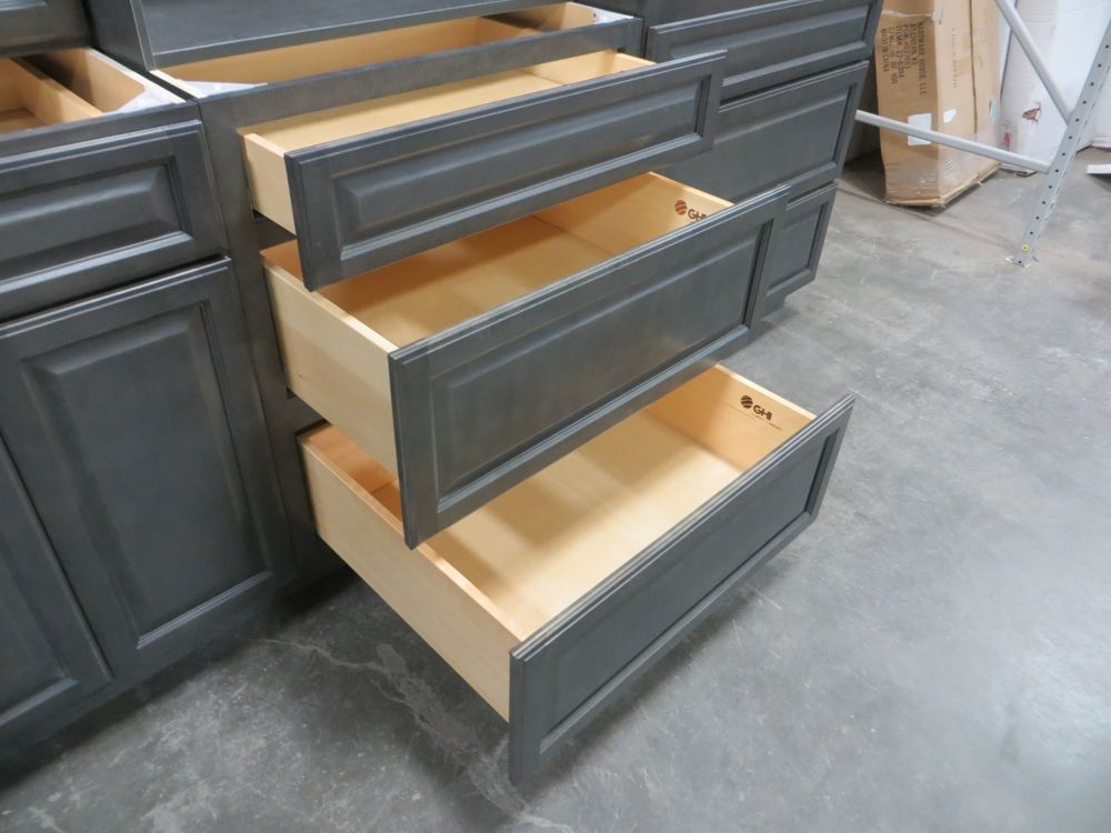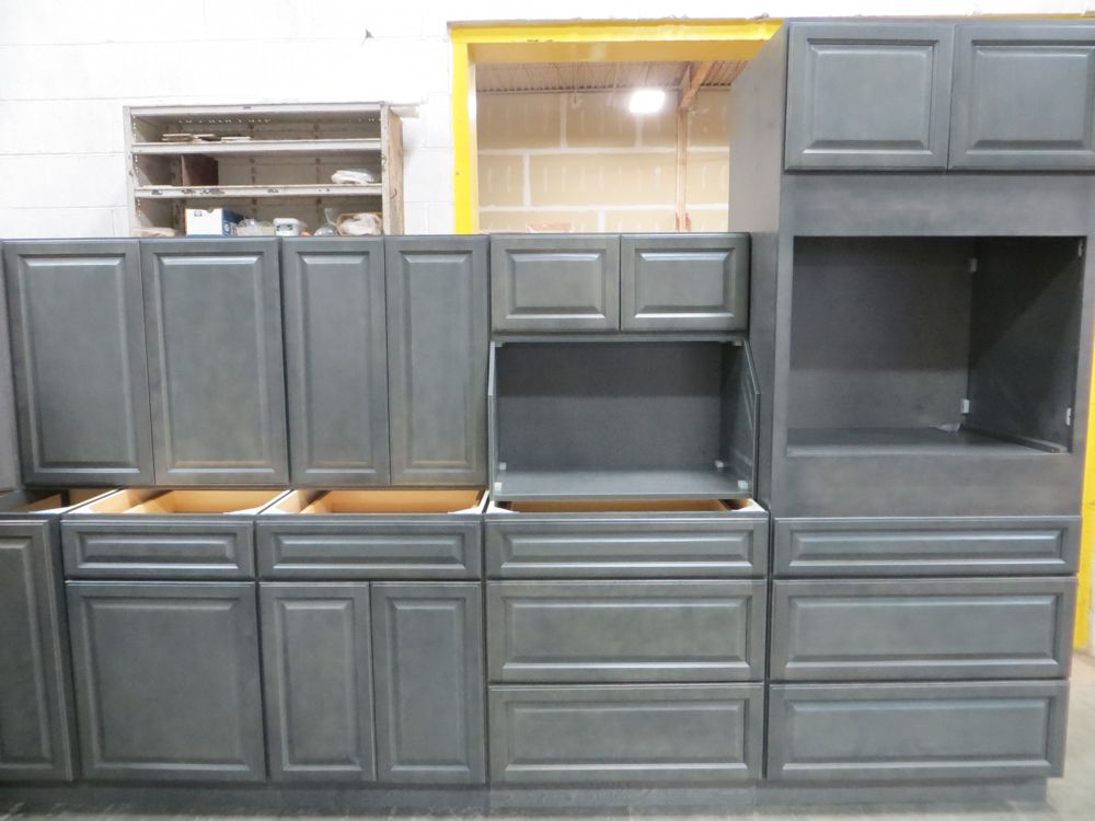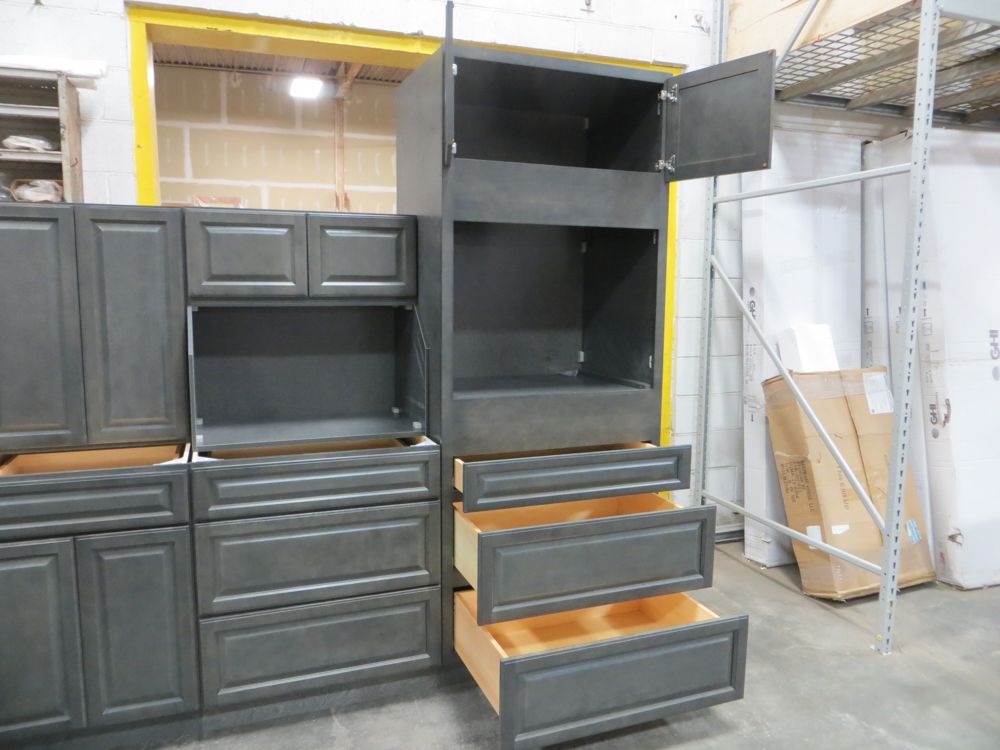 Newcastle Gray Kitchen Cabinet Set 12'x15'. Grand Layout, 30" Walls, By GHI. ADDITIONAL CABINETS ARE UNAVAILABLE BECAUSE THIS PRODUCT LINE IS DISCONTINUED. 3/4” Solid Maple Face Frame -Solid Maple Raised Panel Doors and Drawer Fronts -1/2” Plywood Box Construction with Wood Veneer Interiors and Exteriors -3/4” plywood Shelves -Full overlay Doors and Drawer Fronts -Solid Wood Dovetail Drawer Box -Soft Close Full Extension Drawer Gliders -Hand Rubbed Glaze -6-Way Adjustable Concealed Hinges -Soft Close. Enclosed in each cabinet set will be a Build Sheet which lists the individual cabinets in each set. As the cabinets are palletized each cabinet will be checked off and signed by our staff member to ensure that the set is complete at the time of pick-up. Please keep this Build Sheet on hand because it will be required if there is an issue with your cabinet set. Cabinet issues will not be addressed without this build sheet.,This is a liquidated product. The Auction Company makes no express or implied representations or warranties of any kind regarding the Product. Any pre-existing retail, wholesale or manufacturer warranties will not transfer with the sale of this Product unless expressly stated otherwise on this page. The Buyer accepts the Product in as-is condition, with all faults. Weight: X. Sold by: Set. Sold as: Quantity X Price. Inventory #: NCG-C 12x15 W30 GND