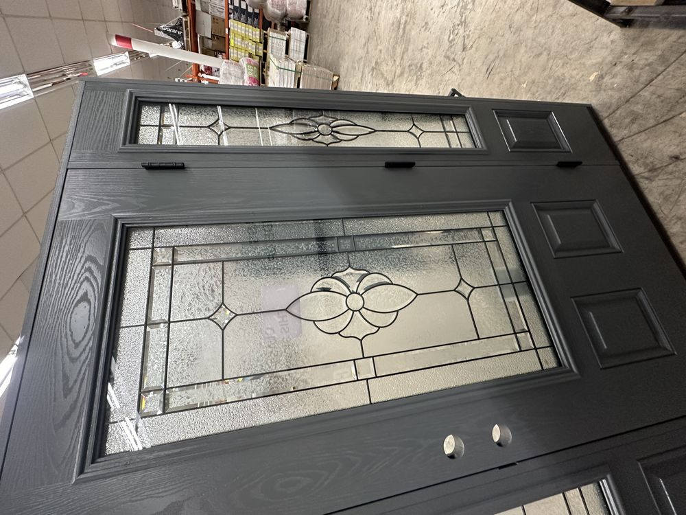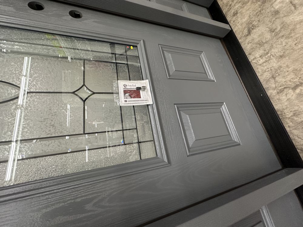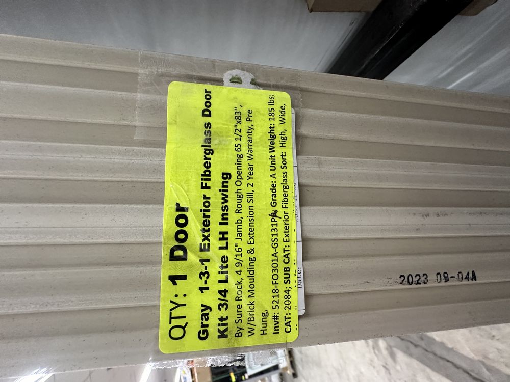 Gray 1-3-1 Exterior Fiberglass Door Kit 3/4 Lite LH Inswing. By Sure Rock, 4 9/16" Jamb, Rough Opening 65 1/2"x83", W/ Brick Moulding & Extension Sills, 2 Year Warranty, Pre Hung, Grade: A,This is a liquidated product. The Auction Company makes no express or implied representations or warranties of any kind regarding the Product. Any pre-existing retail, wholesale or manufacturer warranties will not transfer with the sale of this Product unless expressly stated otherwise on this page. The Buyer accepts the Product in as-is condition, with all faults. Weight: 185 lbs. Sold by: Door. Sold as: Quantity X Price. Inventory #: 5218-FO301A-GS131PL