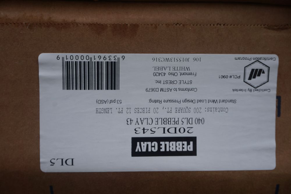 DL-5 Pebble Clay Vinyl Siding 12'. By Style Crest, Manufacturer Warranty Applies, 14 boxes, 20 Pieces per Box, 2 Squares per Box, Grade: 1st Quality,This is a liquidated product. The Auction Company makes no express or implied representations or warranties of any kind regarding the Product. Any pre-existing retail, wholesale or manufacturer warranties will not transfer with the sale of this Product unless expressly stated otherwise on this page. The Buyer accepts the Product in as-is condition, with all faults. Weight: 1163. Sold by: Square. Sold as: Quantity X Price. Inventory #: 44012-DL-5 PC