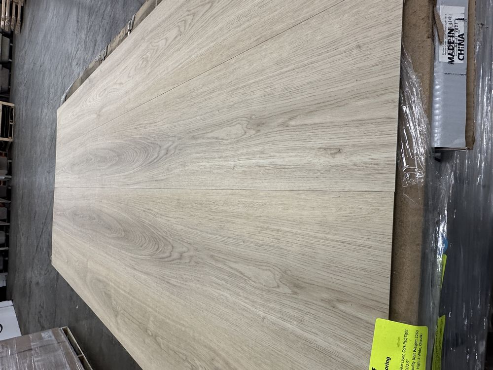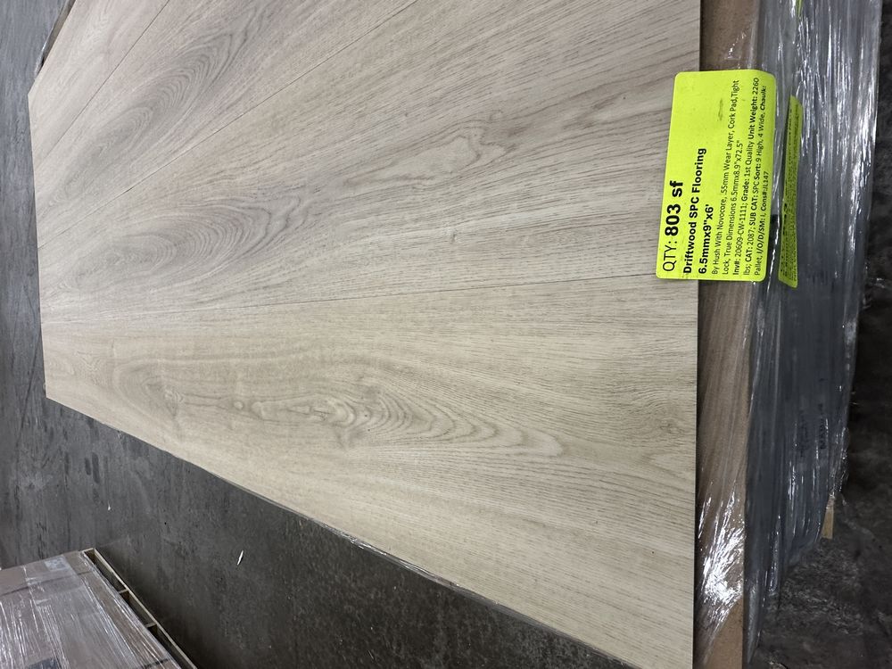 Driftwood SPC Flooring 6.5mmx9"x6'. By Hush With Novocore, .55mm Wear Layer, Cork Pad, Tight Lock, 36 Boxes, 5 pieces per box, 22.3 SqFt Per box True Dimensions: 6.5mmx8.9"x72.5" Grade: 1st Quality,This is a liquidated product. The Auction Company makes no express or implied representations or warranties of any kind regarding the Product. Any pre-existing retail, wholesale or manufacturer warranties will not transfer with the sale of this Product unless expressly stated otherwise on this page. The Buyer accepts the Product in as-is condition, with all faults. Weight: 2260. Sold by: Square Foot. Sold as: Quantity X Price. Inventory #: 20609-CW-1111