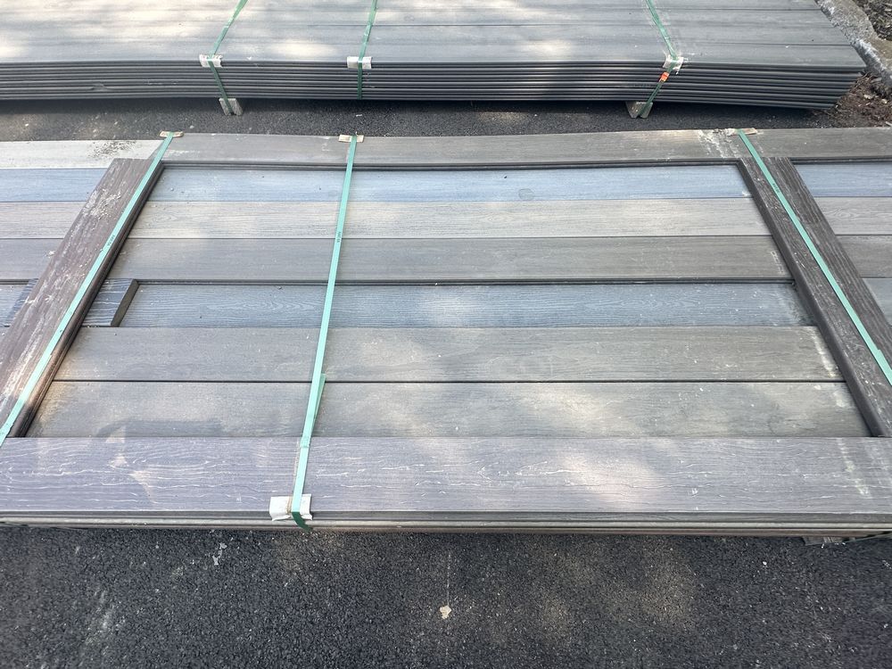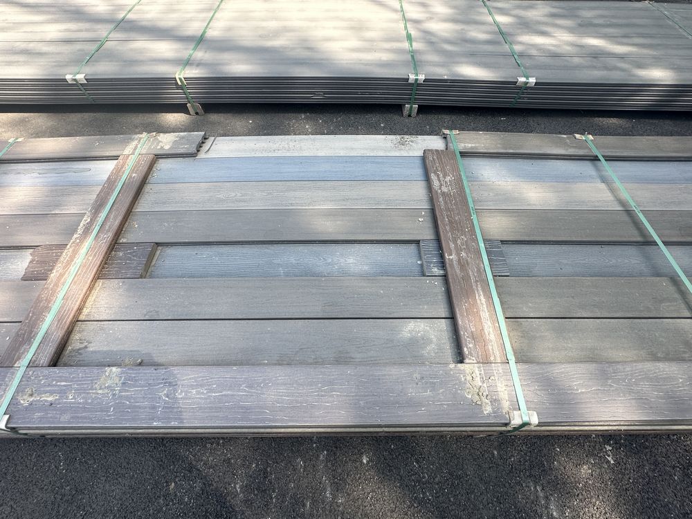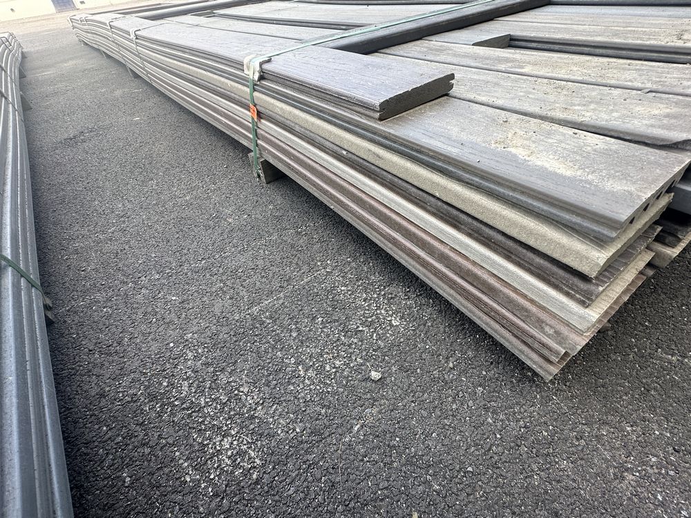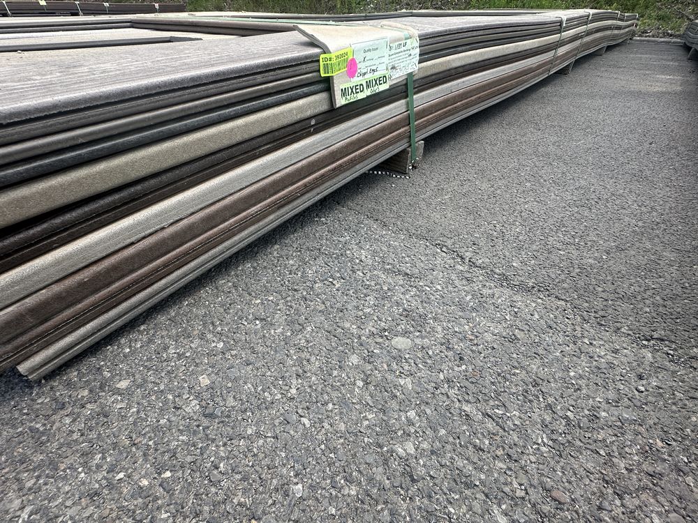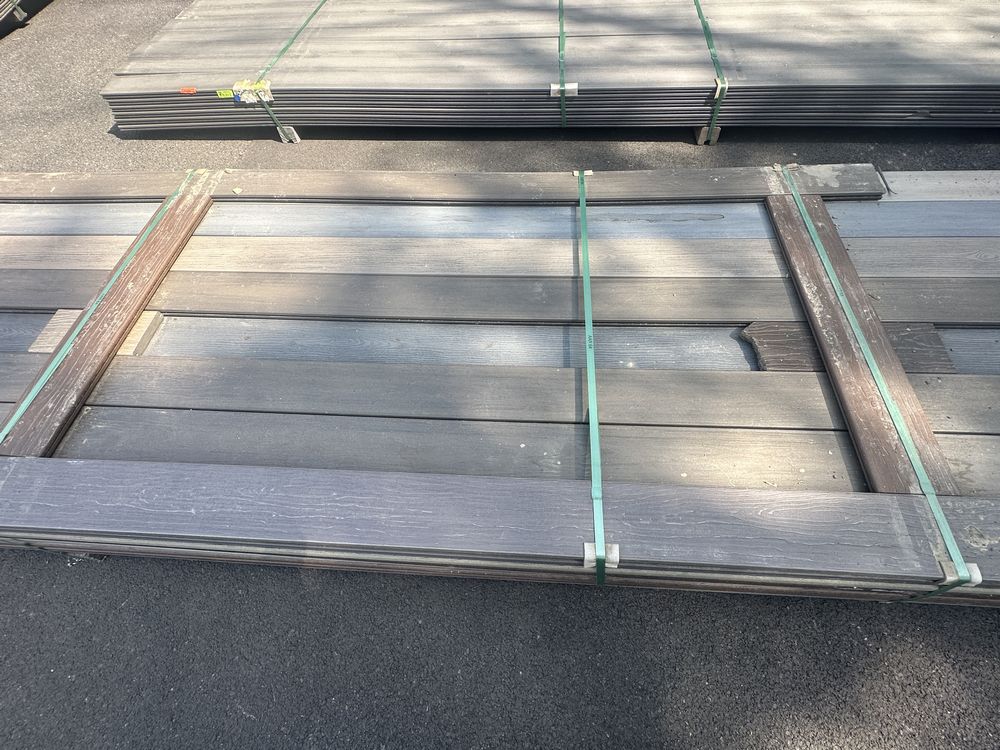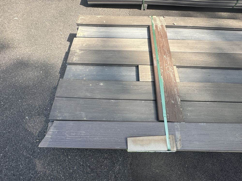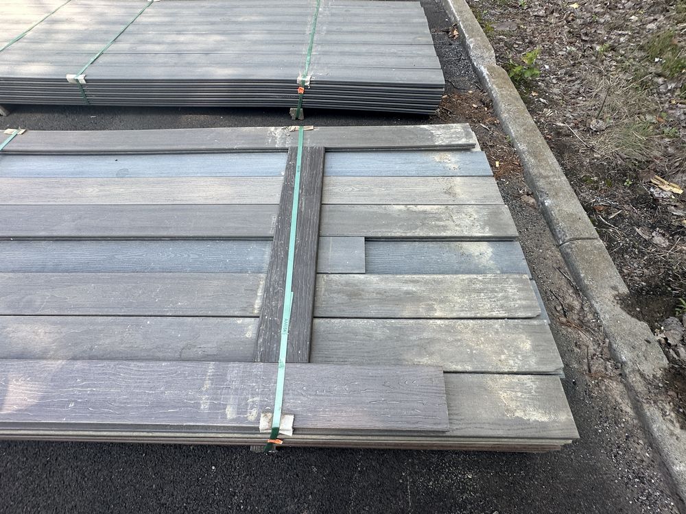 Brown Composite Decking 1"x6"x20' (Mixed Colors and Profiles) *See Description*. PVC Cap, Actual Dimensions 1"x5 1/4"x20', 68 Boards, 27 Flat Bottom Square Edge, 7 Scalloped Bottom Double Groove, 4 Scalloped Bottom Square Edge, 19 Flat Bottom Double Grooved, Grade: B *Fork Damage and Chipped Edge*,This is a liquidated product. The Auction Company makes no express or implied representations or warranties of any kind regarding the Product. Any pre-existing retail, wholesale or manufacturer warranties will not transfer with the sale of this Product unless expressly stated otherwise on this page. The Buyer accepts the Product in as-is condition, with all faults. Weight: 3150. Sold by: Linear Foot. Sold as: Quantity X Price. Inventory #: 1011-0001G