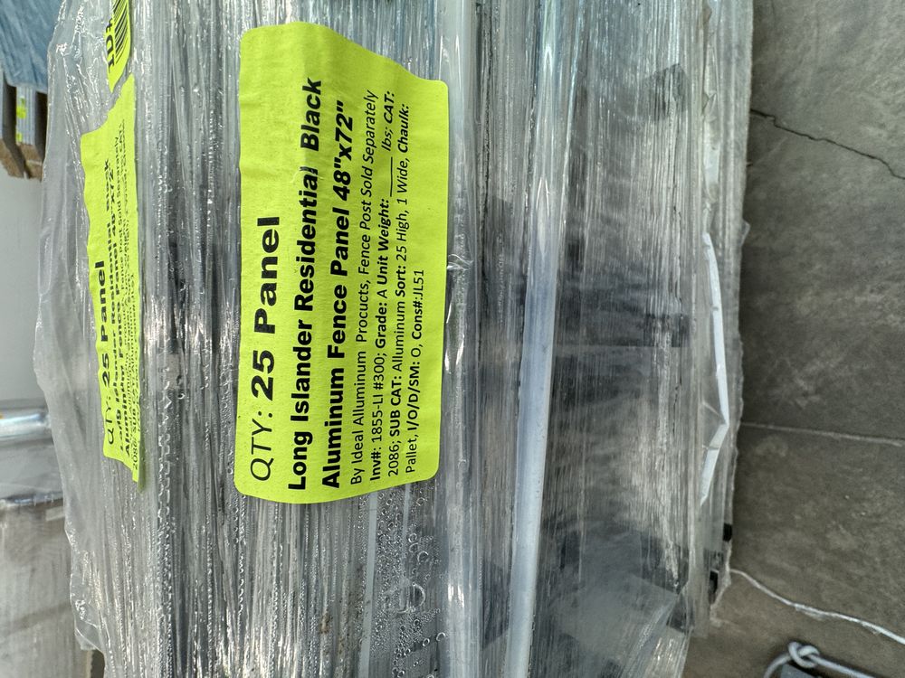 Long Islander Residential Black Aluminum Fence Panel 48"x72". By Ideal Aluminum Products, Fence Post Sold Separately, Grade: A,This is a liquidated product. The Auction Company makes no express or implied representations or warranties of any kind regarding the Product. Any pre-existing retail, wholesale or manufacturer warranties will not transfer with the sale of this Product unless expressly stated otherwise on this page. The Buyer accepts the Product in as-is condition, with all faults. Weight: 350. Sold by: Panel. Sold as: Quantity X Price. Inventory #: 1855-LI #300