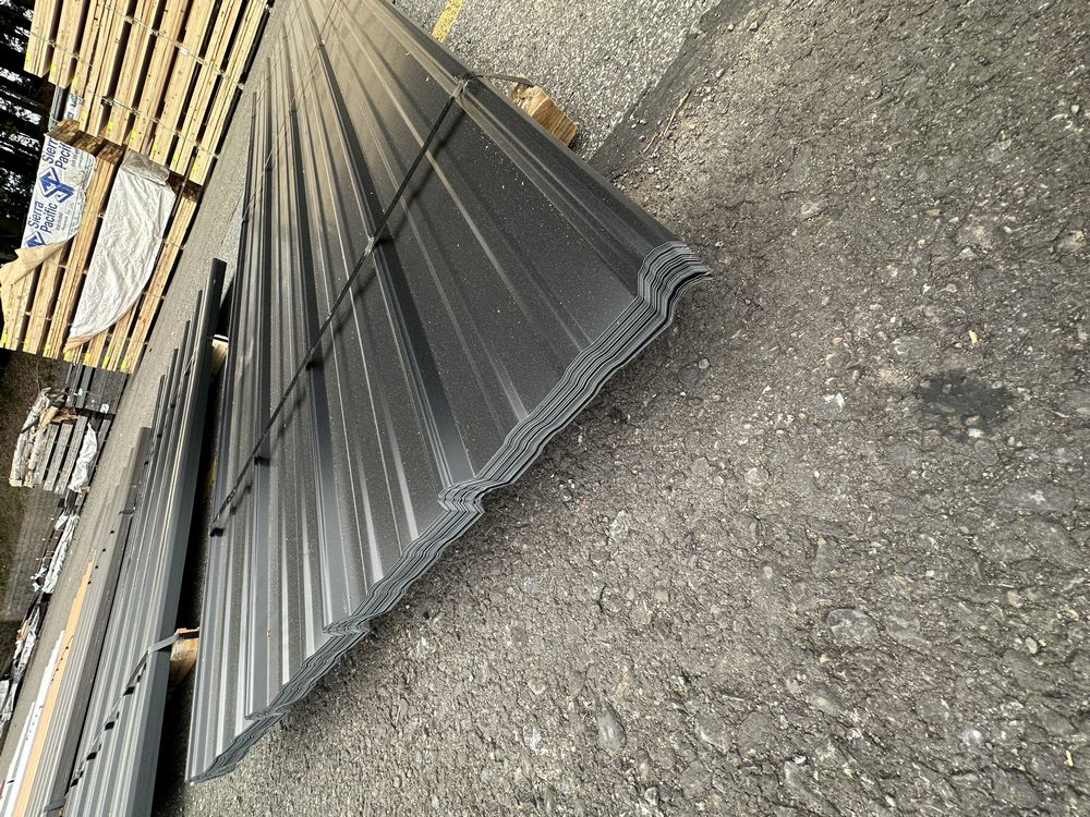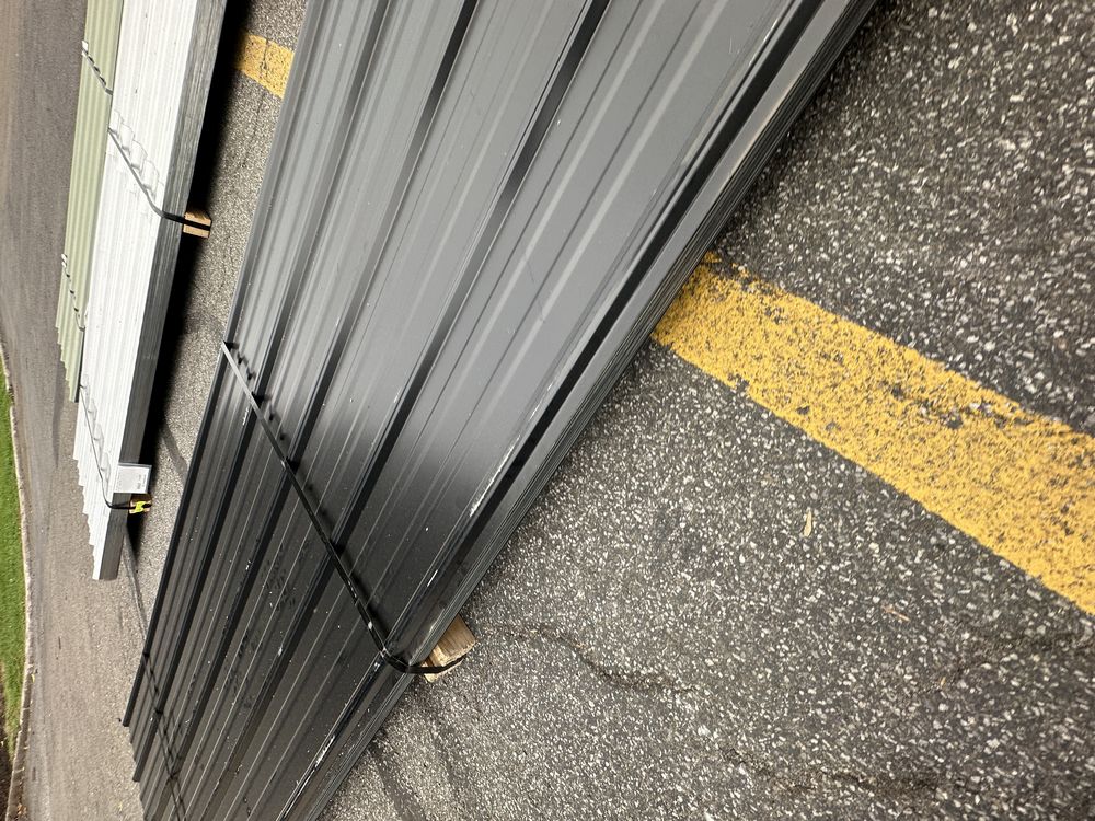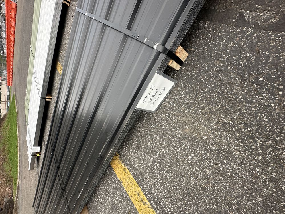 Black Corrugated Metal Panel 3'x12'. 26 Gauge, 49 Pieces, Grade: B Metal can be labeled as "B Grade" for many reasons. Some may include possible paint imperfections such as; off colors, light or heavy coating, dirt in paint, paint splash or blisters. They may contain steel imperfections such as; creases, wrinkles, wavy edges, dents, or general handling damage. When bidding on Grade B metal panels please don't assume that any two lots are the same. If you want to buy more than one (1) lot and need the same color please call us at 607-865-6951 to have us inspect the lots before you purchase.,This is a liquidated product. The Auction Company makes no express or implied representations or warranties of any kind regarding the Product. Any pre-existing retail, wholesale or manufacturer warranties will not transfer with the sale of this Product unless expressly stated otherwise on this page. The Buyer accepts the Product in as-is condition, with all faults. Weight: 1646. Sold by: Linear Foot. Sold as: Quantity X Price. Inventory #: 2850-BLK 3xRL