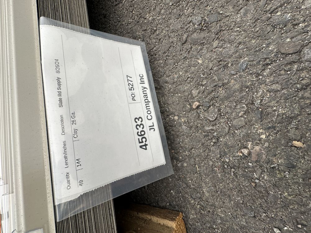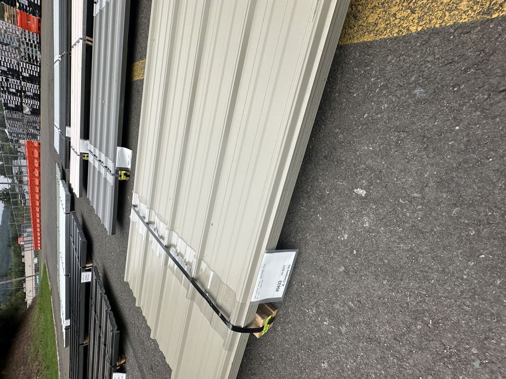 Clay Corrugated Metal Panel 3'x12'. 26 Gauge, 49 Pieces, Grade: B Metal can be labeled as "B Grade" for many reasons. Some may include possible paint imperfections such as; off colors, light or heavy coating, dirt in paint, paint splash or blisters. They may contain steel imperfections such as; creases, wrinkles, wavy edges, dents, or general handling damage. When bidding on Grade B metal panels please don't assume that any two lots are the same. If you want to buy more than one (1) lot and need the same color please call us at 607-865-6951 to have us inspect the lots before you purchase.,This is a liquidated product. The Auction Company makes no express or implied representations or warranties of any kind regarding the Product. Any pre-existing retail, wholesale or manufacturer warranties will not transfer with the sale of this Product unless expressly stated otherwise on this page. The Buyer accepts the Product in as-is condition, with all faults. Weight: 1646. Sold by: Linear Foot. Sold as: Quantity X Price. Inventory #: 2850-BG 3xRL