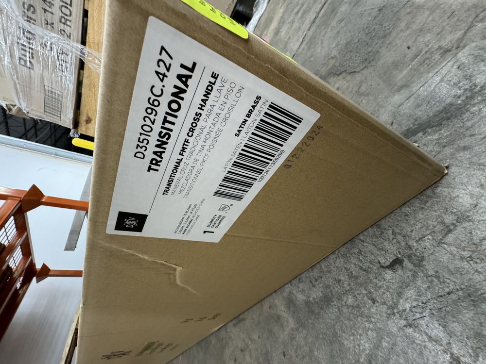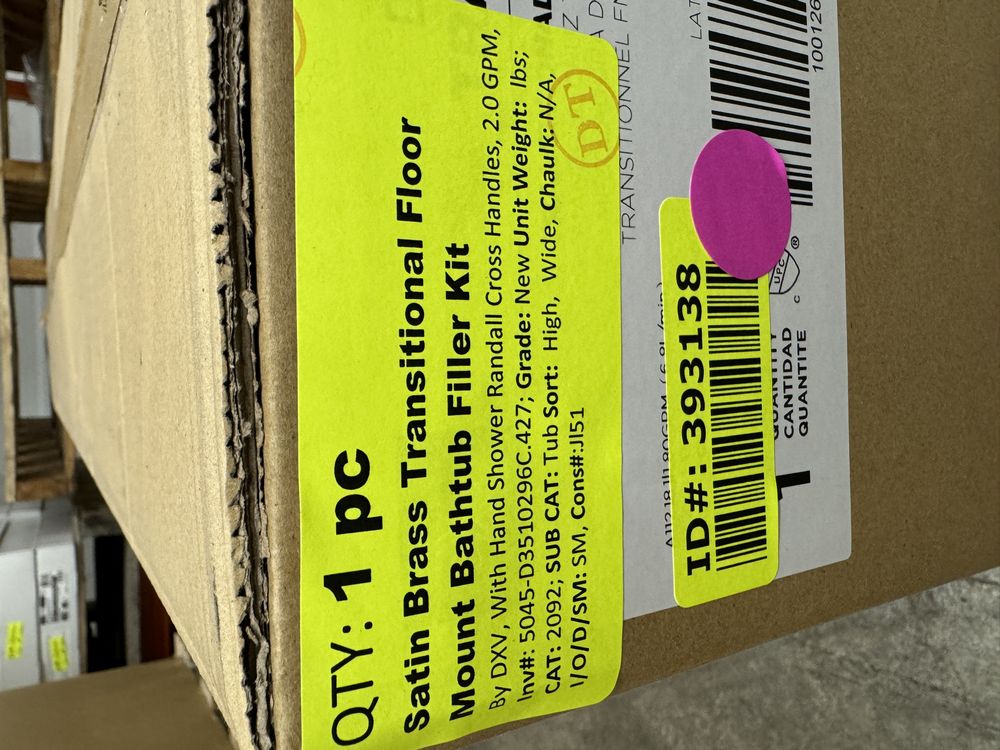 Satin Brass Transitional Floor Mount Bathtub Kit MSRP: $3198. By DXV, With Hand Shower Randall Cross Handles, 2.0 GPM, Grade: New,This is a liquidated product. Any pre-existing retail, wholesale or manufacturer warranties will not transfer with the sale of this Product unless expressly stated otherwise. Weight: X. Sold by: Piece. Sold as: Quantity X Price. Inventory #: 5045-D3510296C.427