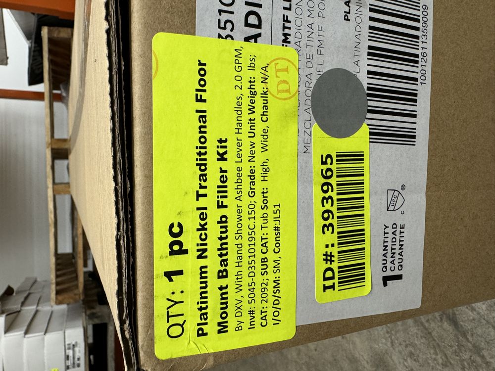 Platinum Nickel Traditional Floor Mount Bathtub Filler Kit MSRP: $2943. By DXV, With Hand Shower Ashbee Lever Handles, 2.0 GPM, Grade: New,This is a liquidated product. Any pre-existing retail, wholesale or manufacturer warranties will not transfer with the sale of this Product unless expressly stated otherwise. Weight: X. Sold by: Piece. Sold as: Quantity X Price. Inventory #: 5045-D3510195C.150