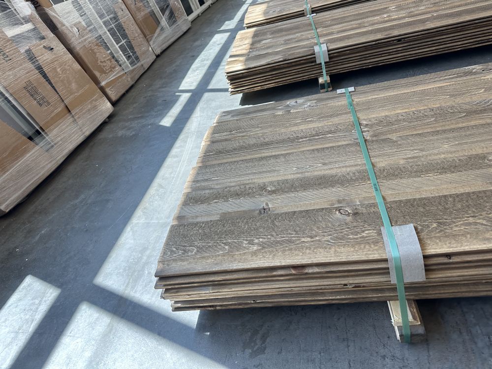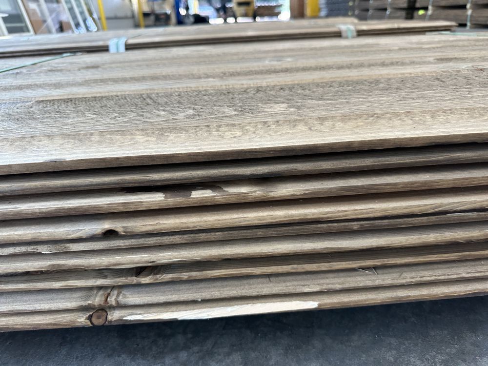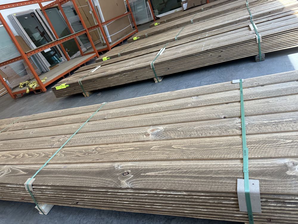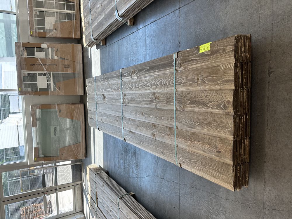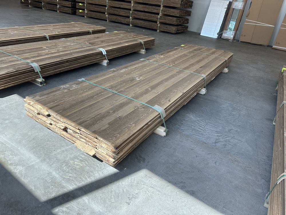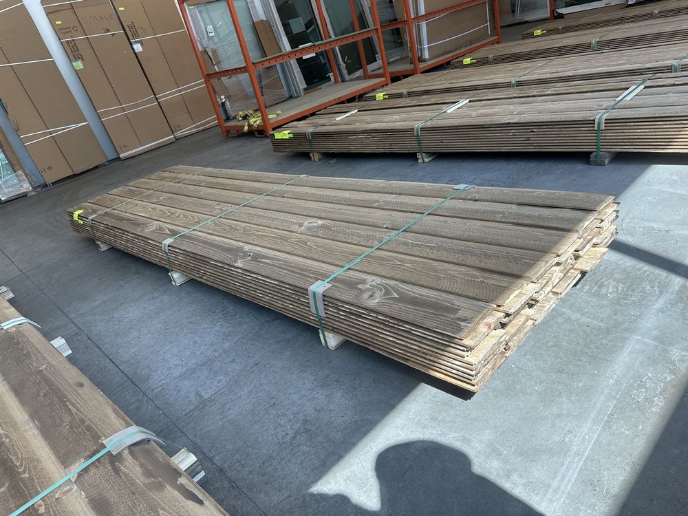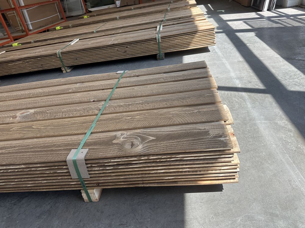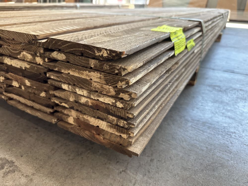Kodiak Brown Stained Dutch Lap Ponderosa Pine Paneling 1"x8"x12'. 60 Pieces, 480 Board Feet, Dutch Lap, Resawn, Grade: #2 & Better,This is a liquidated product. The Auction Company makes no express or implied representations or warranties of any kind regarding the Product. Any pre-existing retail, wholesale or manufacturer warranties will not transfer with the sale of this Product unless expressly stated otherwise on this page. The Buyer accepts the Product in as-is condition, with all faults. Weight: X. Sold by: Linear Foot. Sold as: Quantity X Price. Inventory #: 2633-DL-GRR 01x08xRL