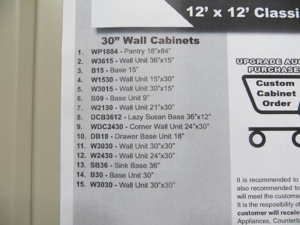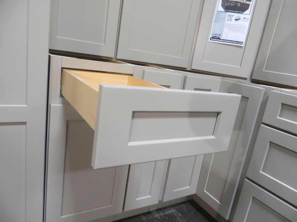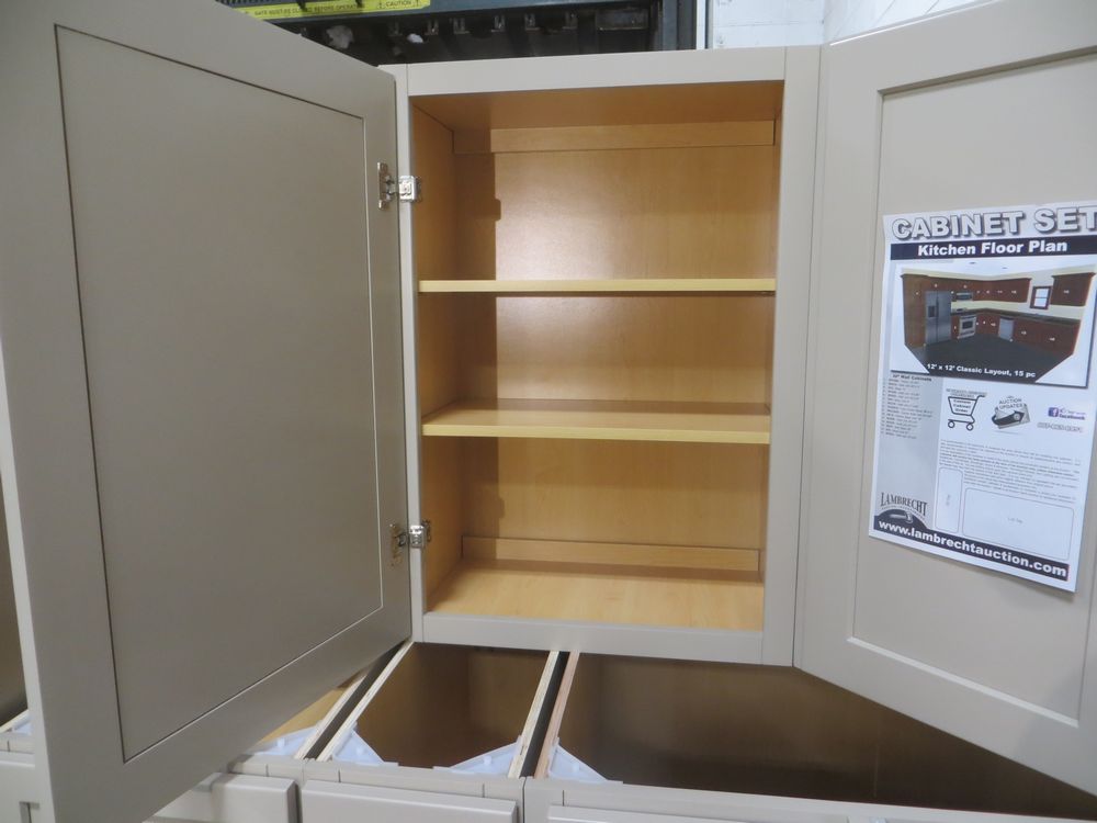 Mojave Shaker Kitchen Cabinet Set 12'x12'. Classic Layout, 30" Walls, By GHI, ADDITIONAL CABINETS ARE UNAVAILABLE BECAUSE THIS PRODUCT LINE IS DISCONTINUED. -All Wood Construction -3/4” Solid Maple Face Frame -Solid Maple Raised Panel Door and Drawer Fronts with Veneer Center Panels -1/2” Plywood Box Construction with Wood Veneer Interiors and Exteriors -5/8” Plywood Shelf -Full Overlay Doors and Drawer Fonts -Solid wood Dovetail Drawer with Under Mount Glides -6-Way Adjustable Concealed Hinges -Available Upgrades Include: *Soft Close Full Extension Drawer Glides *Soft Close Doors. Enclosed in each cabinet set will be a Build Sheet which lists the individual cabinets in each set. As the cabinets are palletized each cabinet will be checked off and signed by our staff member to ensure that the set is complete at the time of pick-up. Please keep this Build Sheet on hand because it will be required if there is an issue with your cabinet set. Cabinet issues will not be addressed without this build sheet.,This is a liquidated product. The Auction Company makes no express or implied representations or warranties of any kind regarding the Product. Any pre-existing retail, wholesale or manufacturer warranties will not transfer with the sale of this Product unless expressly stated otherwise on this page. The Buyer accepts the Product in as-is condition, with all faults. Weight: X. Sold by: Set. Sold as: Quantity X Price. Inventory #: MJS-C 12x12 W30 CLS