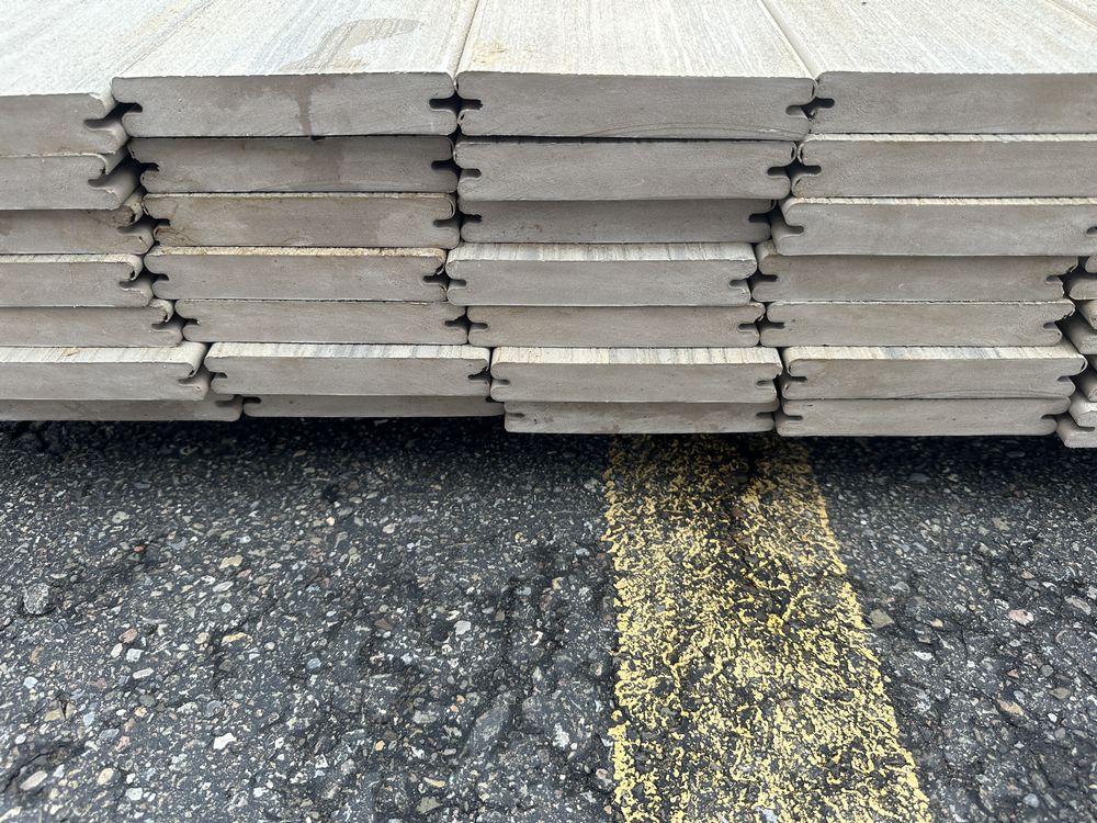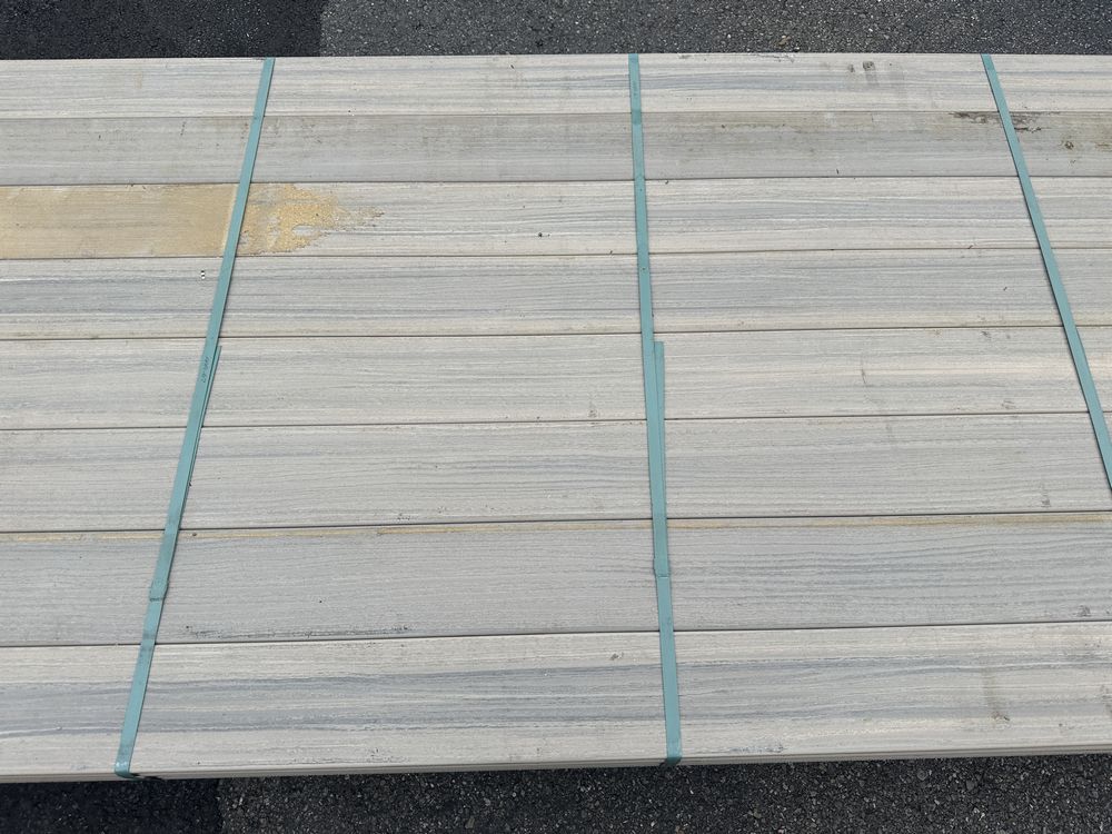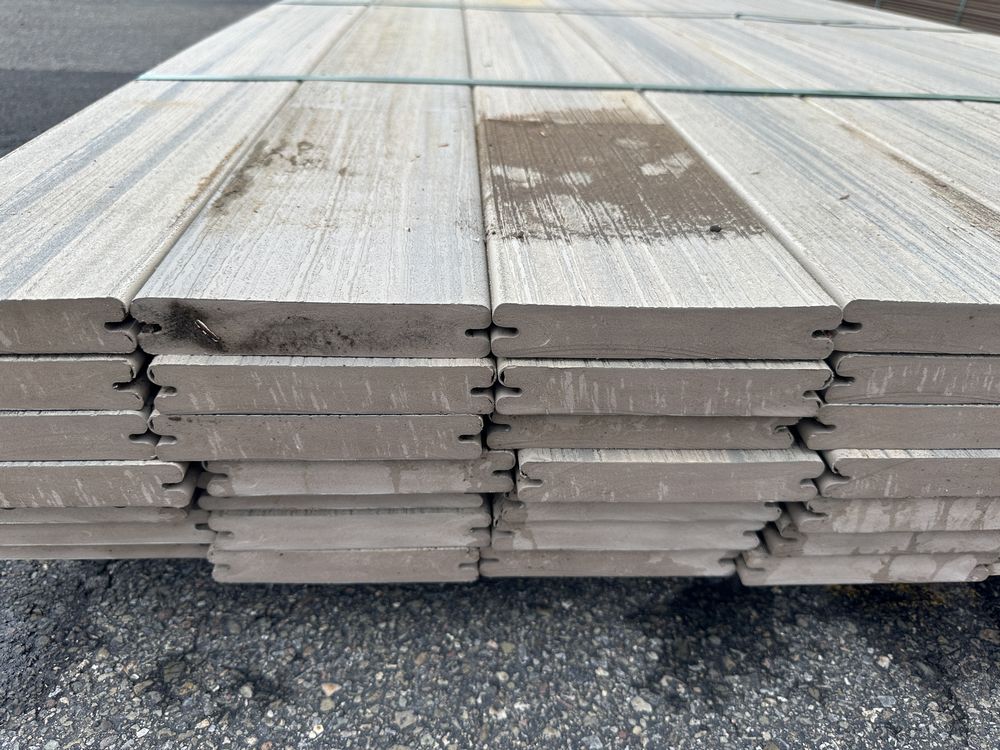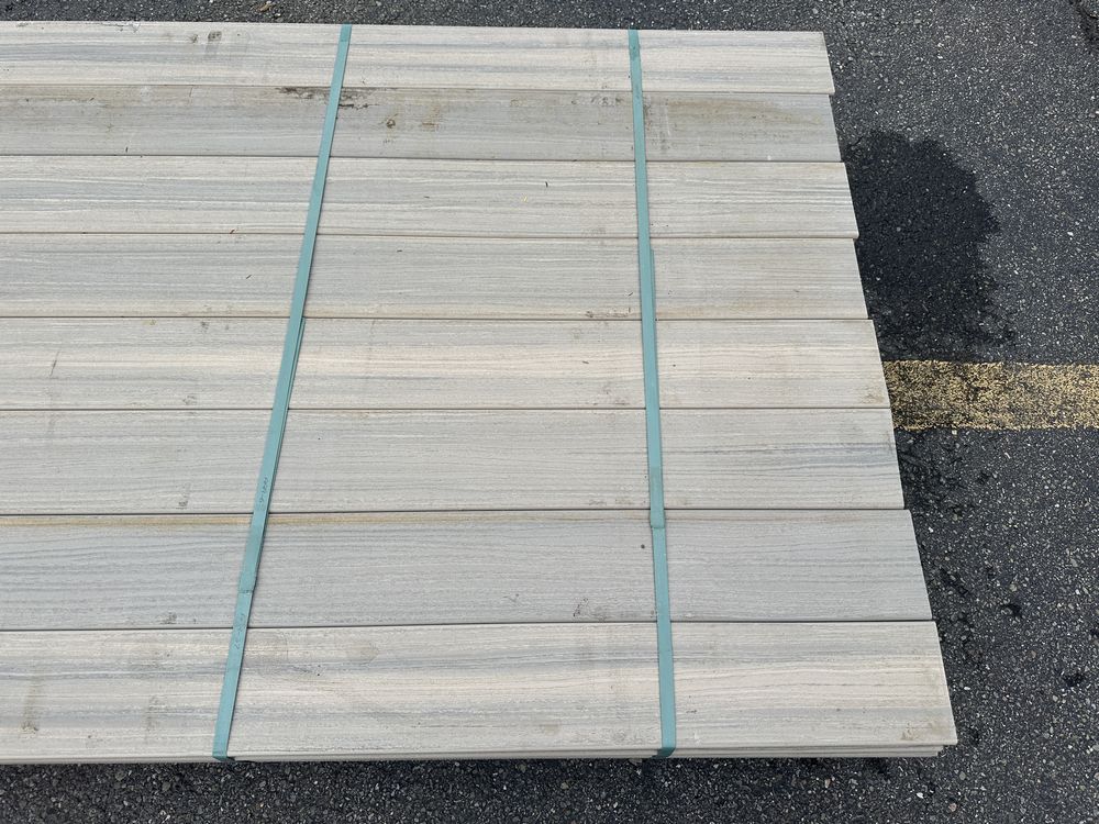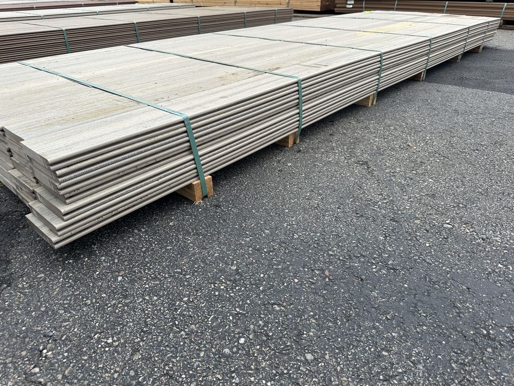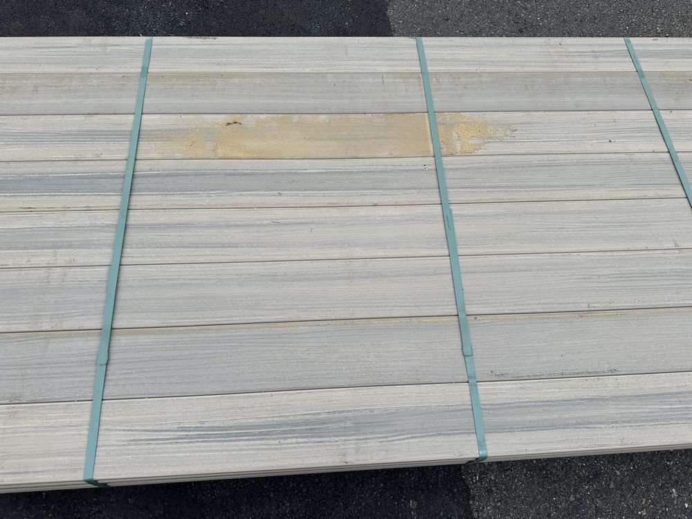 Sandstone PVC Grooved Decking 5/4"x6"x12'. By Fiberon, 56 Total Boards Grooved Edge, Flat Bottom, Actual Dimensions 1"x5 3/8"x12' Grade: B,This is a liquidated product. The Auction Company makes no express or implied representations or warranties of any kind regarding the Product. Any pre-existing retail, wholesale or manufacturer warranties will not transfer with the sale of this Product unless expressly stated otherwise on this page. The Buyer accepts the Product in as-is condition, with all faults. Weight: x. Sold by: Linear Foot. Sold as: Quantity X Price. Inventory #: 1019-PVC-SA 5/4x06x12