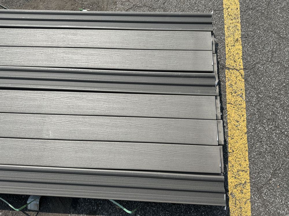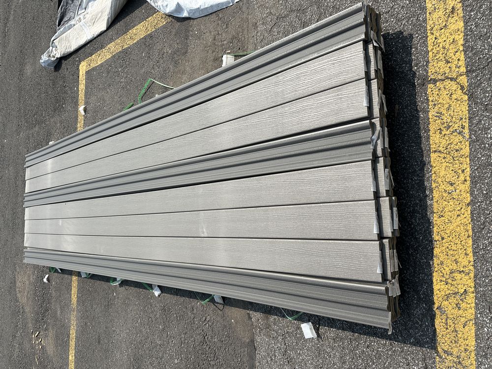 Gray Composite Decking 5/4"x6"x12'. PVC Wrapped, 48 Boards Total, Scalloped Bottom, Flat Edge, Actual Dimensions 1"x5 1/4"x12' Grade: B,This is a liquidated product. The Auction Company makes no express or implied representations or warranties of any kind regarding the Product. Any pre-existing retail, wholesale or manufacturer warranties will not transfer with the sale of this Product unless expressly stated otherwise on this page. The Buyer accepts the Product in as-is condition, with all faults. Weight: x. Sold by: Linear Foot. Sold as: Quantity X Price. Inventory #: 1011-GRY 5/4x06x12