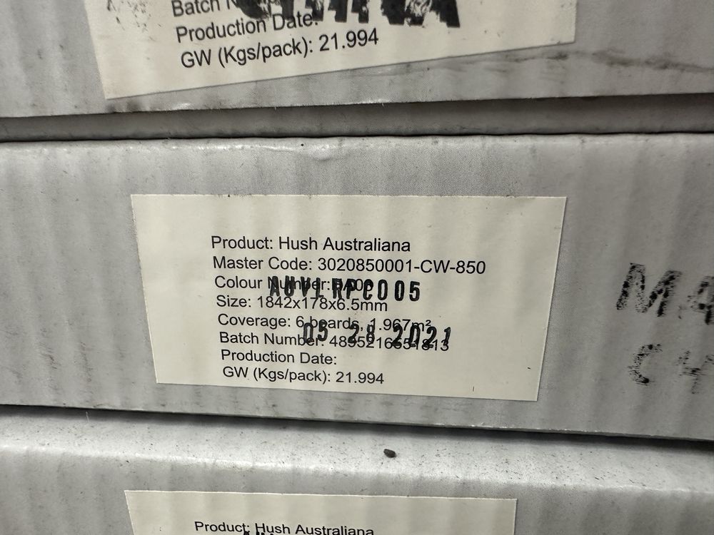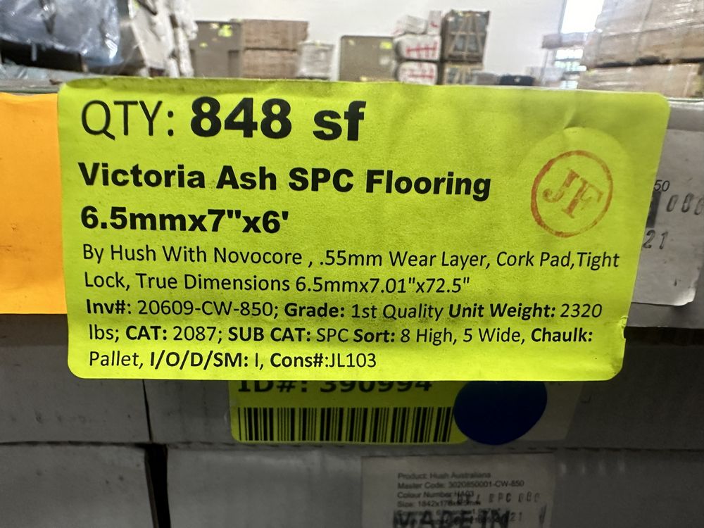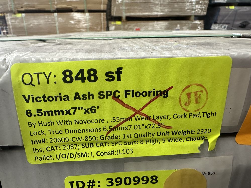 Victoria Ash SPC Flooring 6.5mmx7"x6' *See Description*. By Hush, With Novocore, 55mm Wear Layer, Cork Pad, Tight Lock, True Dimensions 6.5mmx7.01"x72.5", 40 Boxes, 6 Pieces per Box, 21.2 Square Feet per Box, Grade: 1st Quality *Boxes Were Previously Wet In Storage*,This is a liquidated product. The Auction Company makes no express or implied representations or warranties of any kind regarding the Product. Any pre-existing retail, wholesale or manufacturer warranties will not transfer with the sale of this Product unless expressly stated otherwise on this page. The Buyer accepts the Product in as-is condition, with all faults. Weight: 2,320. Sold by: Square Foot. Sold as: Quantity X Price. Inventory #: 20609-CW-850