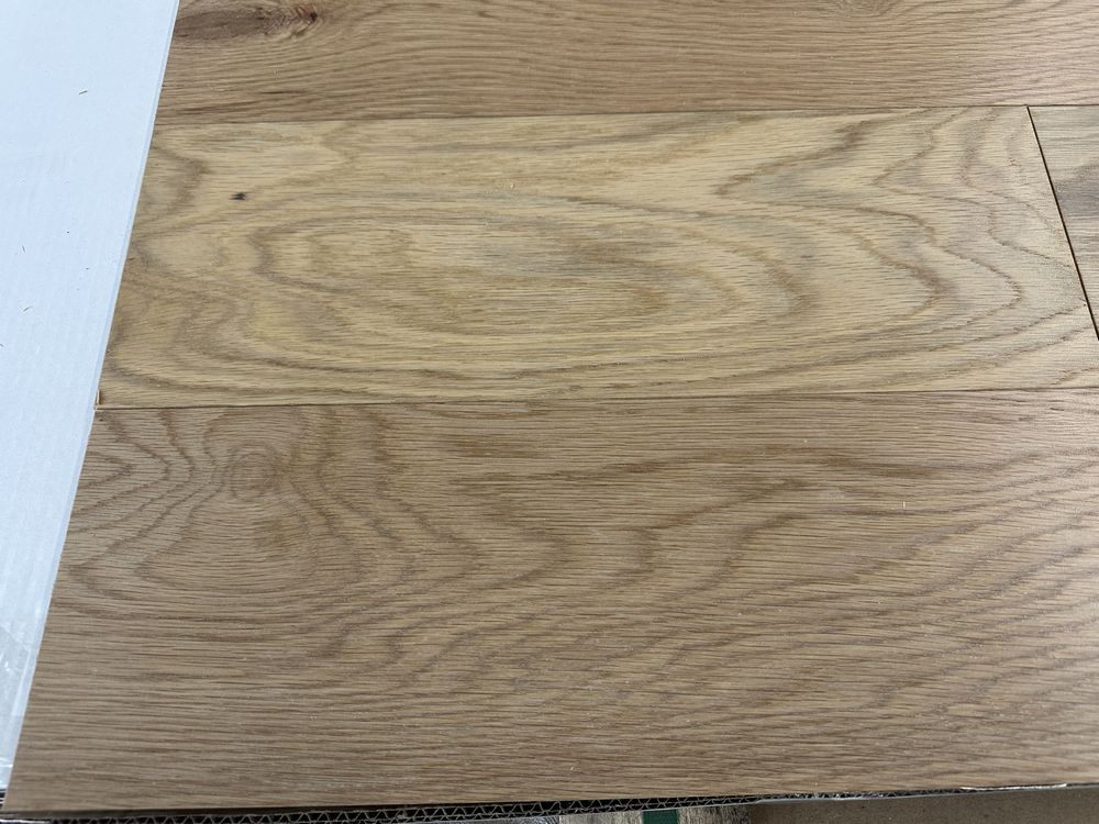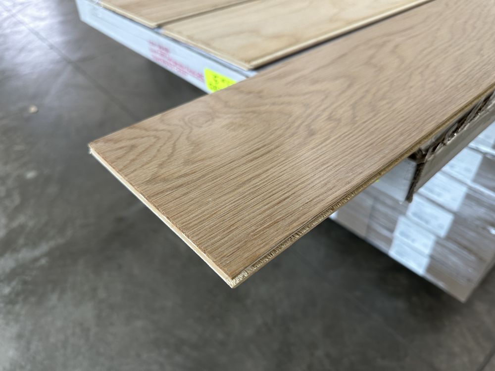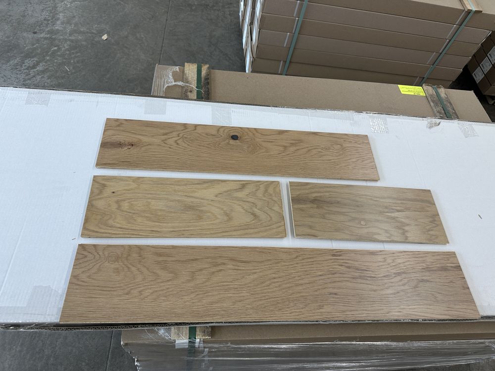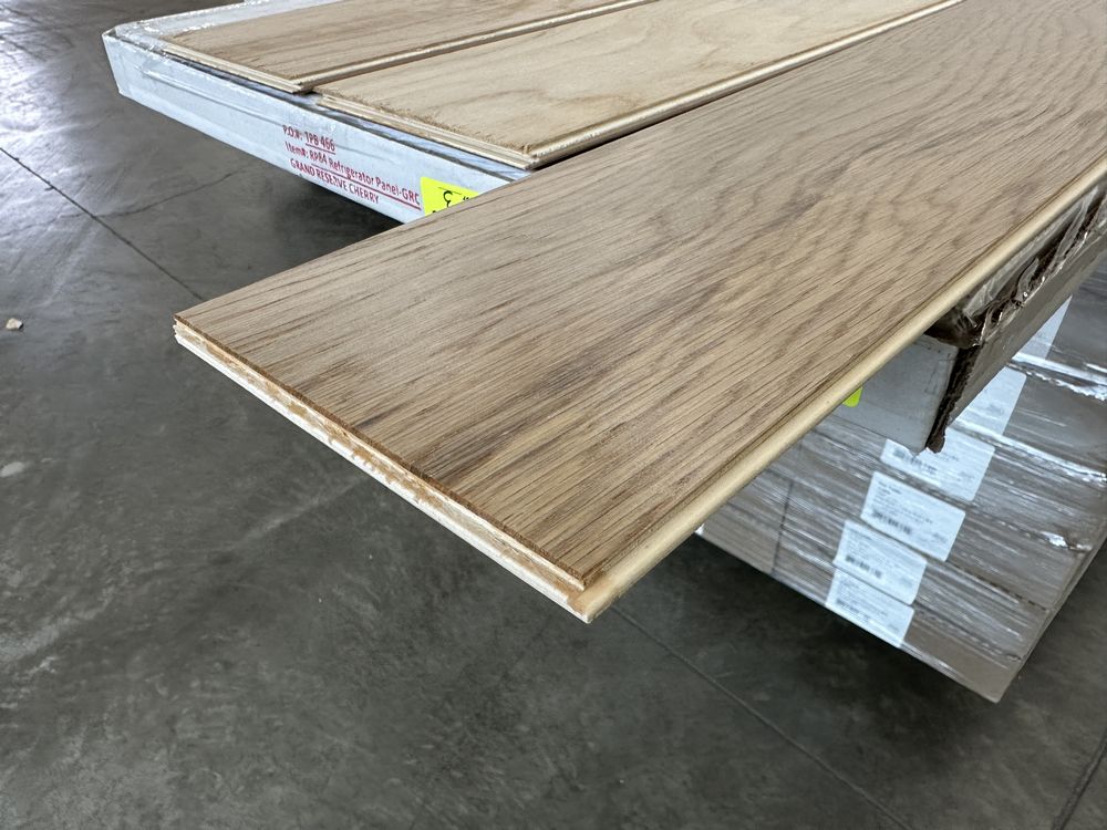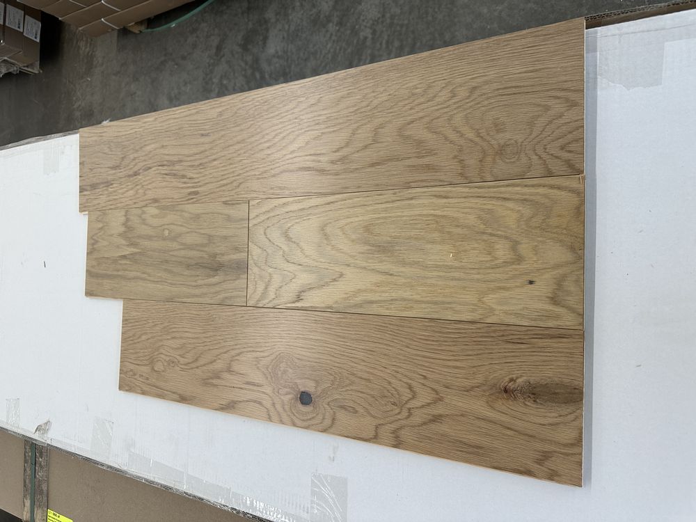White Oak Toasted Almond Engineered Hardwood Flooring 3/8"x6 1/2"xRL. By Mullican, Pre-finished, Wire brushed, 33 Square Feet per Box, 21 Boxes, Grade: Cabin Cabin/Utility/Tavern Grade: This flooring product will have varying wood characteristics and colors to include streaks, deeper knots and burls, small splits, wormholes, and even marks during the milling process such as machine burns. It may also have a large variance in color and grain patterns. The boards are typically 10” to 30” with an average board length of 16”. It is usually packaged in mini bundles of 18-20 sf per bundle. It is ok for 5” wide to be heavier in shorter pieces. Cabin grade is a stable, installable product but please account up to 10%-20% waste.,This is a liquidated product. The Auction Company makes no express or implied representations or warranties of any kind regarding the Product. Any pre-existing retail, wholesale or manufacturer warranties will not transfer with the sale of this Product unless expressly stated otherwise on this page. The Buyer accepts the Product in as-is condition, with all faults. Weight: 830. Sold by: Square Foot. Sold as: Quantity X Price. Inventory #: 2075-23514