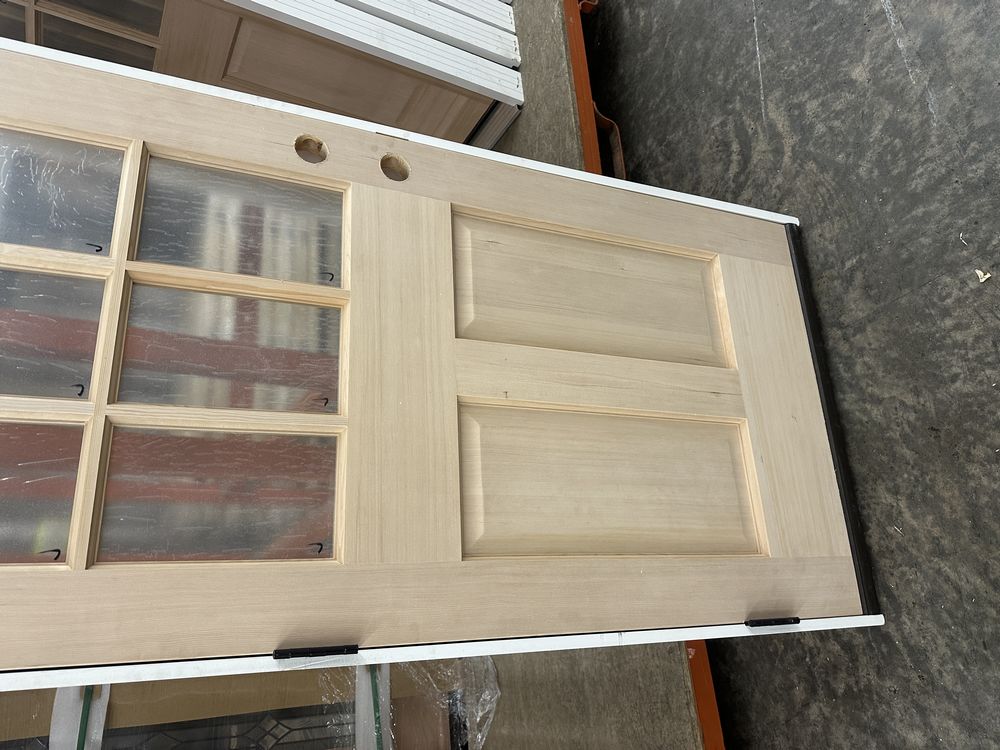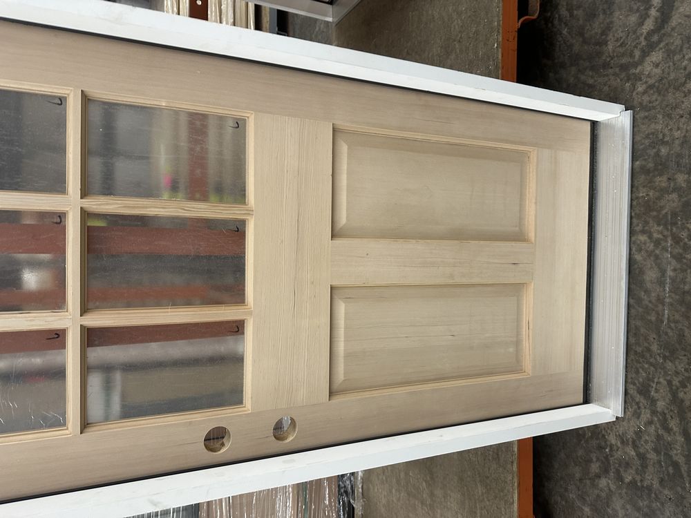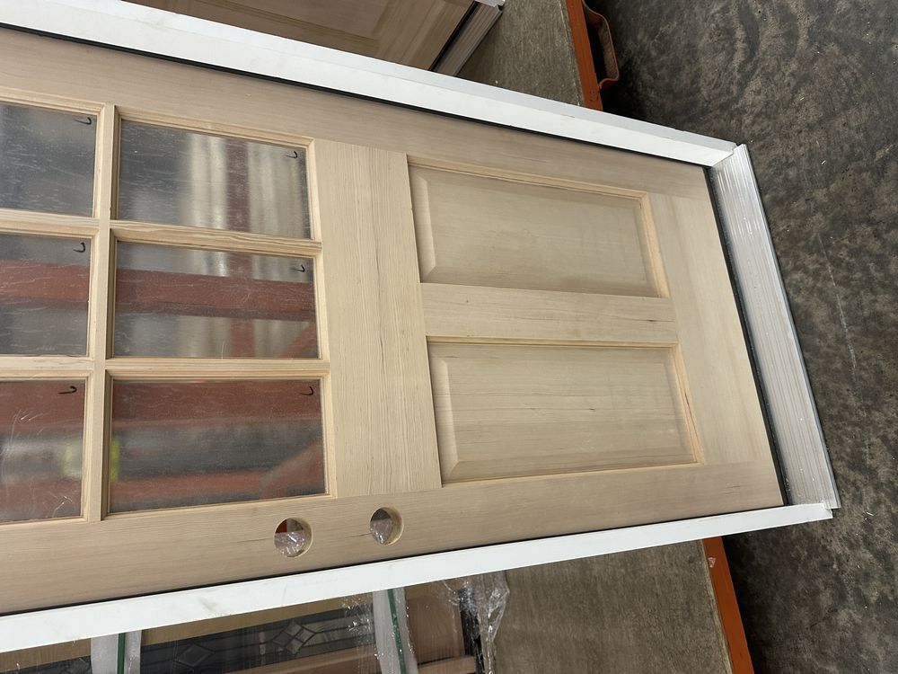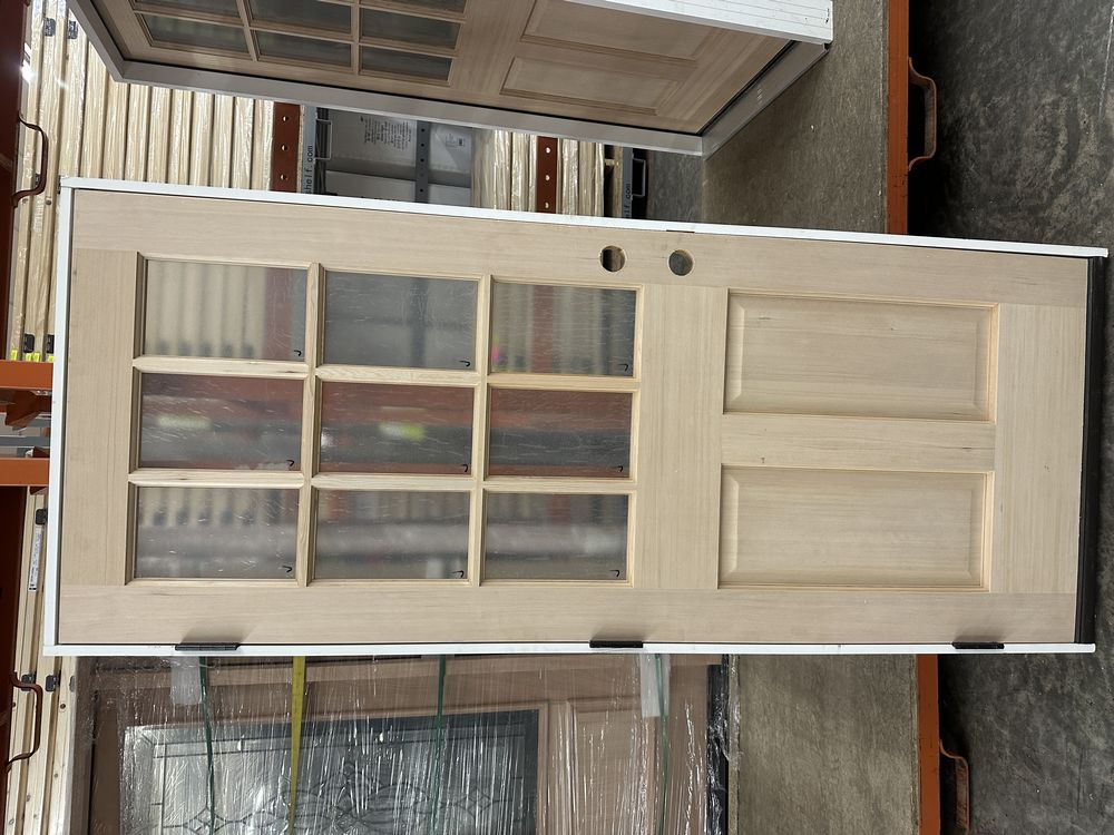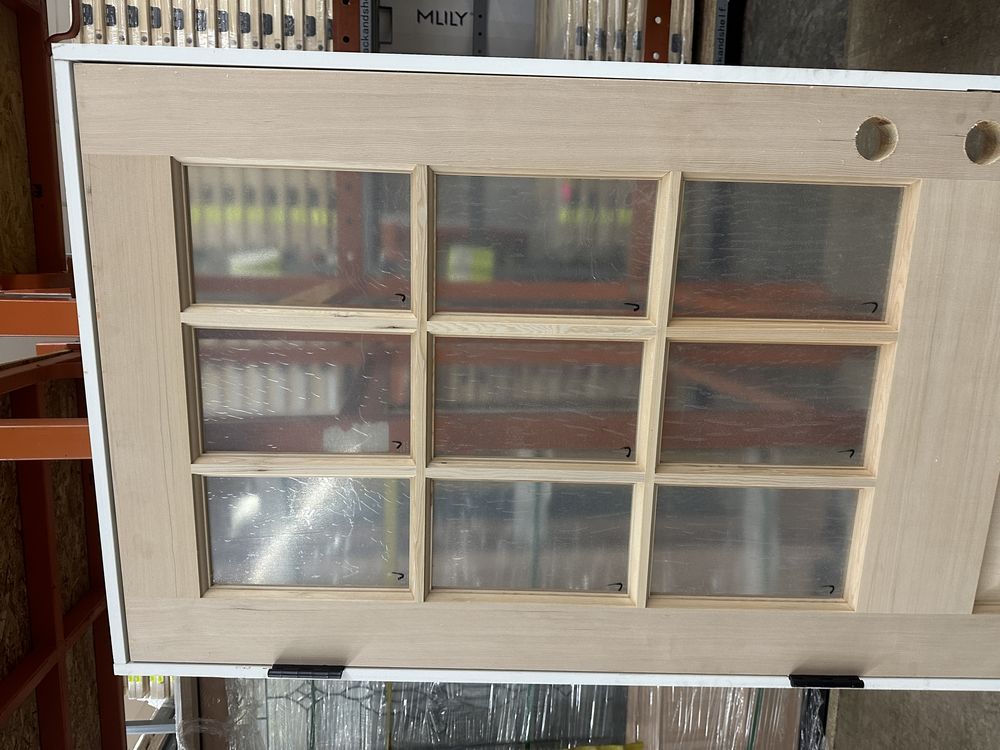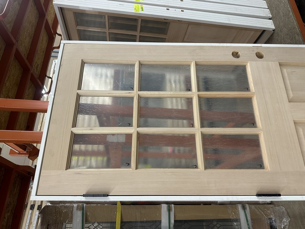 Doug Fir Exterior 9 Lite Door 32"x80" RH MSRP: $1238. Unfinished, Single Pane Glass, Prehung, Grade: 1st Quality,This is a liquidated product. The Auction Company makes no express or implied representations or warranties of any kind regarding the Product. Any pre-existing retail, wholesale or manufacturer warranties will not transfer with the sale of this Product unless expressly stated otherwise on this page. The Buyer accepts the Product in as-is condition, with all faults. Weight: 75. Sold by: Door. Sold as: Quantity X Price. Inventory #: 5219-EXT FIR 9L 32 RH
