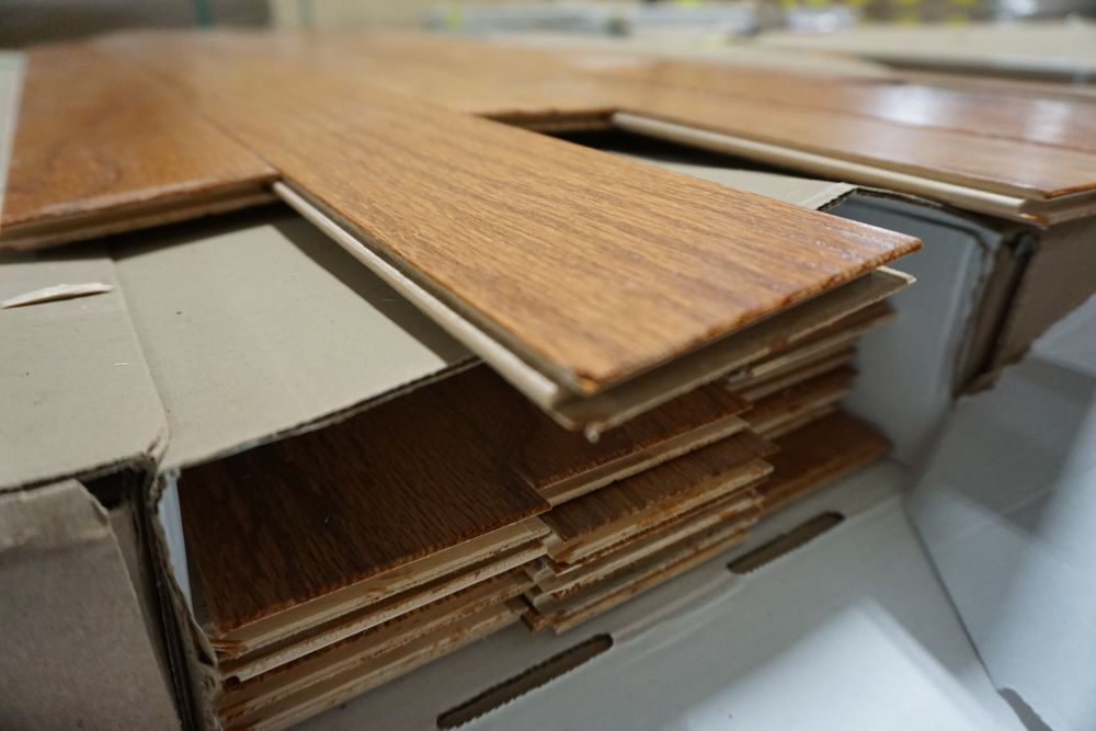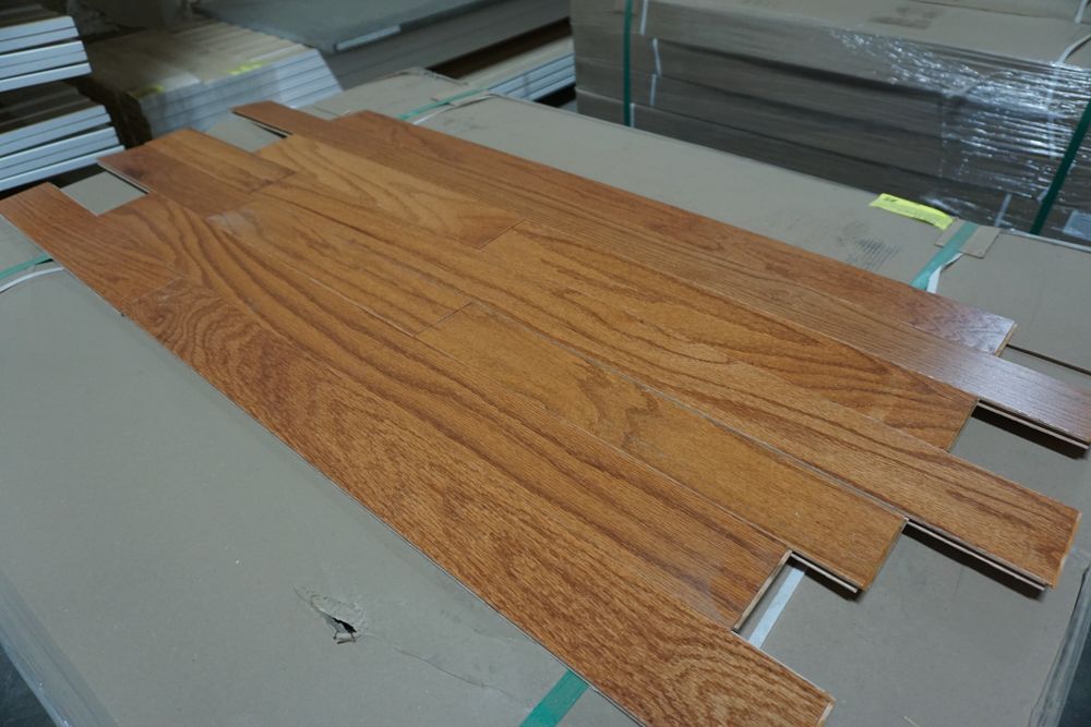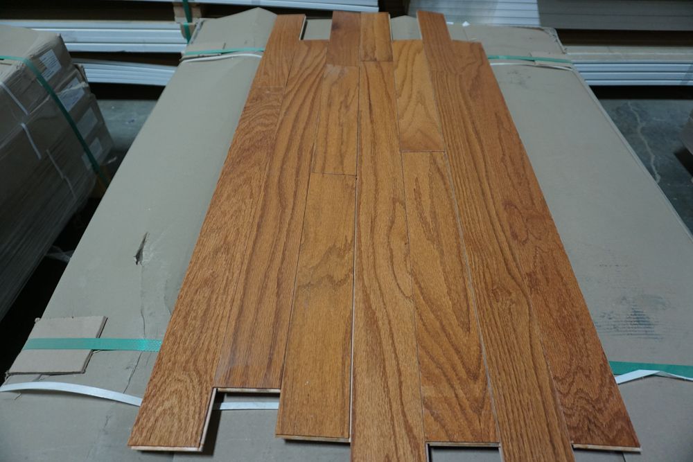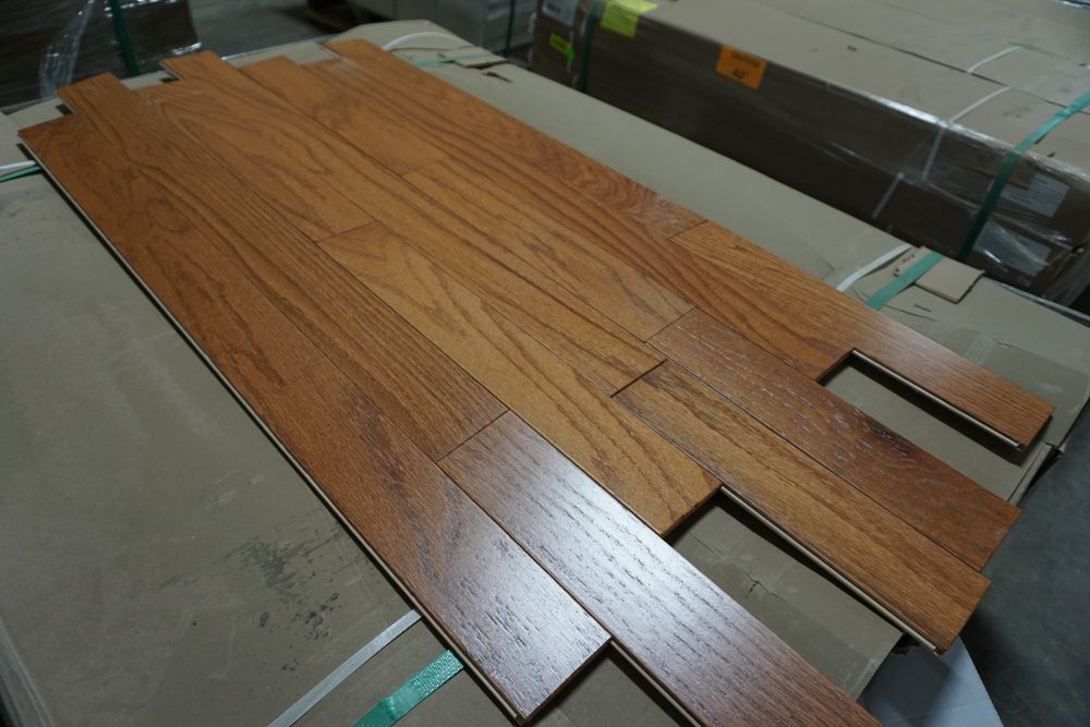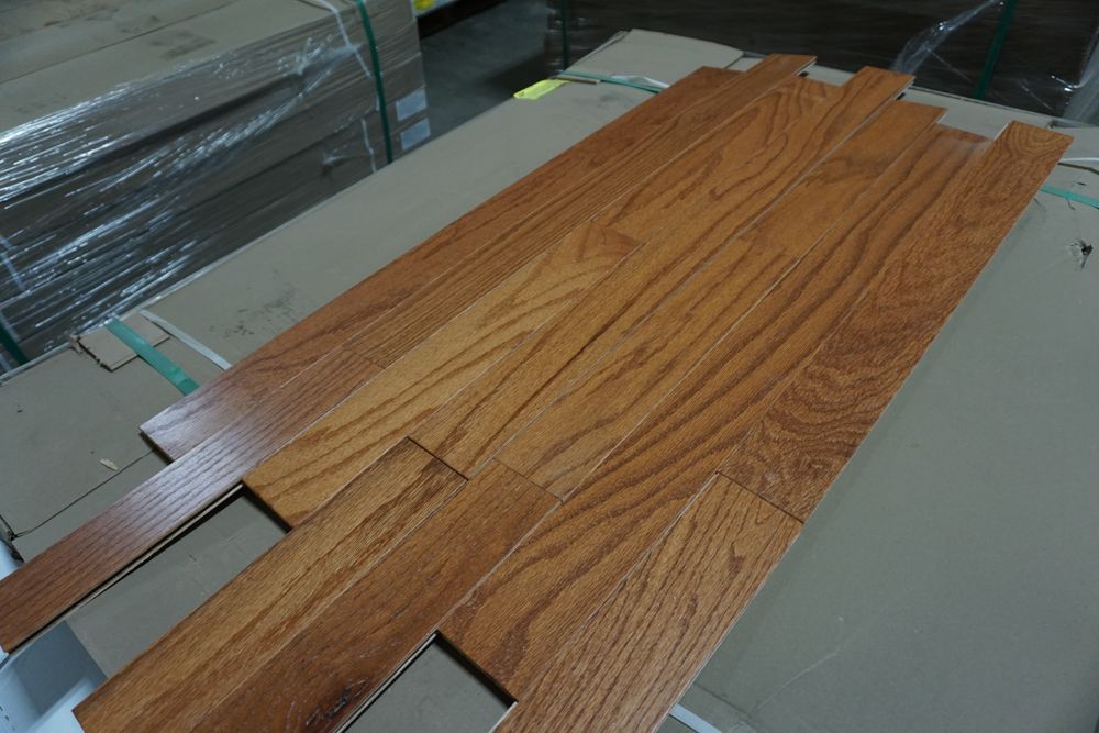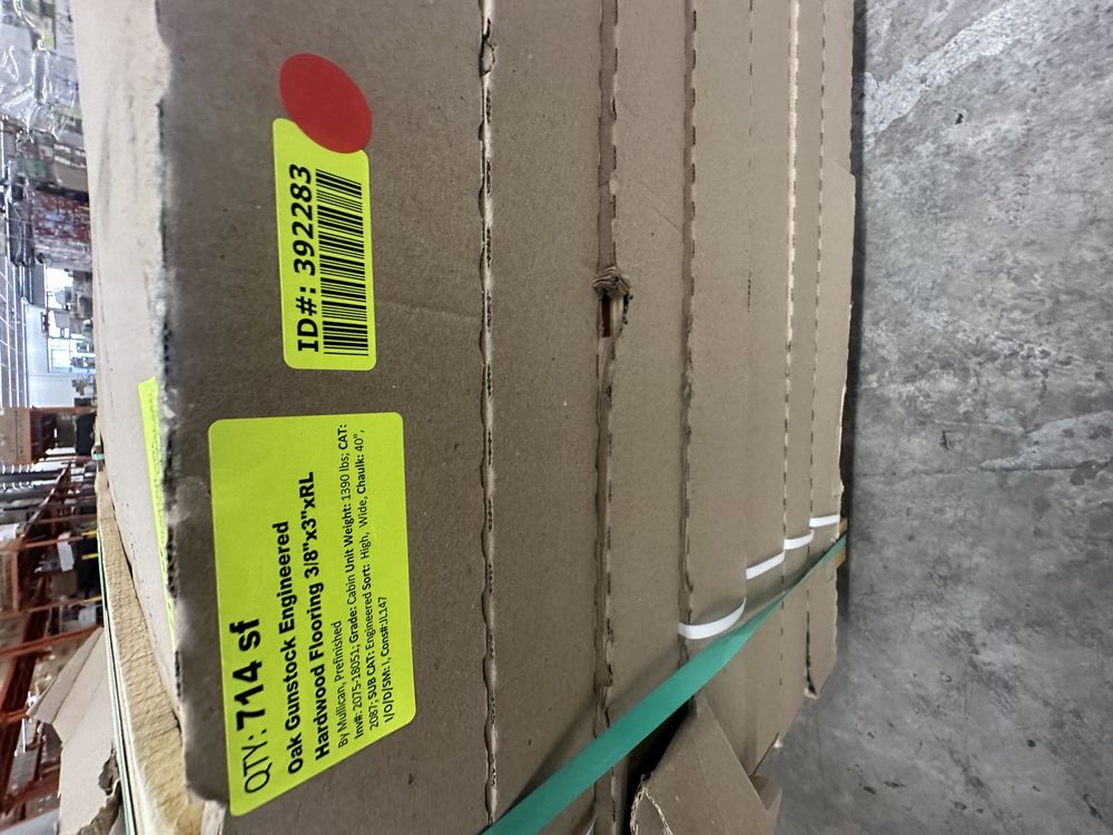 Oak Gunstock Engineered Hardwood Flooring 3/8"x3"xRL. By Mullican, Prefinished, Cabin Grade. 28 Boxes, 25.5 SqFt per box. This flooring product will have varying wood characteristics and colors to include streaks, deeper knots and burls, small splits, wormholes, and even marks during the milling process such as machine burns. It may also have a large variance in color and grain patterns. The boards are typically 10” to 30” with an average board length of 16”. It is usually packaged in mini bundles of 18-20 sf per bundle. It is ok for 5” wide to be heavier in shorter pieces. Cabin grade is a stable, installable product but please account up to 10%-20% waste.,This is a liquidated product. The Auction Company makes no express or implied representations or warranties of any kind regarding the Product. Any pre-existing retail, wholesale or manufacturer warranties will not transfer with the sale of this Product unless expressly stated otherwise on this page. The Buyer accepts the Product in as-is condition, with all faults. Weight: 1390. Sold by: Square Foot. Sold as: Quantity X Price. Inventory #: 2075-18051