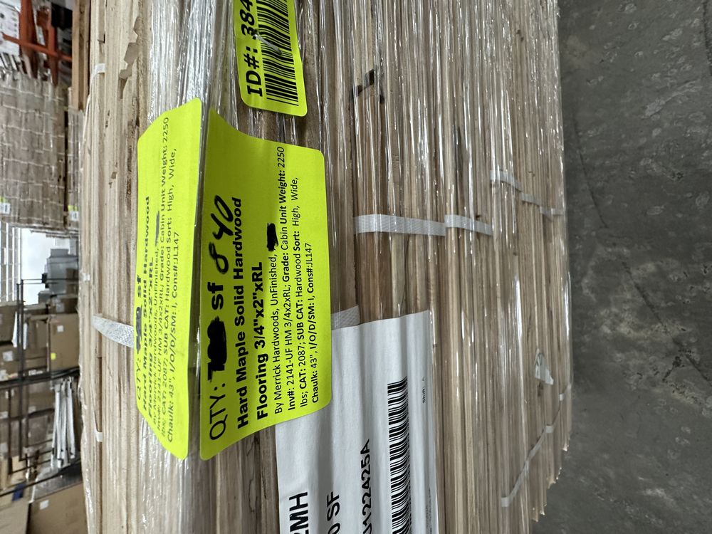 Hard Maple Solid Hardwood Flooring 3/4"x2"xRL. By Merrick Hardwoods, Unfinished, Grade: Cabin. This flooring product will have varying wood characteristics and colors to include streaks, deeper knots and burls, small splits, wormholes, and even marks during the milling process such as machine burns. It may also have a large variance in color and grain patterns. The boards are typically 10” to 30” with an average board length of 16”. It is usually packaged in mini bundles of 18-20 sf per bundle. It is ok for 5” wide to be heavier in shorter pieces. Cabin grade is a stable, installable product but please account up to 10%-20% waste.,This is a liquidated product. The Auction Company makes no express or implied representations or warranties of any kind regarding the Product. Any pre-existing retail, wholesale or manufacturer warranties will not transfer with the sale of this Product unless expressly stated otherwise on this page. The Buyer accepts the Product in as-is condition, with all faults. Weight: 2500. Sold by: Square Foot. Sold as: Quantity X Price. Inventory #: 2141-UF HM 3/4x2xRL