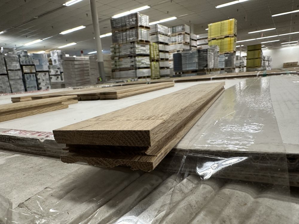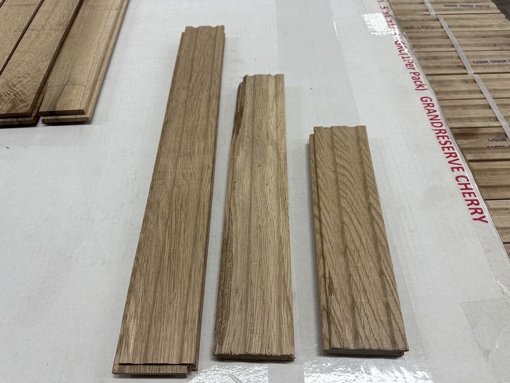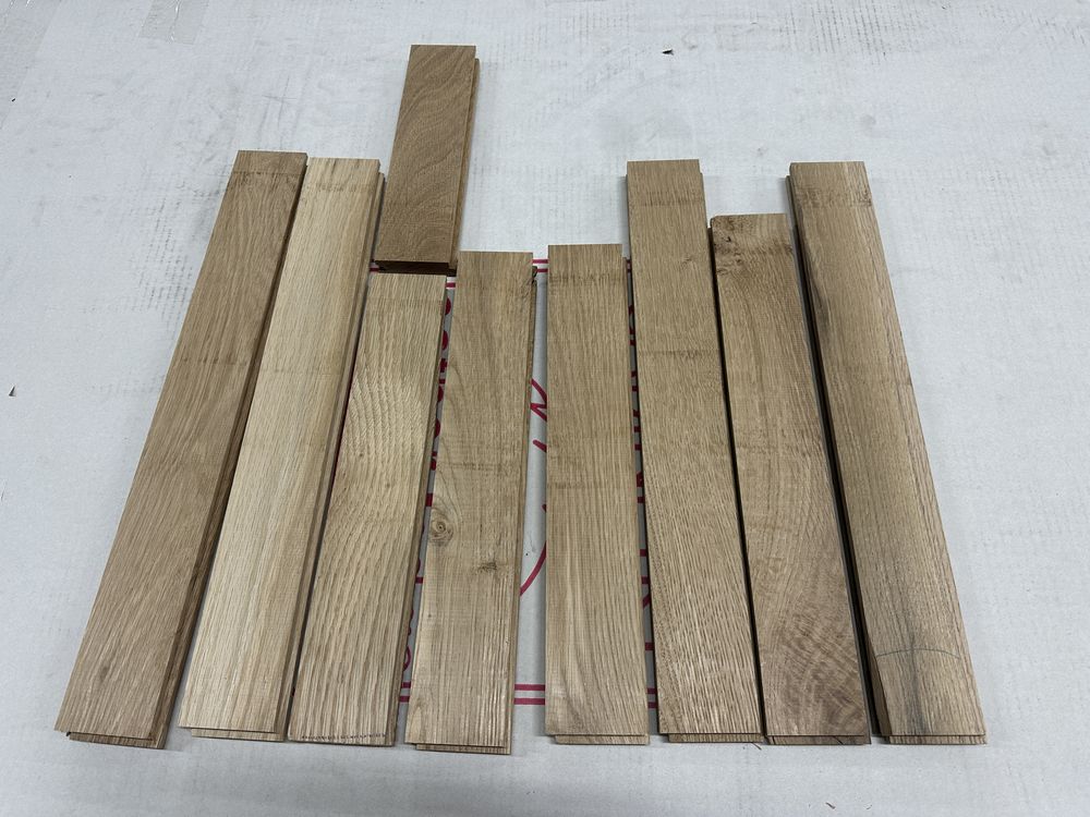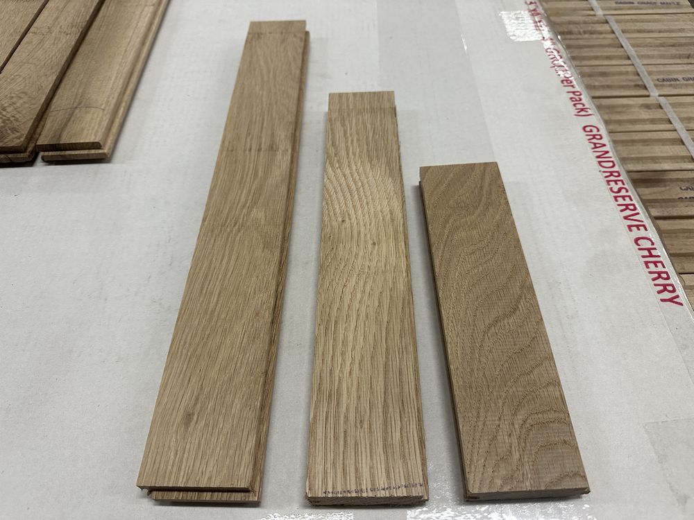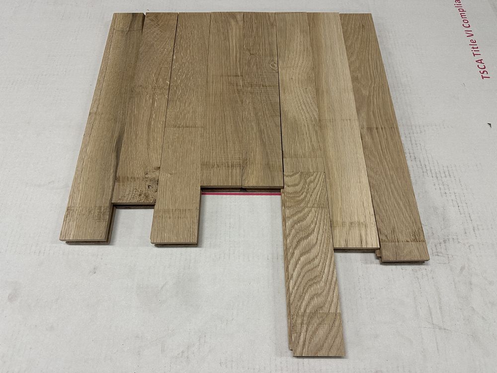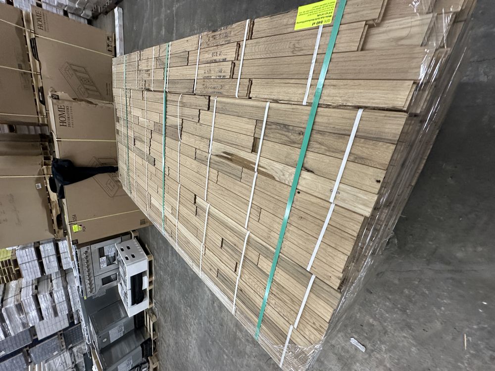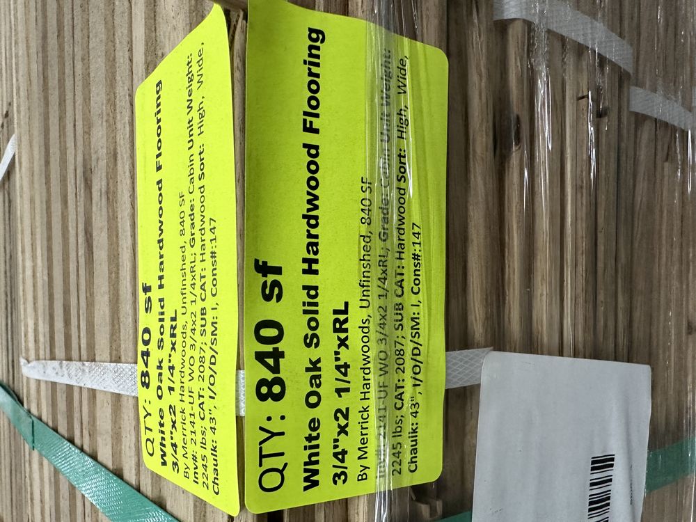 White Oak Solid Hardwood Flooring 3/4"x2 1/4"xRL. By Merrick Hardwoods, Unfinished, Grade: Cabin. This flooring product will have varying wood characteristics and colors to include streaks, deeper knots and burls, small splits, wormholes, and even marks during the milling process such as machine burns. It may also have a large variance in color and grain patterns. The boards are typically 10” to 30” with an average board length of 16”. It is usually packaged in mini bundles of 18-20 sf per bundle. It is ok for 5” wide to be heavier in shorter pieces. Cabin grade is a stable, installable product but please account up to 10%-20% waste.,This is a liquidated product. The Auction Company makes no express or implied representations or warranties of any kind regarding the Product. Any pre-existing retail, wholesale or manufacturer warranties will not transfer with the sale of this Product unless expressly stated otherwise on this page. The Buyer accepts the Product in as-is condition, with all faults. Weight: 2500. Sold by: Square Foot. Sold as: Quantity X Price. Inventory #: 2141-UF WO 3/4x2 1/4xRL