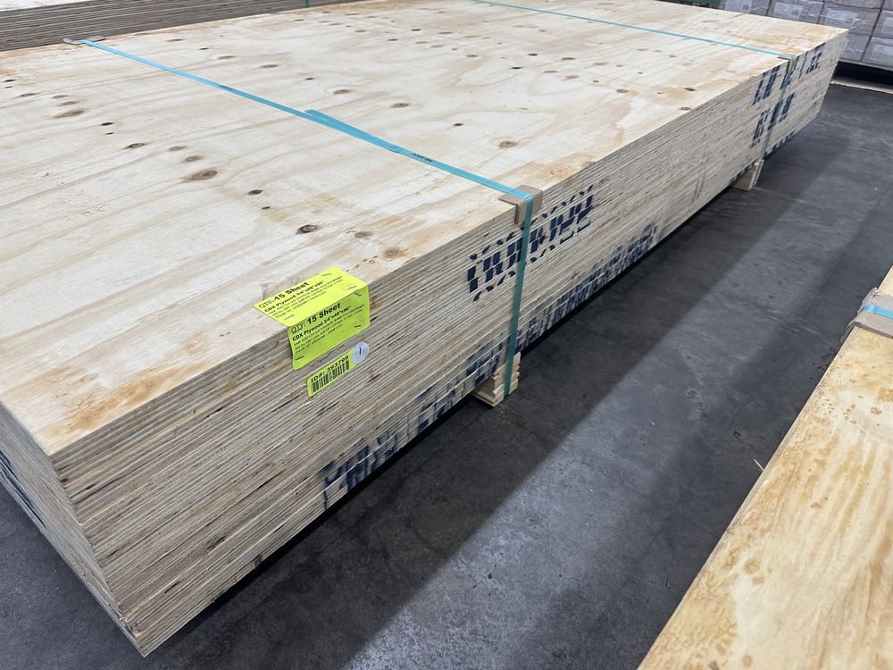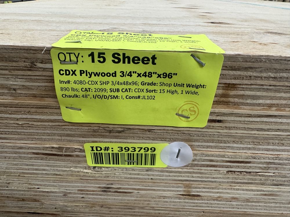 CDX Plywood 3/4"x48"x96". Grade: Shop,This is a liquidated product. The Auction Company makes no express or implied representations or warranties of any kind regarding the Product. Any pre-existing retail, wholesale or manufacturer warranties will not transfer with the sale of this Product unless expressly stated otherwise on this page. The Buyer accepts the Product in as-is condition, with all faults. Weight: 890. Sold by: Sheet. Sold as: Quantity X Price. Inventory #: 4080-CDX SHP 3/4x48x96