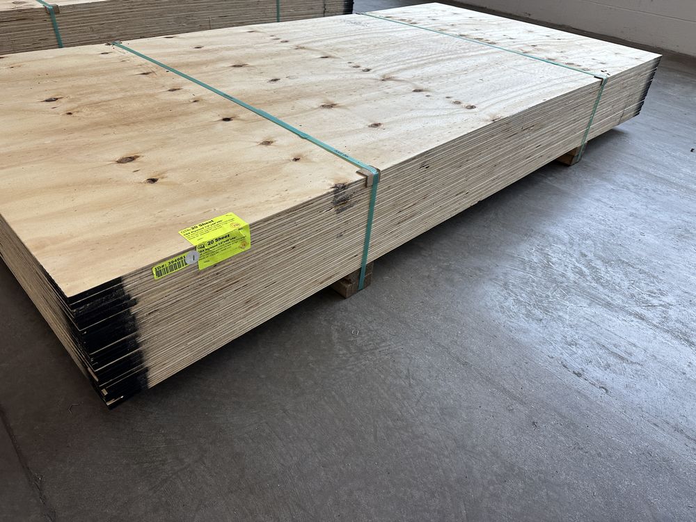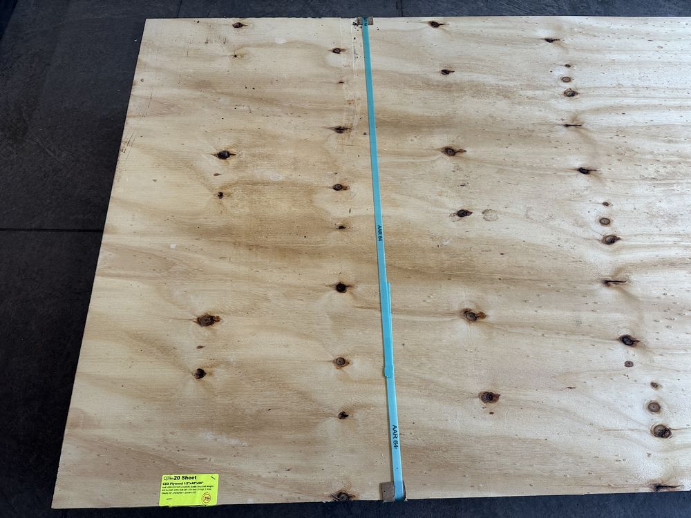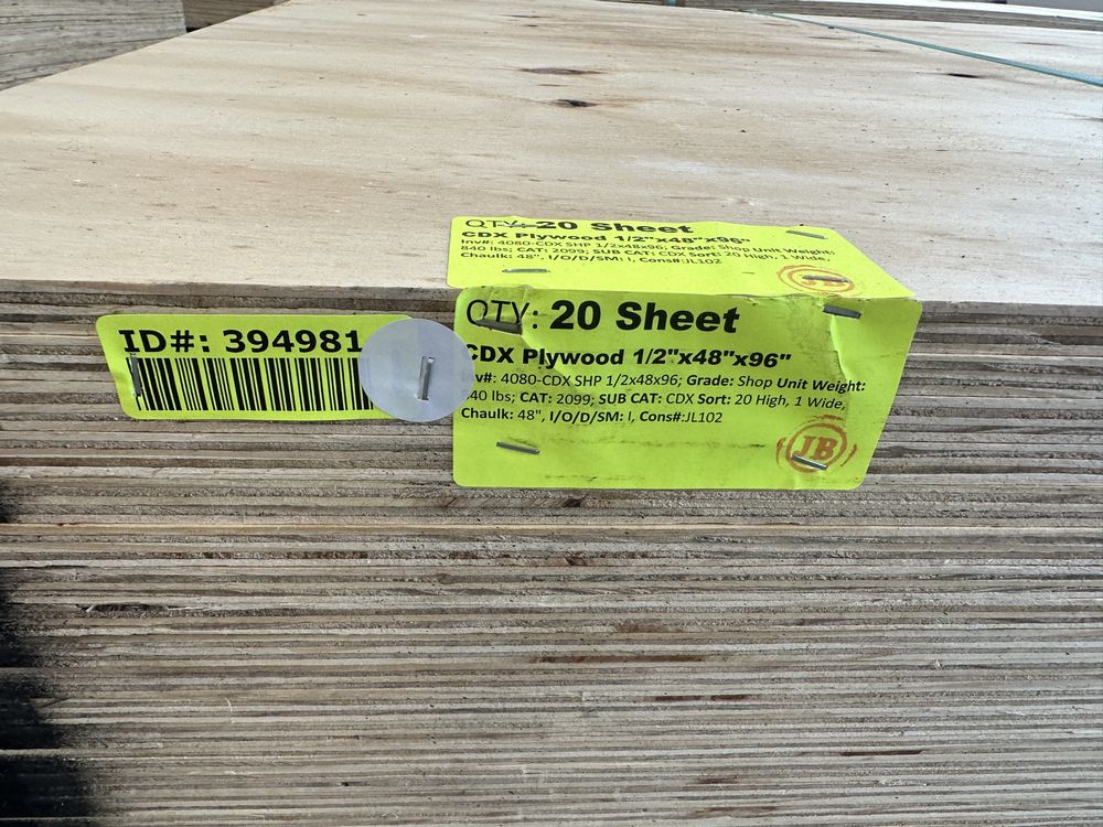 CDX Plywood 1/2"x48"x96". Grade: Shop,This is a liquidated product. The Auction Company makes no express or implied representations or warranties of any kind regarding the Product. Any pre-existing retail, wholesale or manufacturer warranties will not transfer with the sale of this Product unless expressly stated otherwise on this page. The Buyer accepts the Product in as-is condition, with all faults. Weight: 840. Sold by: Sheet. Sold as: Quantity X Price. Inventory #: 4080-CDX SHP 1/2x48x96