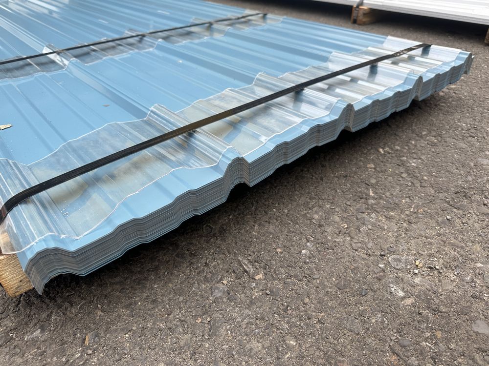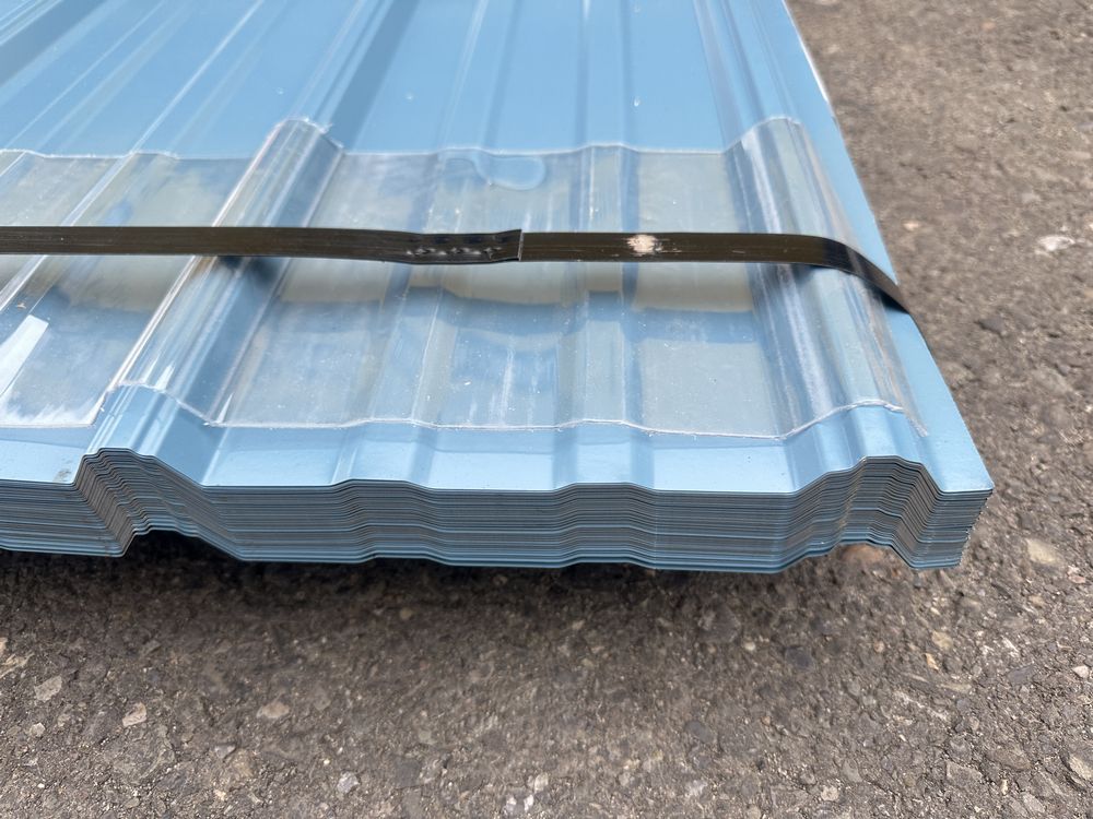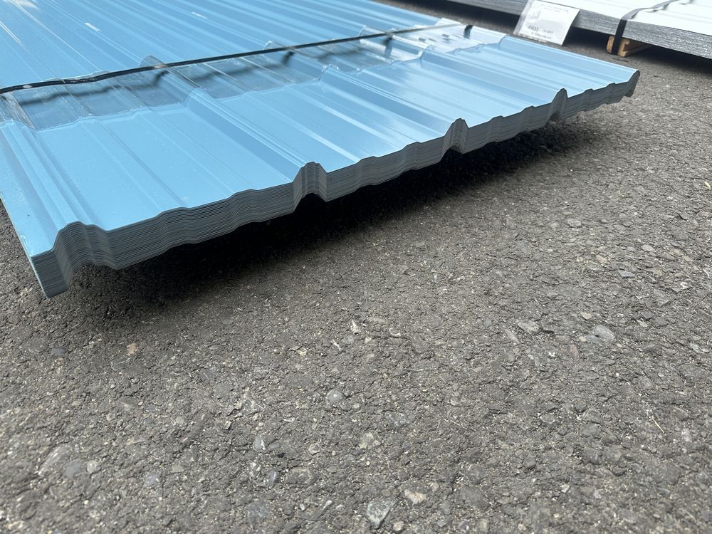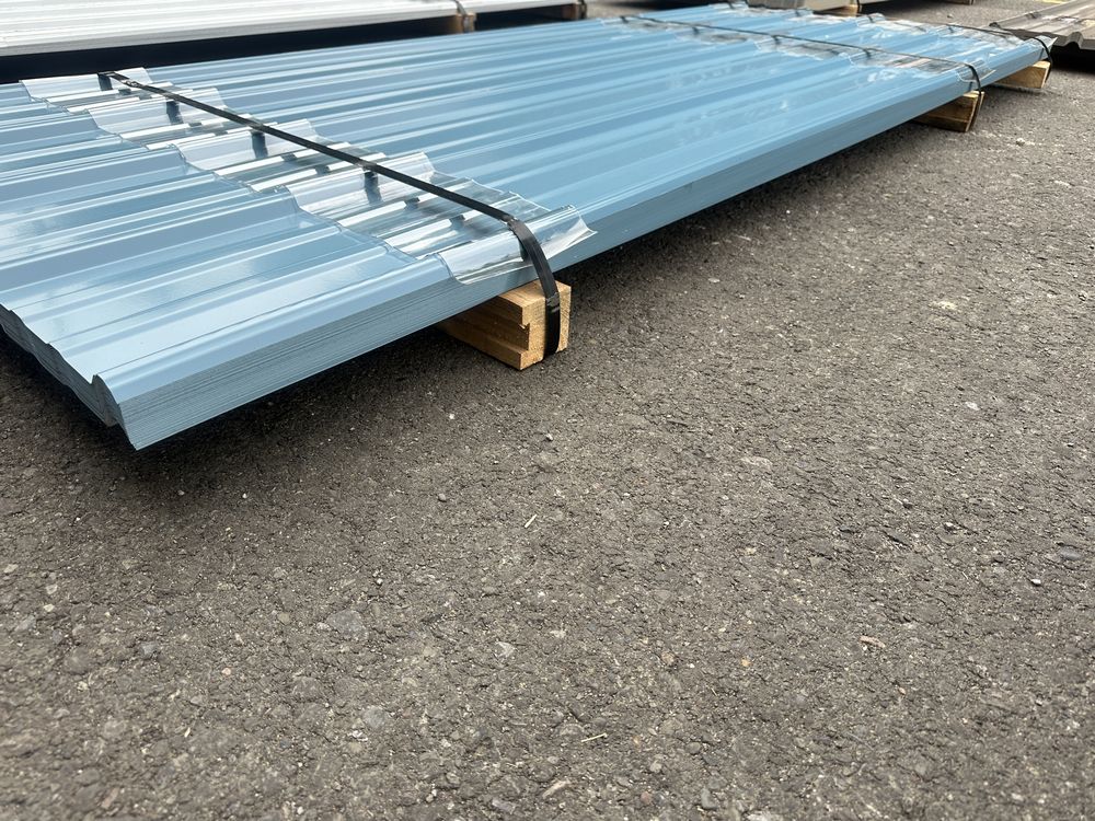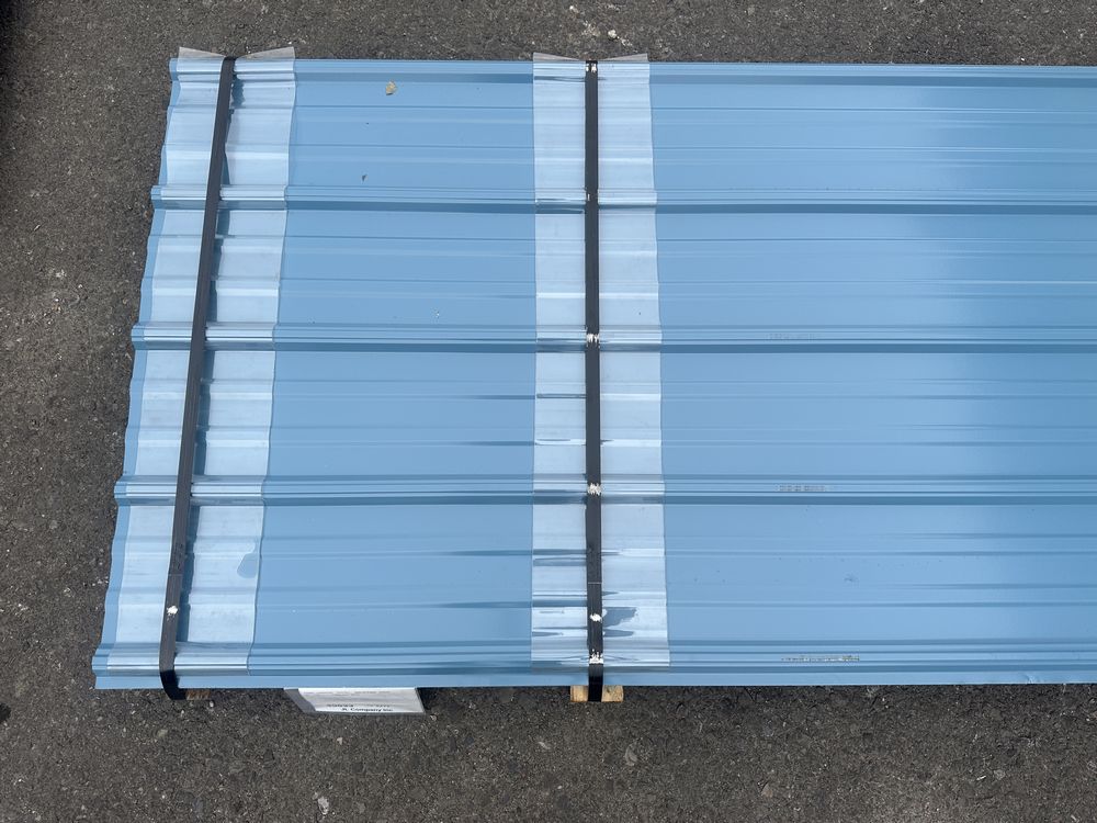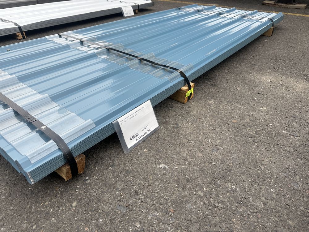 Slate Blue Corrugated Metal Panel 3'x8'. 29 Gauge, 52 Pieces, Grade: B Metal can be labeled as "B Grade" for many reasons. Some may include possible paint imperfections such as; off colors, light or heavy coating, dirt in paint, paint splash or blisters. They may contain steel imperfections such as; creases, wrinkles, wavy edges, dents, or general handling damage. When bidding on Grade B metal panels please don't assume that any two lots are the same. If you want to buy more than one (1) lot and need the same color please call us at 607-865-6951 to have us inspect the lots before you purchase.,This is a liquidated product. The Auction Company makes no express or implied representations or warranties of any kind regarding the Product. Any pre-existing retail, wholesale or manufacturer warranties will not transfer with the sale of this Product unless expressly stated otherwise on this page. The Buyer accepts the Product in as-is condition, with all faults. Weight: 894. Sold by: Linear Foot. Sold as: Quantity X Price. Inventory #: 2850-BL 3xRL