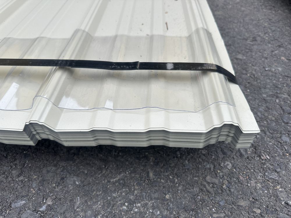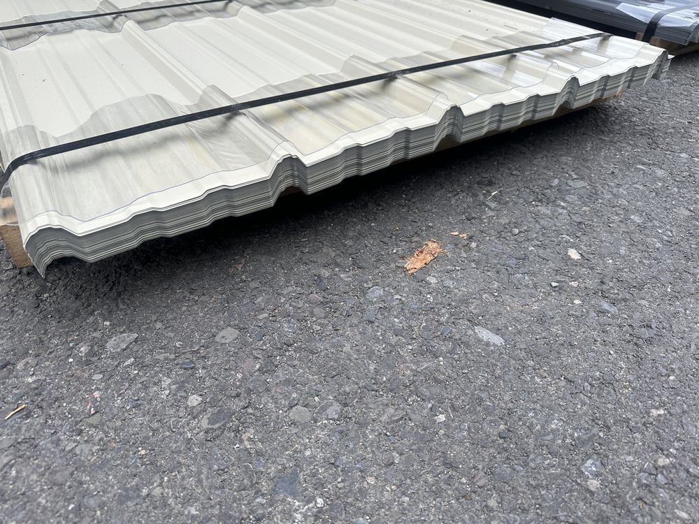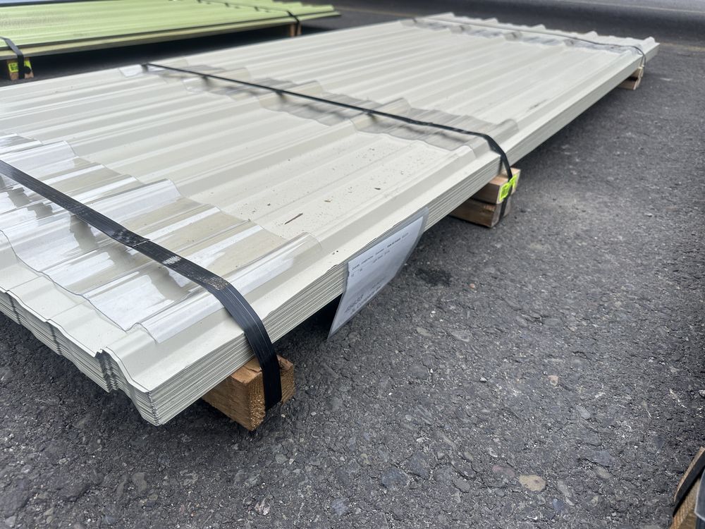 Light Stone Corrugated Metal Panel 3'x8'. 29 Gauge, 51 Pieces, Grade: B Metal can be labeled as "B Grade" for many reasons. Some may include possible paint imperfections such as; off colors, light or heavy coating, dirt in paint, paint splash or blisters. They may contain steel imperfections such as; creases, wrinkles, wavy edges, dents, or general handling damage. When bidding on Grade B metal panels please don't assume that any two lots are the same. If you want to buy more than one (1) lot and need the same color please call us at 607-865-6951 to have us inspect the lots before you purchase.,This is a liquidated product. The Auction Company makes no express or implied representations or warranties of any kind regarding the Product. Any pre-existing retail, wholesale or manufacturer warranties will not transfer with the sale of this Product unless expressly stated otherwise on this page. The Buyer accepts the Product in as-is condition, with all faults. Weight: 877. Sold by: Linear Foot. Sold as: Quantity X Price. Inventory #: 2850-BG 3xRL