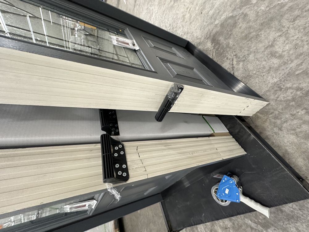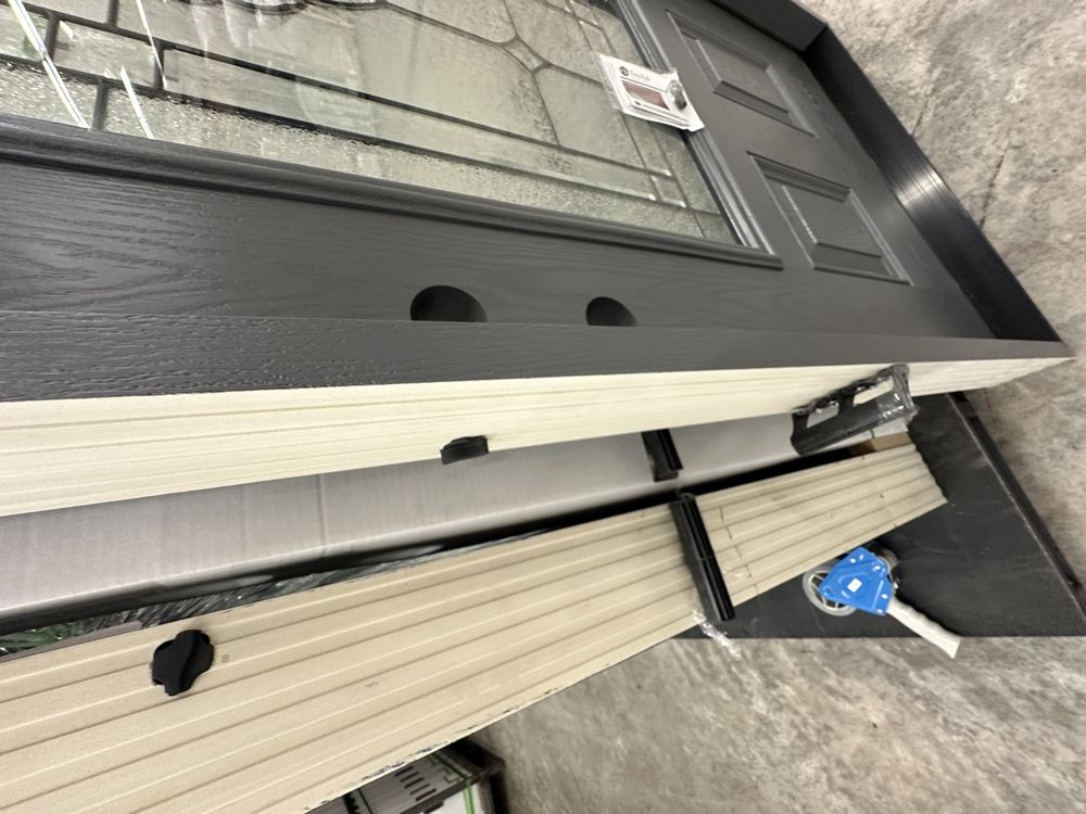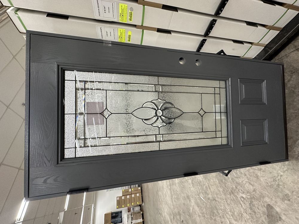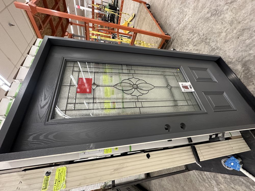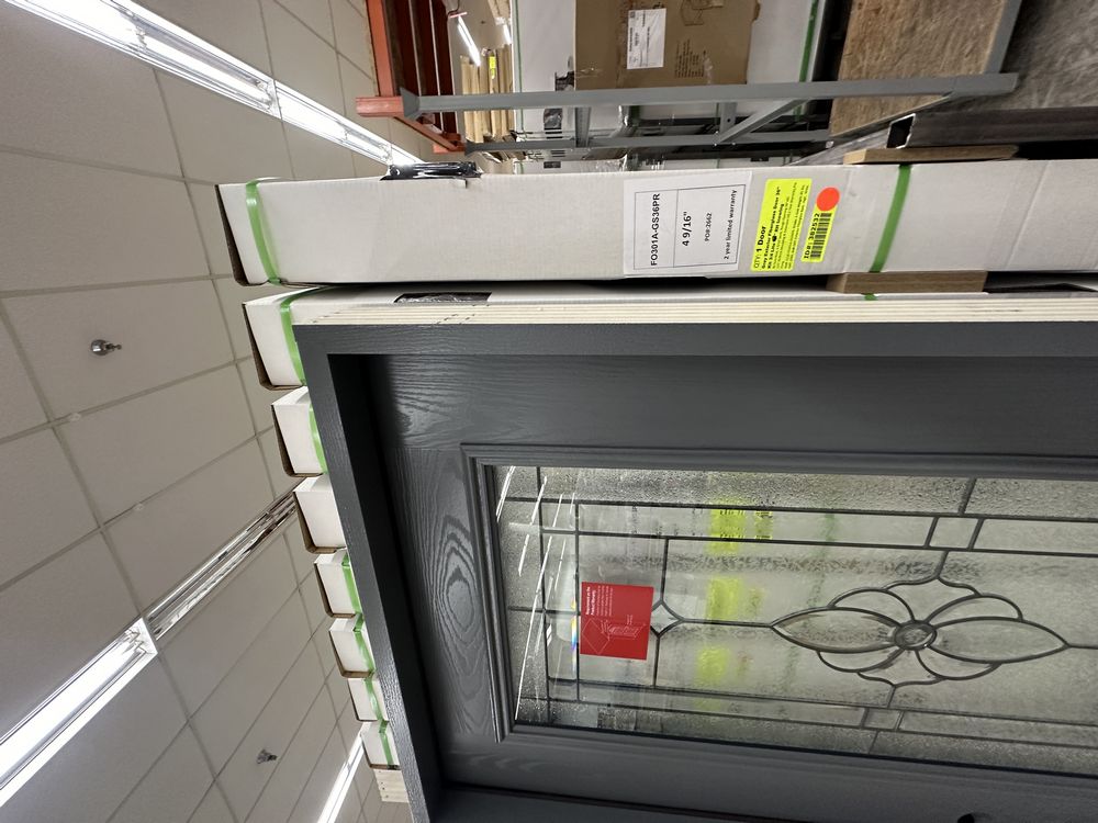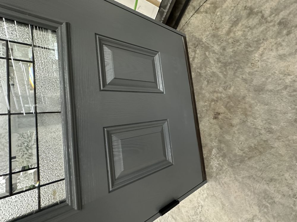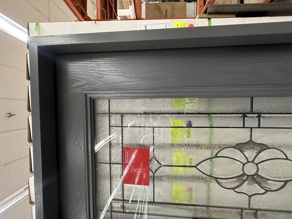 Gray Exterior Fiberglass Door 36" Kit 3/4 Lite RH Inswing. By Sure Rock, 4 9/16" Jamb, Rough Opening 38"x82 1/2", W/Brick Moulding & Extension Sill, 2 Year Warranty, Pre Hung, Grade: A,This is a liquidated product. The Auction Company makes no express or implied representations or warranties of any kind regarding the Product. Any pre-existing retail, wholesale or manufacturer warranties will not transfer with the sale of this Product unless expressly stated otherwise on this page. The Buyer accepts the Product in as-is condition, with all faults. Weight: 85 lbs. Sold by: Door. Sold as: Quantity X Price. Inventory #: 5218-FO301A-GS36PR