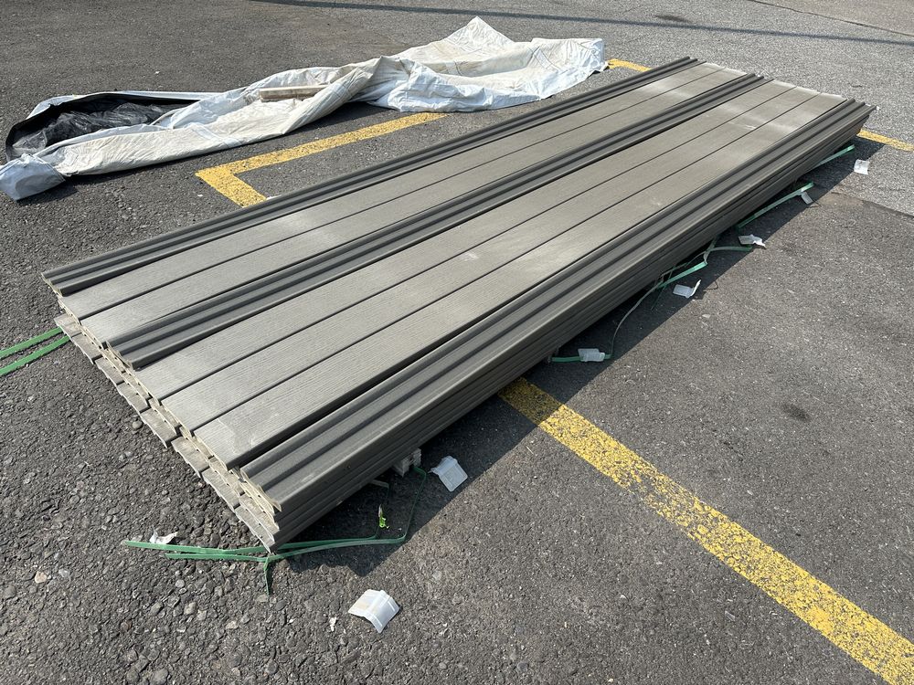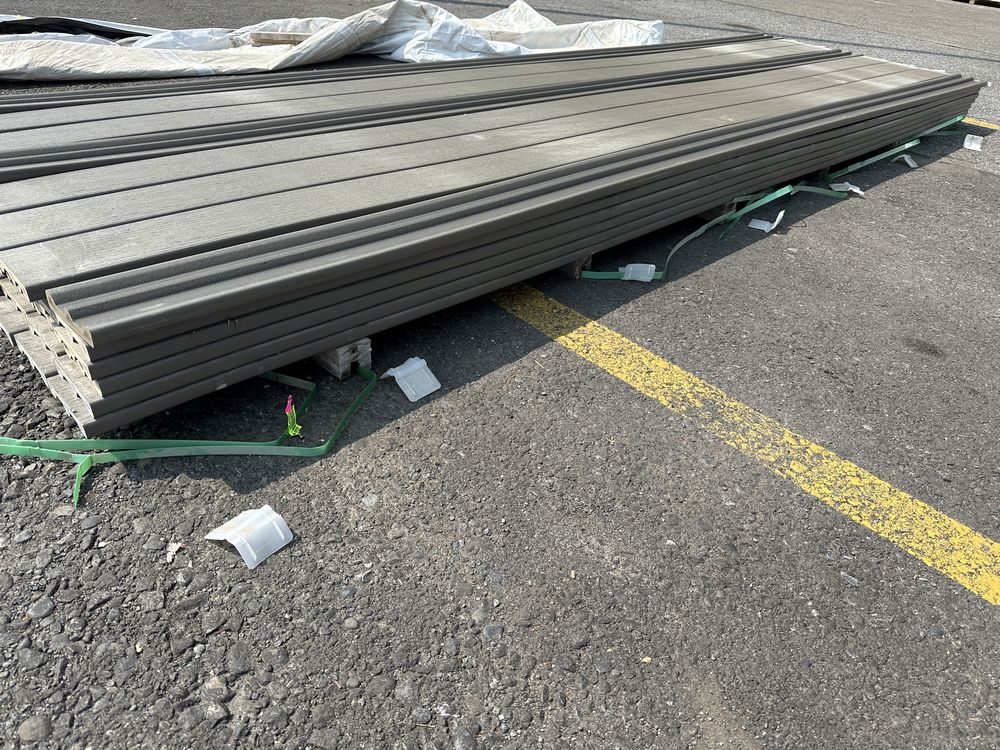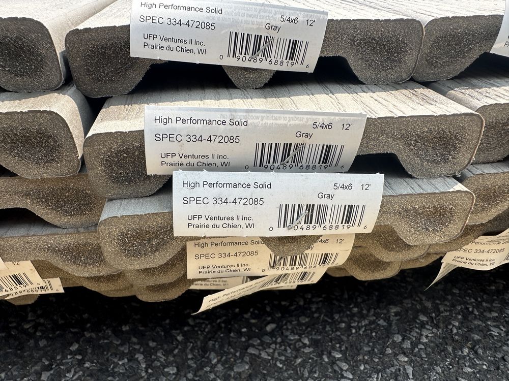 Gray Composite Decking 5/4"x6"x12'. PVC Wrapped, 48 Boards Total, Scalloped Bottom, Flat Edge, Actual Dimensions 1"x5 1/4"x12' Grade: B,This is a liquidated product. The Auction Company makes no express or implied representations or warranties of any kind regarding the Product. Any pre-existing retail, wholesale or manufacturer warranties will not transfer with the sale of this Product unless expressly stated otherwise on this page. The Buyer accepts the Product in as-is condition, with all faults. Weight: x. Sold by: Linear Foot. Sold as: Quantity X Price. Inventory #: 1011-GRY 5/4x06x12