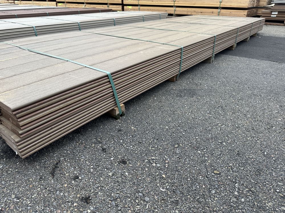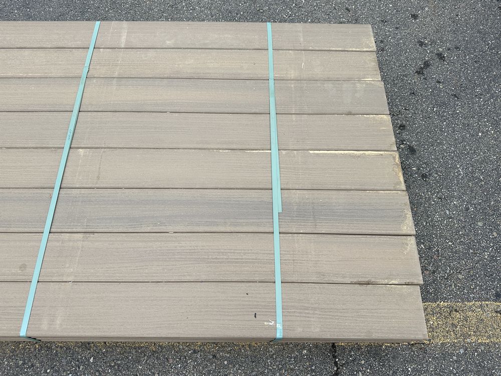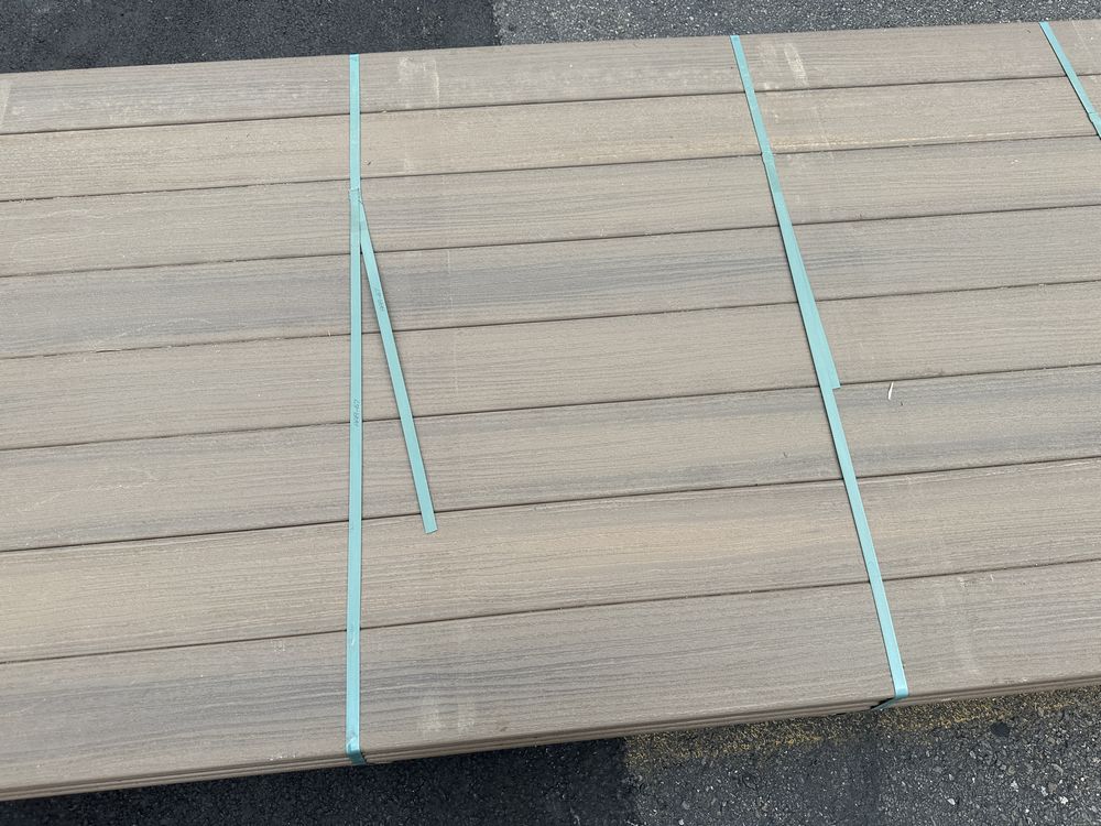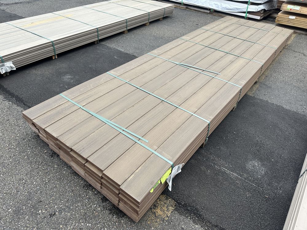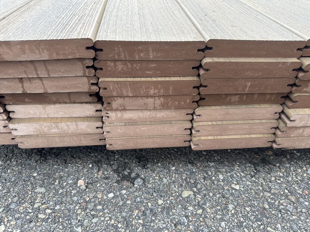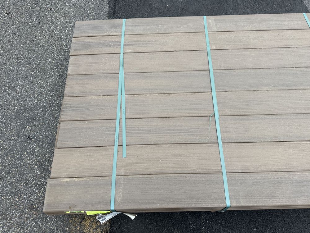 Brownstone PVC Grooved Decking 5/4"x6"x12'. By Fiberon, 56 Total Boards Grooved Edge, Flat Bottom, Actual Dimensions 1"x5 3/8"x12' Grade: B,This is a liquidated product. The Auction Company makes no express or implied representations or warranties of any kind regarding the Product. Any pre-existing retail, wholesale or manufacturer warranties will not transfer with the sale of this Product unless expressly stated otherwise on this page. The Buyer accepts the Product in as-is condition, with all faults. Weight: x. Sold by: Linear Foot. Sold as: Quantity X Price. Inventory #: 1019-PVC-BS 5/4x06x12