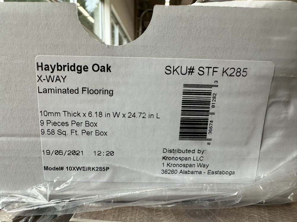 Haybridge Oak Laminated Flooring 10mmx7"x25". By Kronospan, 9 Pieces Per Box, 9.58 Square Foot Per Box, Actual Dimensions 10mmx6.18"x24.72", X-way Grade: 1st,This is a liquidated product. The Auction Company makes no express or implied representations or warranties of any kind regarding the Product. Any pre-existing retail, wholesale or manufacturer warranties will not transfer with the sale of this Product unless expressly stated otherwise on this page. The Buyer accepts the Product in as-is condition, with all faults. Weight: 1775. Sold by: Square Foot. Sold as: Quantity X Price. Inventory #: 2159-10XWEIRK285P