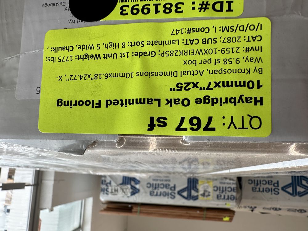 Haybridge Oak Laminated Flooring 10mmx7"x25". By Kronospan, 9 Pieces Per Box, 9.58 Square Foot Per Box, Actual Dimensions 10mmx6.18"x24.72", X-way Grade: 1st,This is a liquidated product. The Auction Company makes no express or implied representations or warranties of any kind regarding the Product. Any pre-existing retail, wholesale or manufacturer warranties will not transfer with the sale of this Product unless expressly stated otherwise on this page. The Buyer accepts the Product in as-is condition, with all faults. Weight: 1775. Sold by: Square Foot. Sold as: Quantity X Price. Inventory #: 2159-10XWEIRK285P