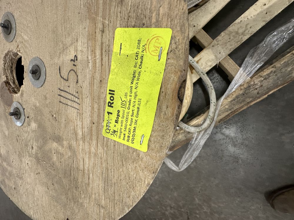 3/4" Rope. Weight with Spool 1115 lbs. Grade: B,This is a liquidated product. No warranties are expressed or implied Weight: x. Sold by: Roll. Sold as: Quantity X Price. Inventory #: 5460-0001G