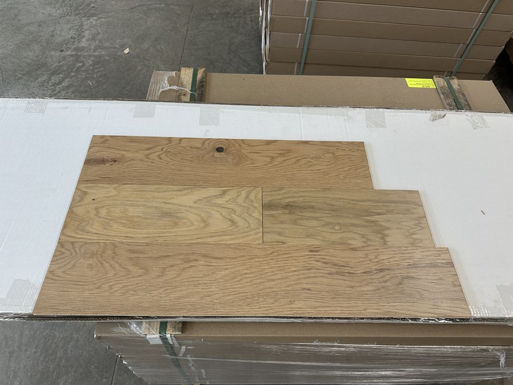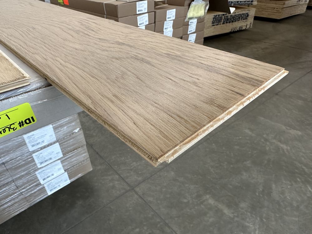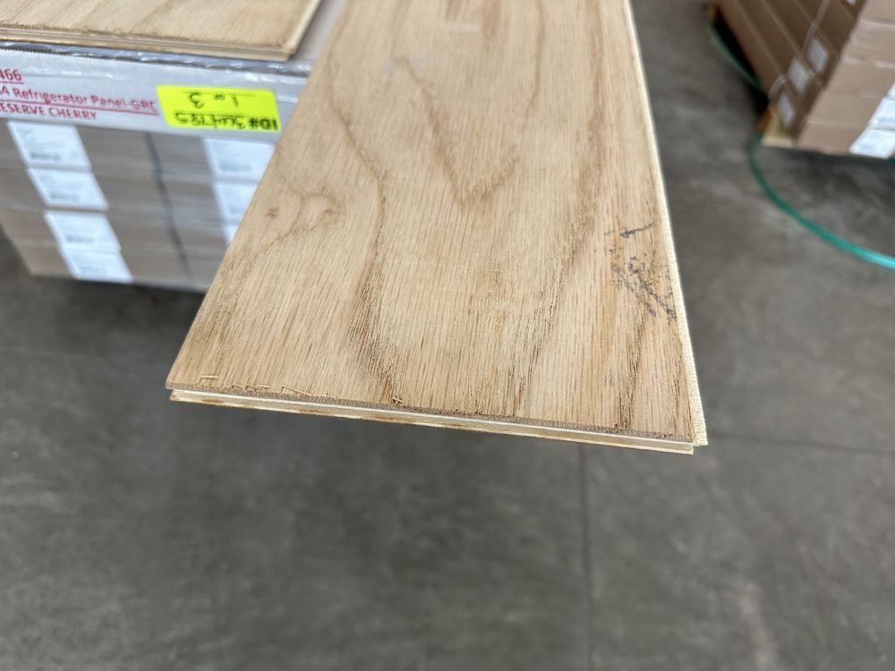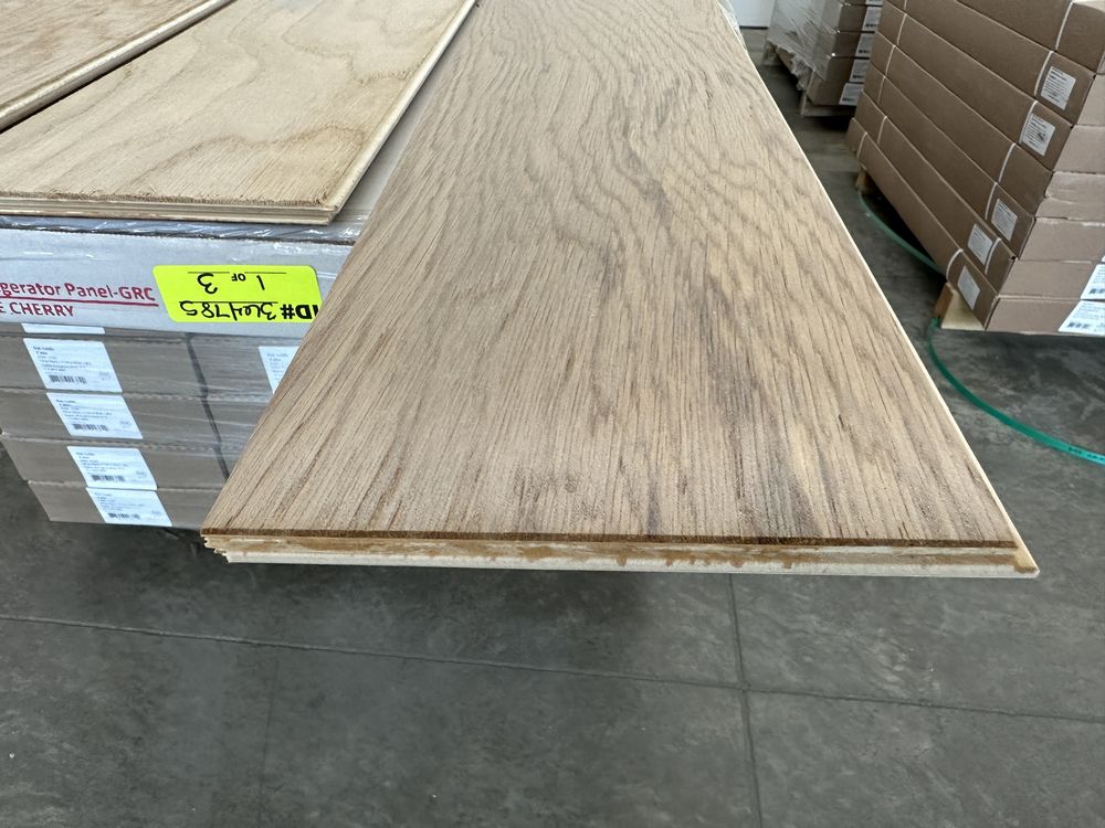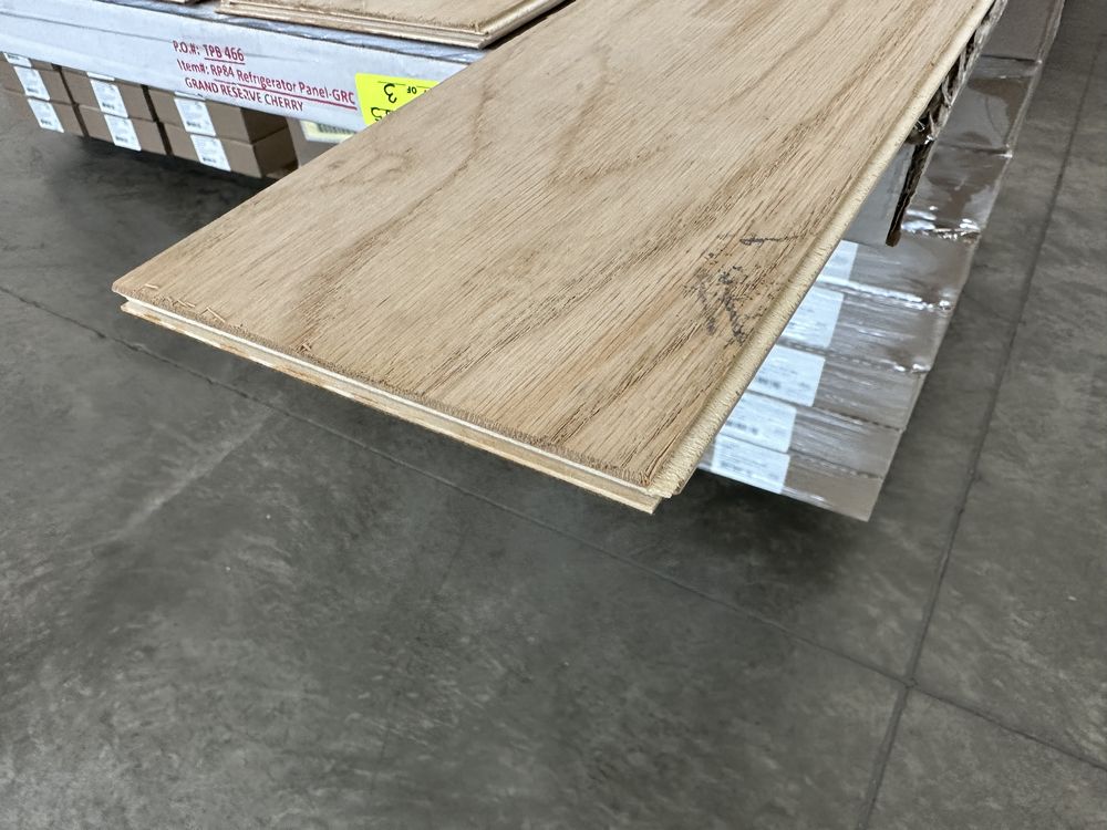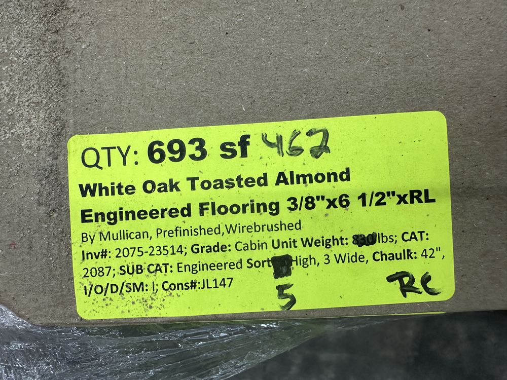 White Oak Toasted Almond Engineered Flooring 3/8"x6 1/2"xRL. By Mullican, Prefinished, Wirebrushed, Square Feet Per Carton: 33, 14 boxes, Grade: Cabin. This flooring product will have varying wood characteristics and colors to include streaks, deeper knots and burls, small splits, wormholes, and even marks during the milling process such as machine burns. It may also have a large variance in color and grain patterns. The boards are typically 10” to 30” with an average board length of 16”. It is usually packaged in mini bundles of 18-20 sf per bundle. It is ok for 5” wide to be heavier in shorter pieces. Cabin grade is a stable, installable product but please account up to 10%-20% waste.,This is a liquidated product. The Auction Company makes no express or implied representations or warranties of any kind regarding the Product. Any pre-existing retail, wholesale or manufacturer warranties will not transfer with the sale of this Product unless expressly stated otherwise on this page. The Buyer accepts the Product in as-is condition, with all faults. Weight: x. Sold by: Square Foot. Sold as: Quantity X Price. Inventory #: 2075-23514