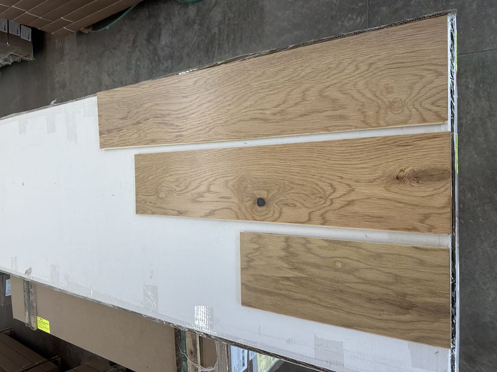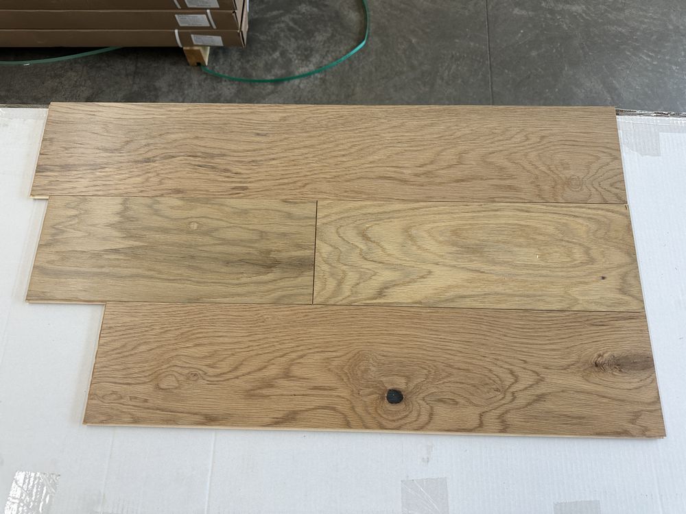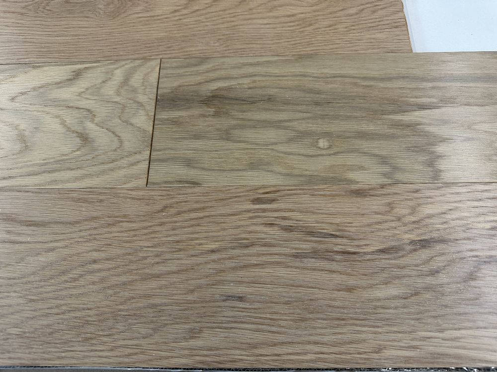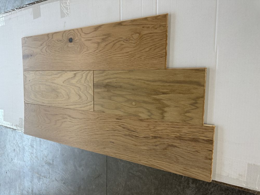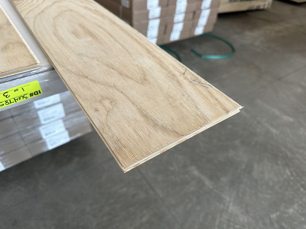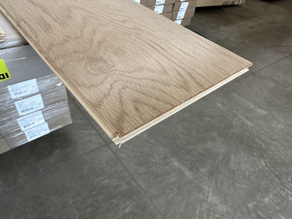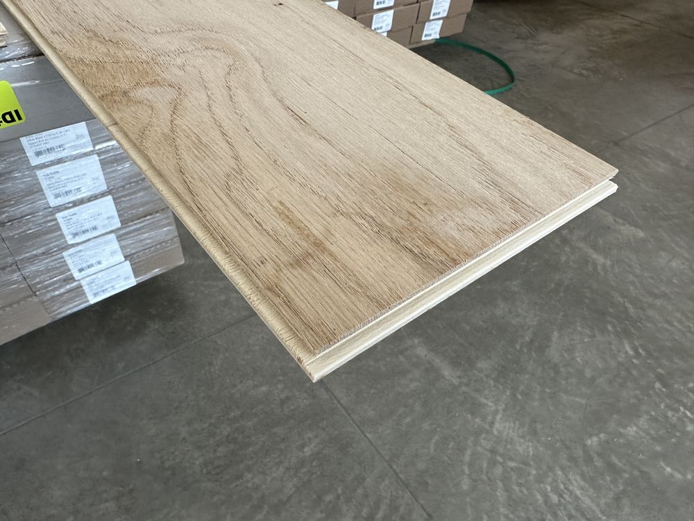 White Oak Toasted Almond Engineered Flooring 3/8"x6 1/2"xRL. By Mullican, Prefinished, Wirebrushed, Square Feet Per Carton: 33, 14 boxes, Grade: Cabin. This flooring product will have varying wood characteristics and colors to include streaks, deeper knots and burls, small splits, wormholes, and even marks during the milling process such as machine burns. It may also have a large variance in color and grain patterns. The boards are typically 10” to 30” with an average board length of 16”. It is usually packaged in mini bundles of 18-20 sf per bundle. It is ok for 5” wide to be heavier in shorter pieces. Cabin grade is a stable, installable product but please account up to 10%-20% waste.,This is a liquidated product. The Auction Company makes no express or implied representations or warranties of any kind regarding the Product. Any pre-existing retail, wholesale or manufacturer warranties will not transfer with the sale of this Product unless expressly stated otherwise on this page. The Buyer accepts the Product in as-is condition, with all faults. Weight: x. Sold by: Square Foot. Sold as: Quantity X Price. Inventory #: 2075-23514