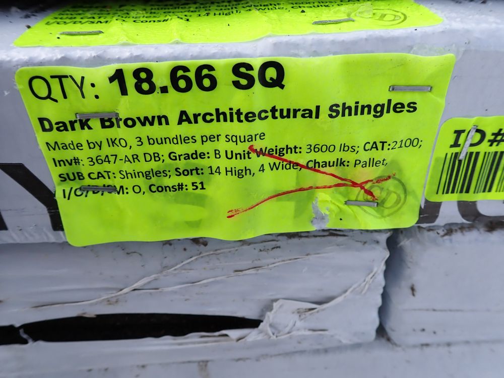 Dark Brown Architectural Shingles. Made By Silco, 3 Bundles Per Square Grade: B,This is a liquidated product. The Auction Company makes no express or implied representations or warranties of any kind regarding the Product. Any pre-existing retail, wholesale or manufacturer warranties will not transfer with the sale of this Product unless expressly stated otherwise on this page. The Buyer accepts the Product in as-is condition, with all faults. Weight: 2850. Sold by: Bundle. Sold as: Quantity X Price. Inventory #: 3651-AR DB