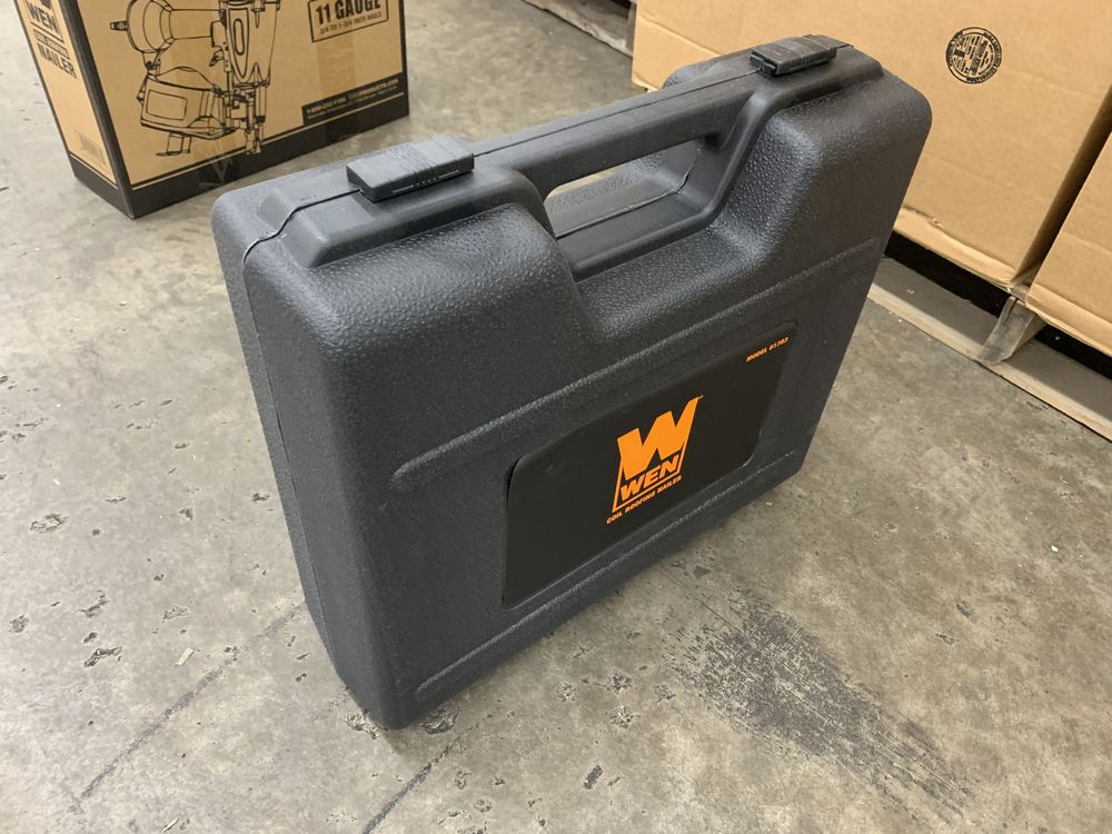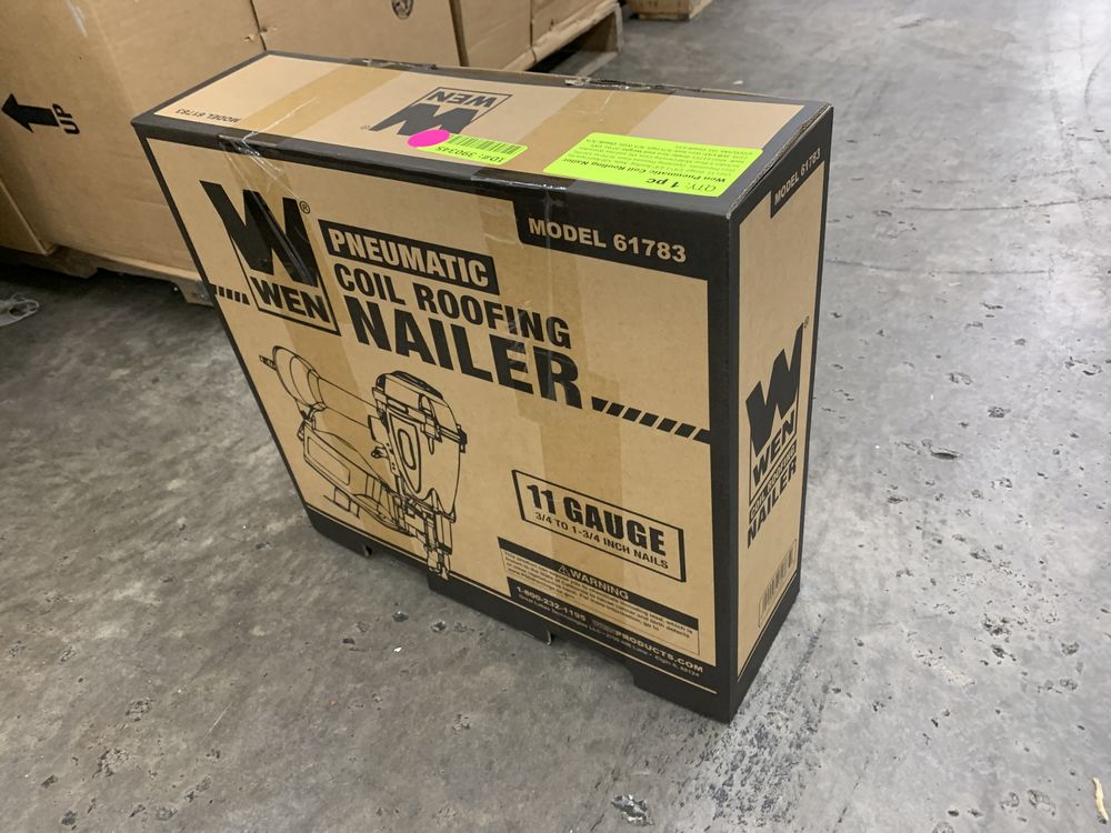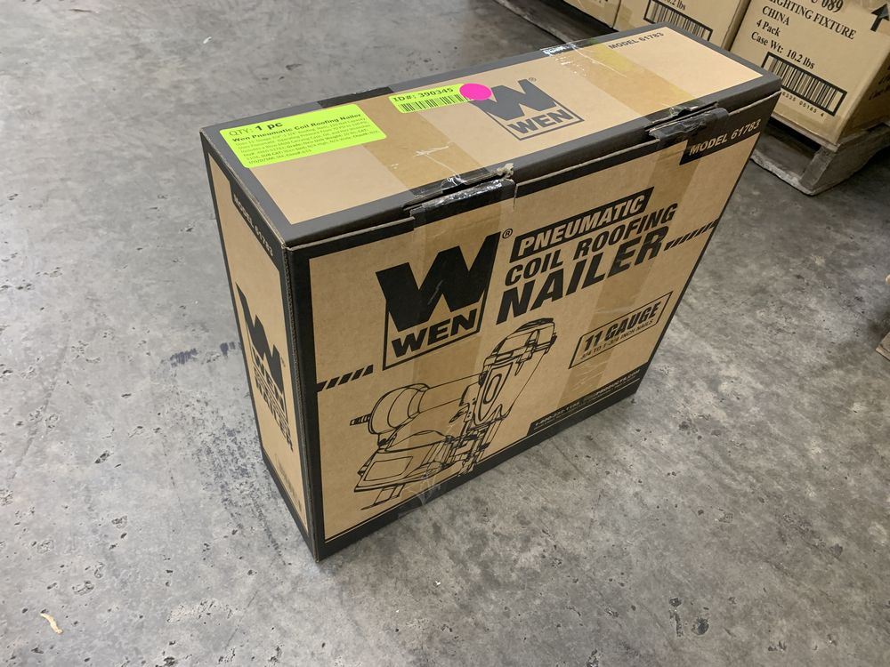 Wen Pneumatic Coil Roofing Nailer. Uses 11 Guage 3/4"-1 3/4" Roofing Nails, 120 Nail Capacity, uses Pneumatic Operating Pressure From 70 PSI to 120 PSI, Includes a Blow Mold Carrying Case, Oil, and Hex Wrenches Grade: New,This is a liquidated product. Any pre-existing retail, wholesale or manufacturer warranties will not transfer with the sale of this Product unless expressly stated otherwise. Weight: 20. Sold by: Lot. Sold as: Quantity X Price. Inventory #: 4860-61783