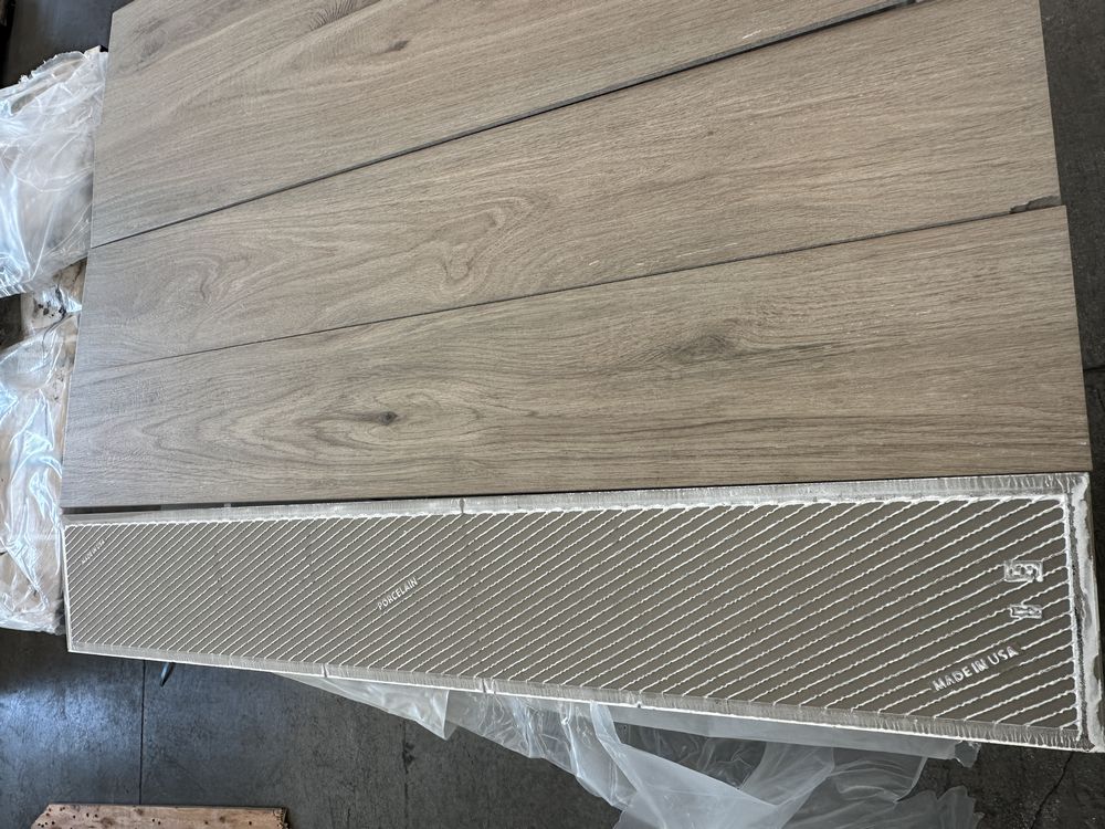 Native Pine Porcelain Tile 8"x48". By Florim USA, 24 Boxes,7 pieces per box, 18.69 square ft. per box. Grade: B This is a liquidated product. The Auction Company makes no express or implied representations or warranties of any kind regarding the Product. Any pre-existing retail, wholesale or manufacturer warranties will not transfer with the sale of this Product unless expressly stated otherwise on this page. The Buyer accepts the Product in as-is condition, with all faults. Weight: 2400lbs. Sold by: Square Foot. Sold as: Quantity X Price. Inventory #: 2046-1104813