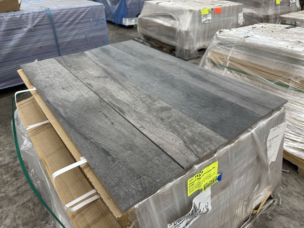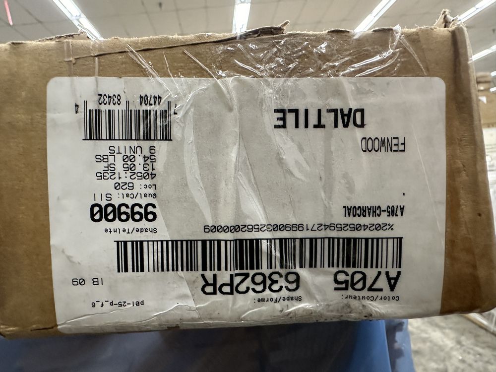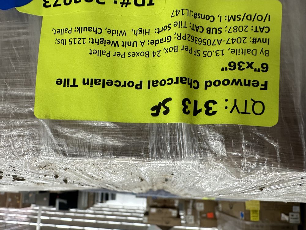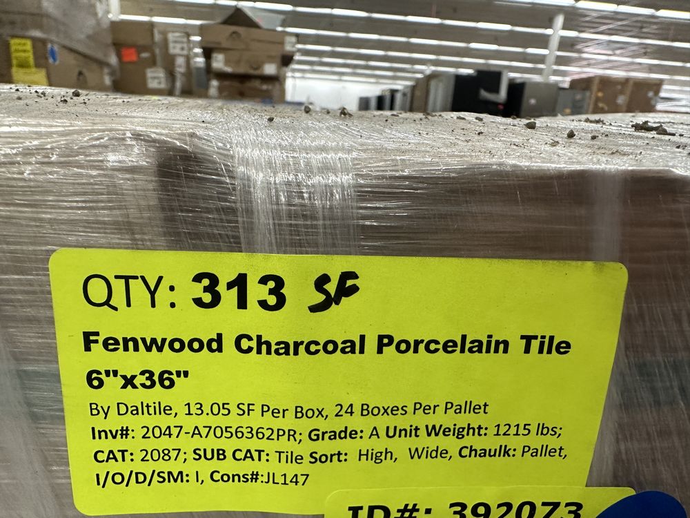 Fenwood Charcoal Porcelain Tile 6"x36". By Daltile, 13.05 Square Foot Per Box, 24 Boxes Per Pallet, 9 Pieces Per Box, Grade: A,This is a liquidated product. The Auction Company makes no express or implied representations or warranties of any kind regarding the Product. Any pre-existing retail, wholesale or manufacturer warranties will not transfer with the sale of this Product unless expressly stated otherwise on this page. The Buyer accepts the Product in as-is condition, with all faults. Weight: 1215. Sold by: Square Foot. Sold as: Quantity X Price. Inventory #: 2047-A7056362PR
