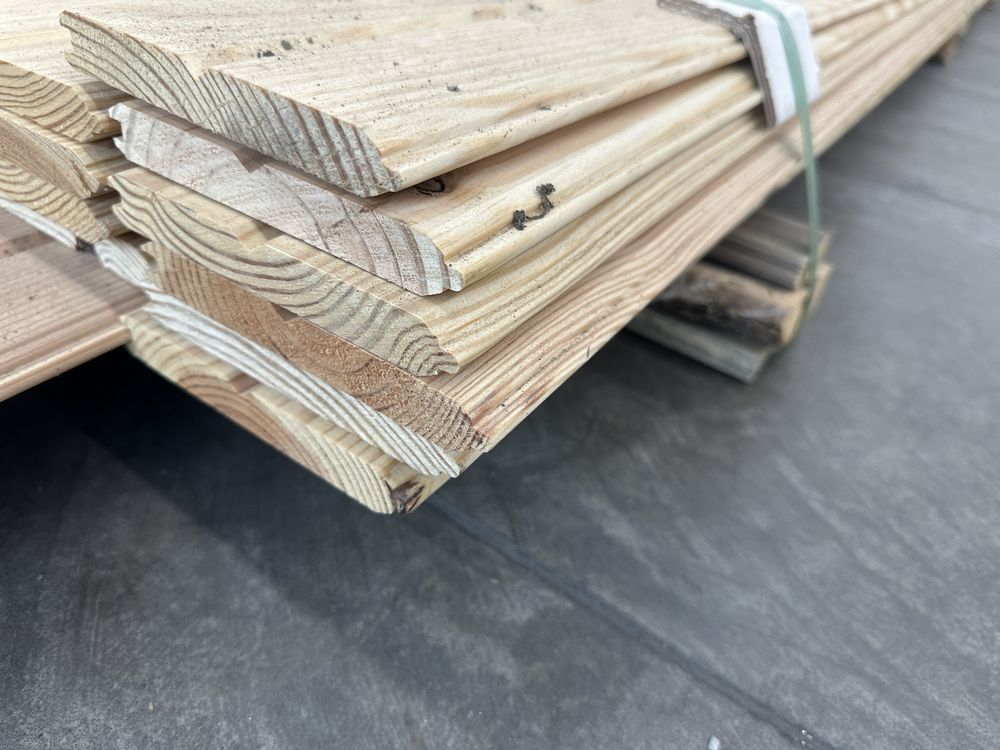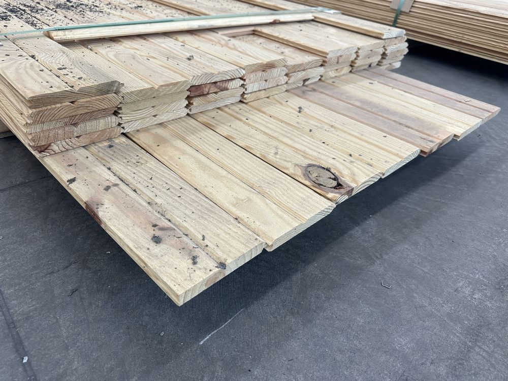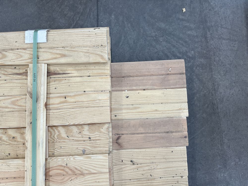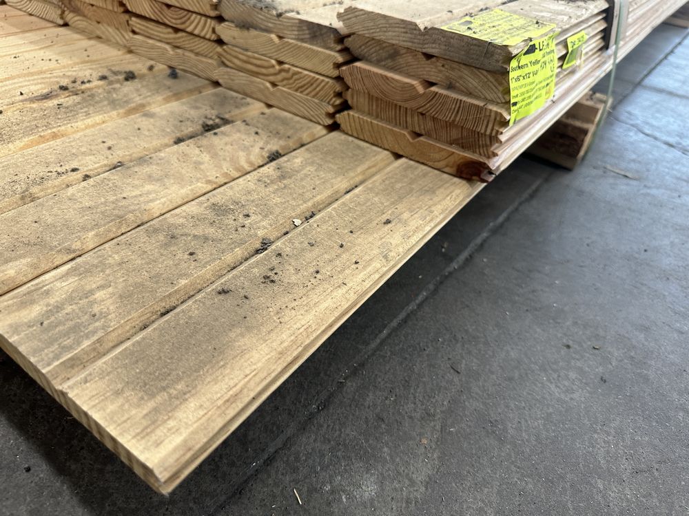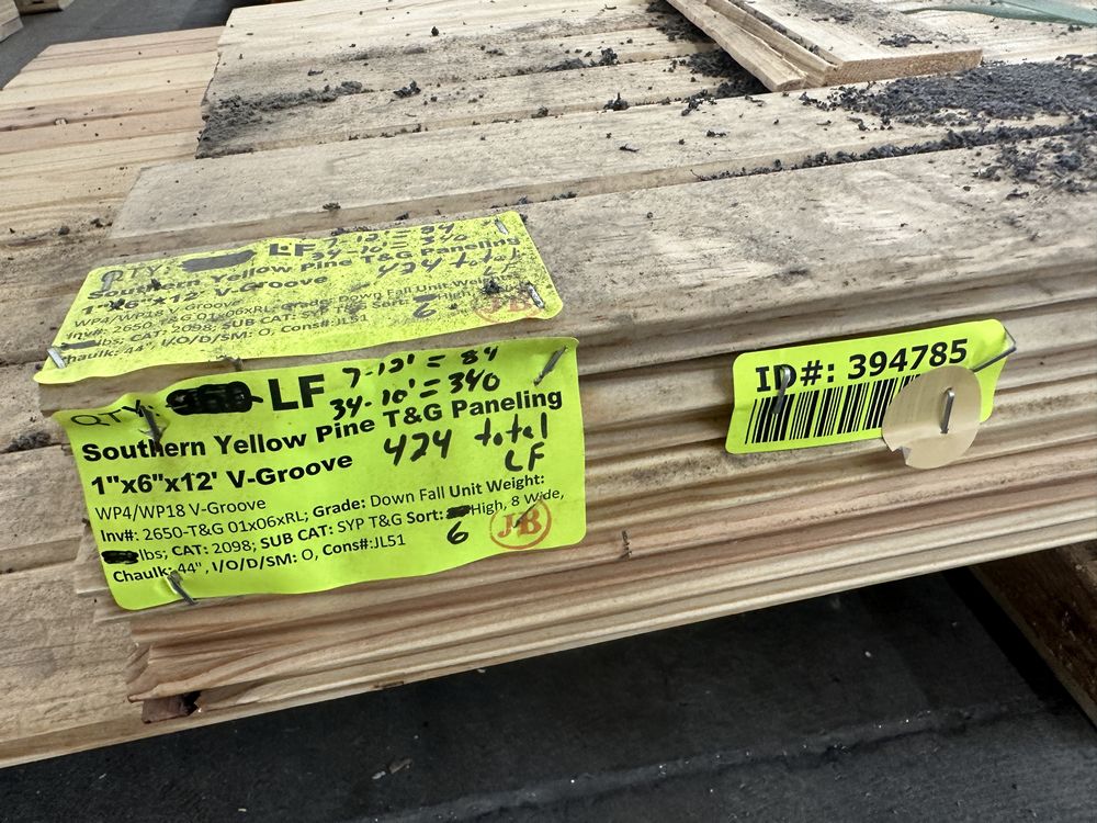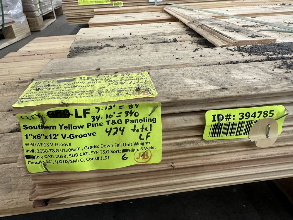 Southern Yellow Pine T&G Paneling 1"x6"x(10' &12') V-Groove. WP4/WP18 V-Groove, 7 Count of 12' Boards (84 Linear Feet Total), 34 Count of 10' Boards (340 Linear Feet Total), 41 Boards Total, Grade: Down Fall,This is a liquidated product. The Auction Company makes no express or implied representations or warranties of any kind regarding the Product. Any pre-existing retail, wholesale or manufacturer warranties will not transfer with the sale of this Product unless expressly stated otherwise on this page. The Buyer accepts the Product in as-is condition, with all faults. Weight: x. Sold by: Linear Foot. Sold as: Quantity X Price. Inventory #: 2650-T&G 01x06xRL