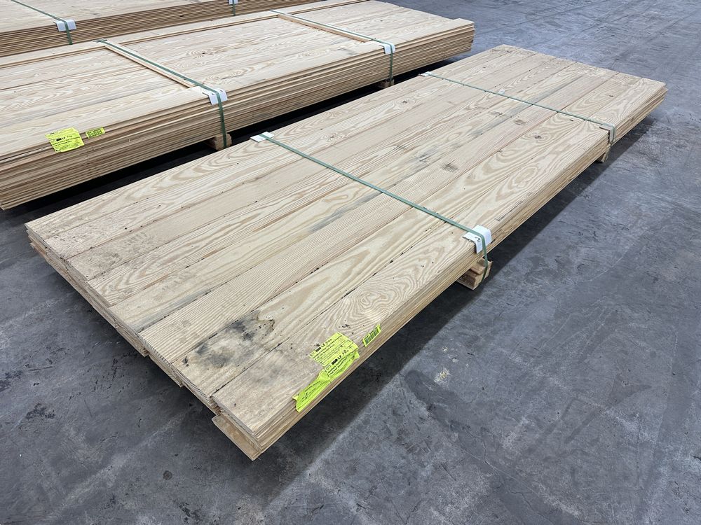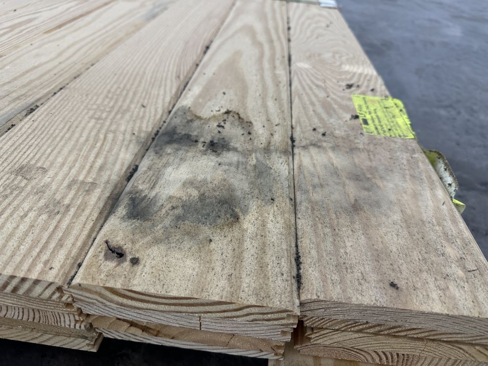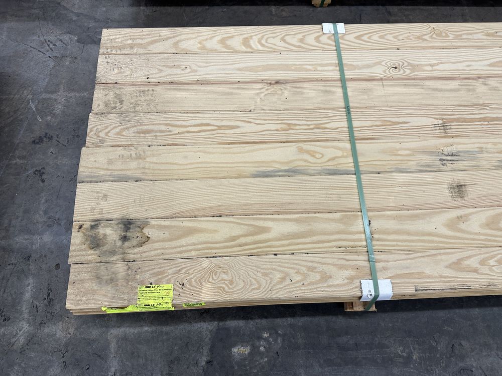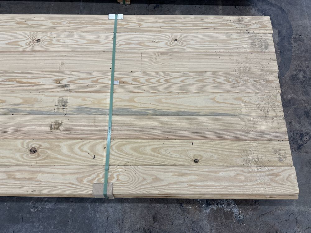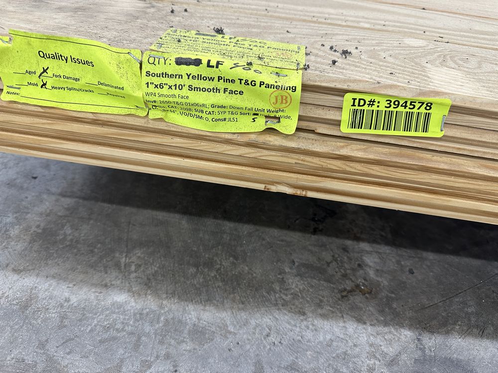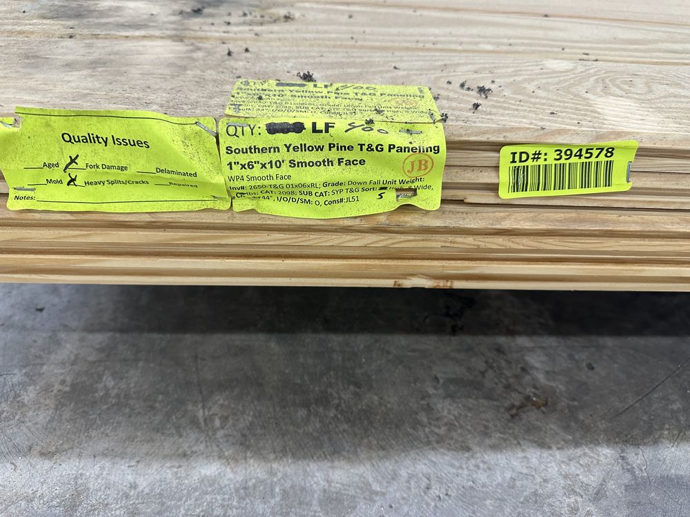 Southern Yellow Pine T&G Paneling 1"x6"x10' **SEE DESCRIPTION**. WP4 Smooth Face, 40 boards, Grade: Down Fall, **Fork Damage, Heavy Splits/Cracks, SEE PHOTOS**,This is a liquidated product. The Auction Company makes no express or implied representations or warranties of any kind regarding the Product. Any pre-existing retail, wholesale or manufacturer warranties will not transfer with the sale of this Product unless expressly stated otherwise on this page. The Buyer accepts the Product in as-is condition, with all faults. Weight: X. Sold by: Linear Foot. Sold as: Quantity X Price. Inventory #: 2650-T&G 01x06xRL