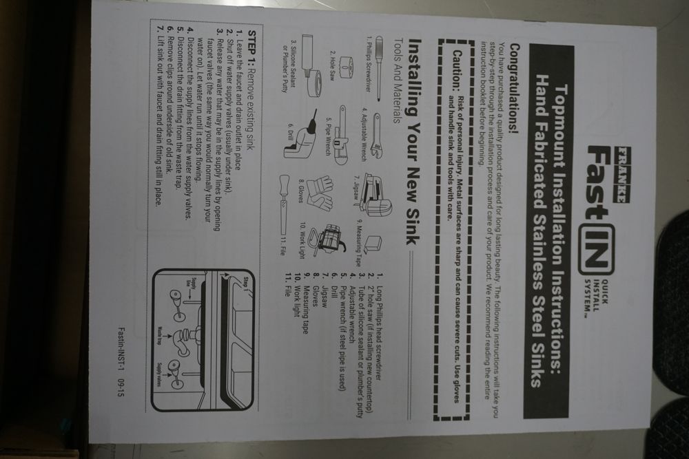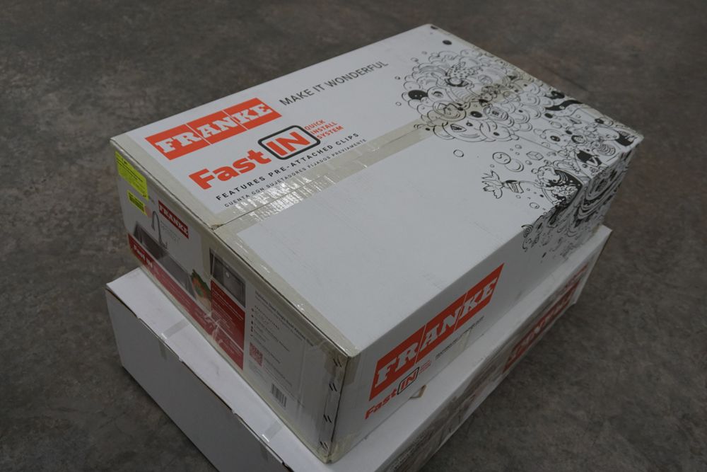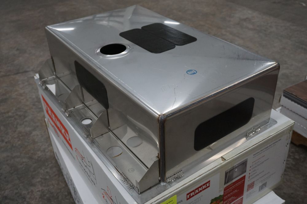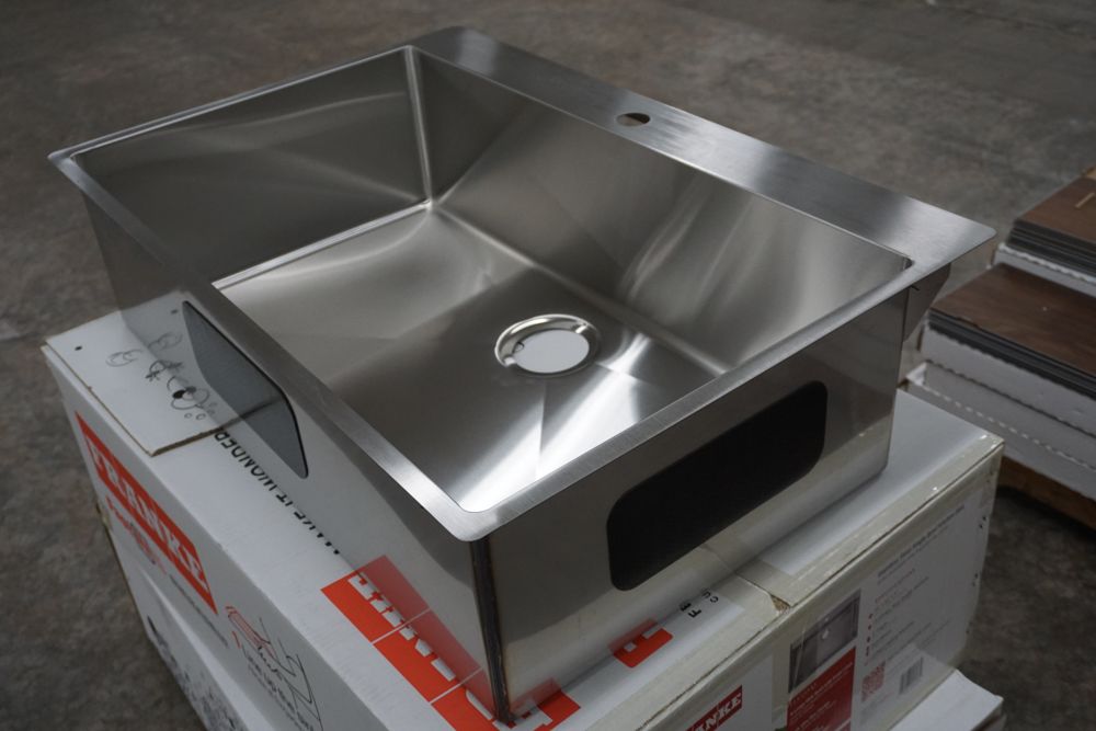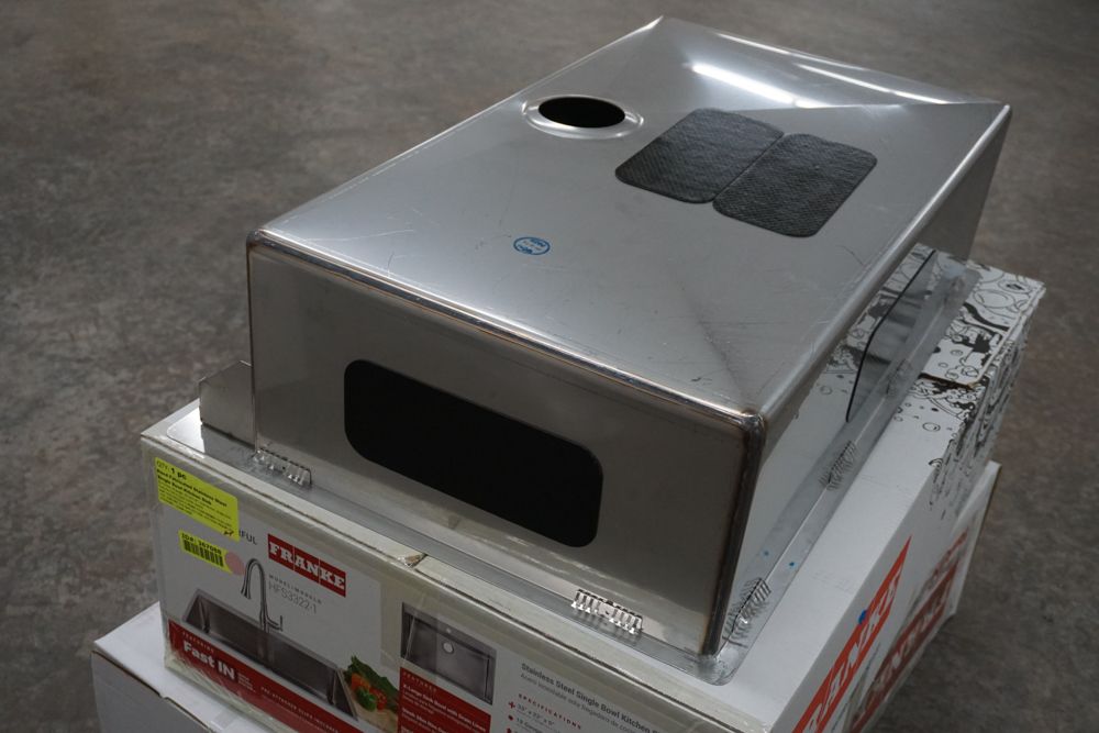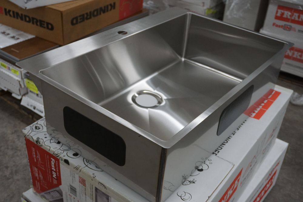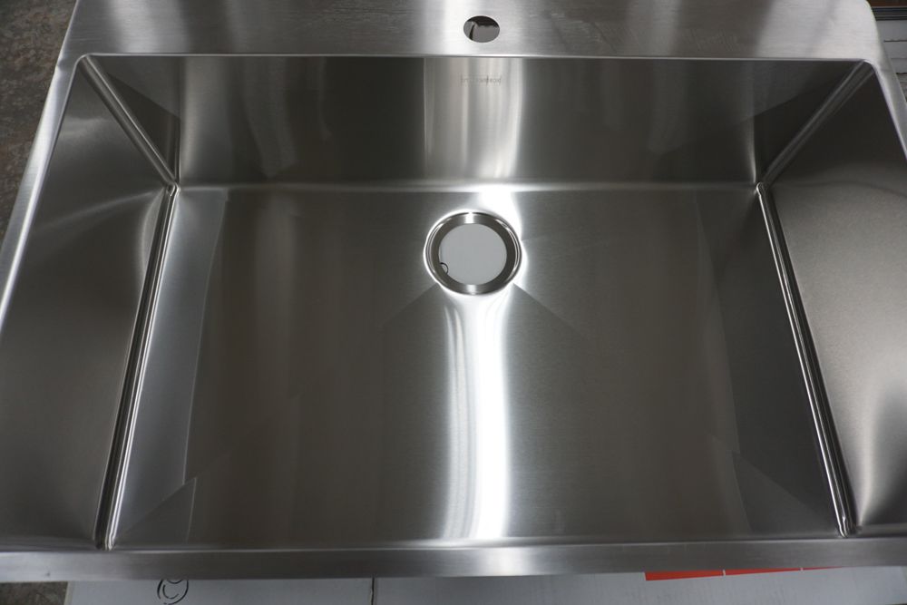 Hand Fabricated Stainless Steel Single Bowl Kitchen Sink 33"x22"x9". By Franke, 18 Gauge, 33"x22"x9", Dual Mount, Single Hole, Features Fast In, Quick Install System, Grade: A,This is a liquidated product. Any pre-existing retail, wholesale or manufacturer warranties will not transfer with the sale of this Product unless expressly stated otherwise. Weight: 32lbs. Sold by: Piece. Sold as: Quantity X Price. Inventory #: 5016-HFS3322-1