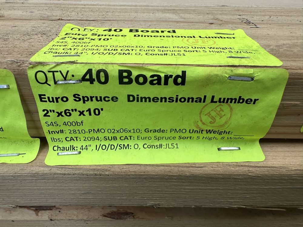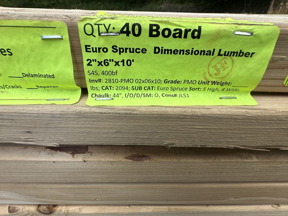 Euro Spruce Dimensional Lumber 2"x6"x10' **SEE DESCRIPTION**. S4S, 400 Board Foot Grade: PMO **Fork Damage, Mold, Heavy Splits/Cracks**,This is a liquidated product. The Auction Company makes no express or implied representations or warranties of any kind regarding the Product. Any pre-existing retail, wholesale or manufacturer warranties will not transfer with the sale of this Product unless expressly stated otherwise on this page. The Buyer accepts the Product in as-is condition, with all faults. Weight: X. Sold by: Board. Sold as: Quantity X Price. Inventory #: 2810-PMO 02x06x10