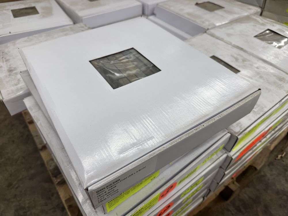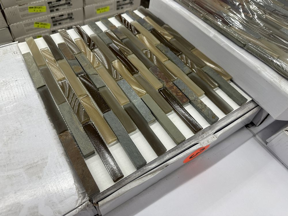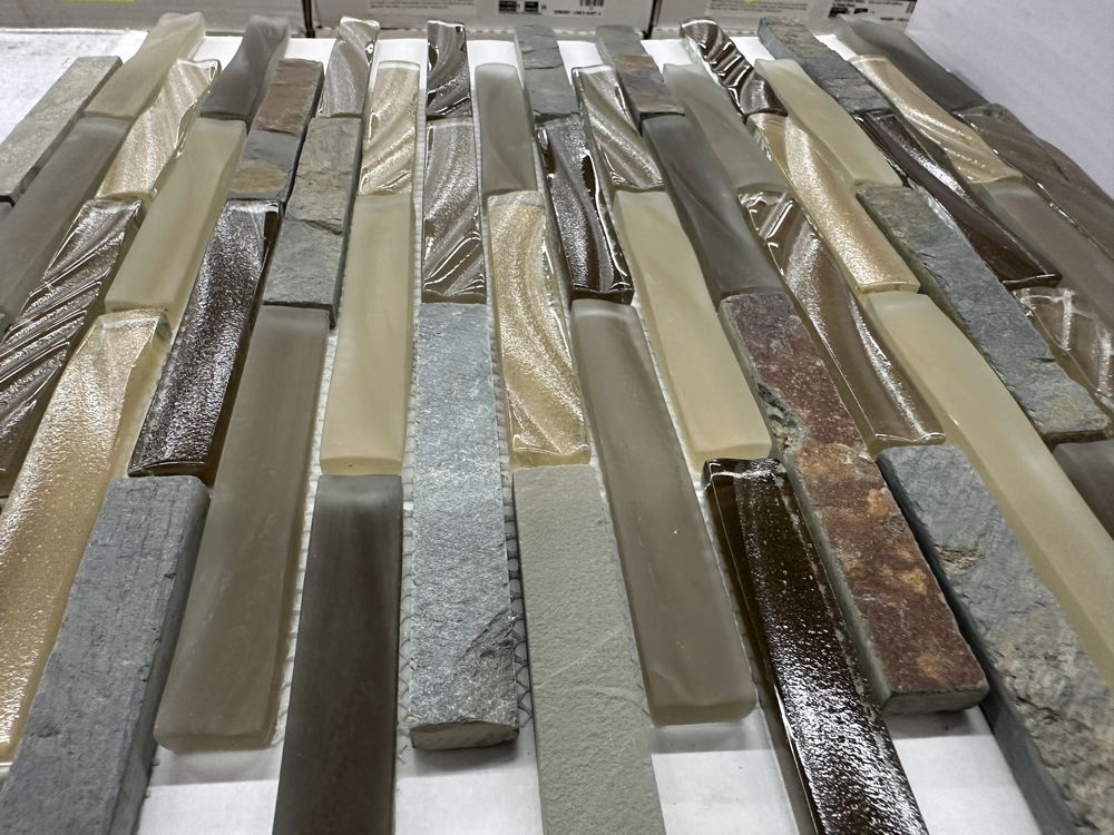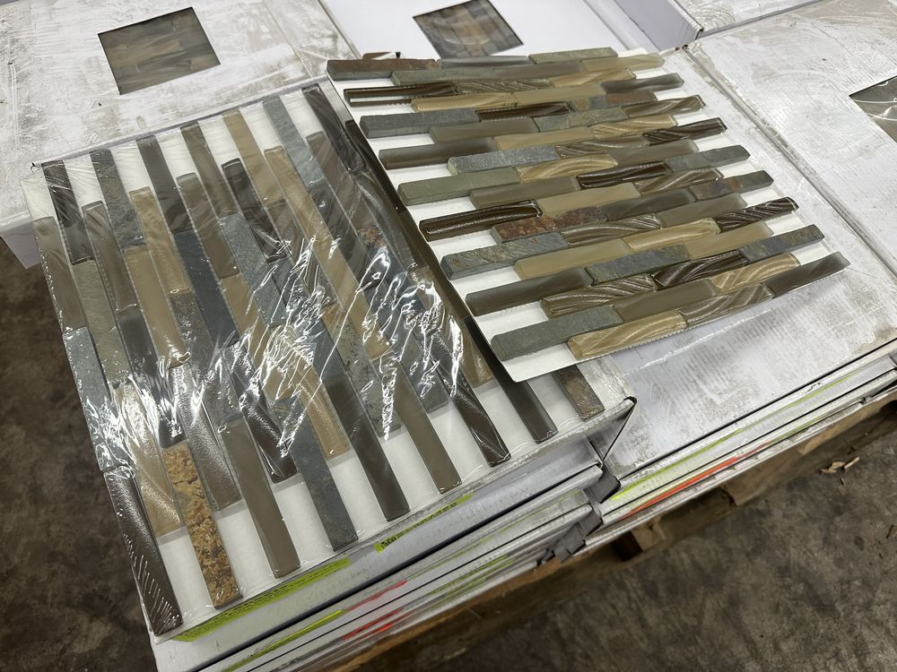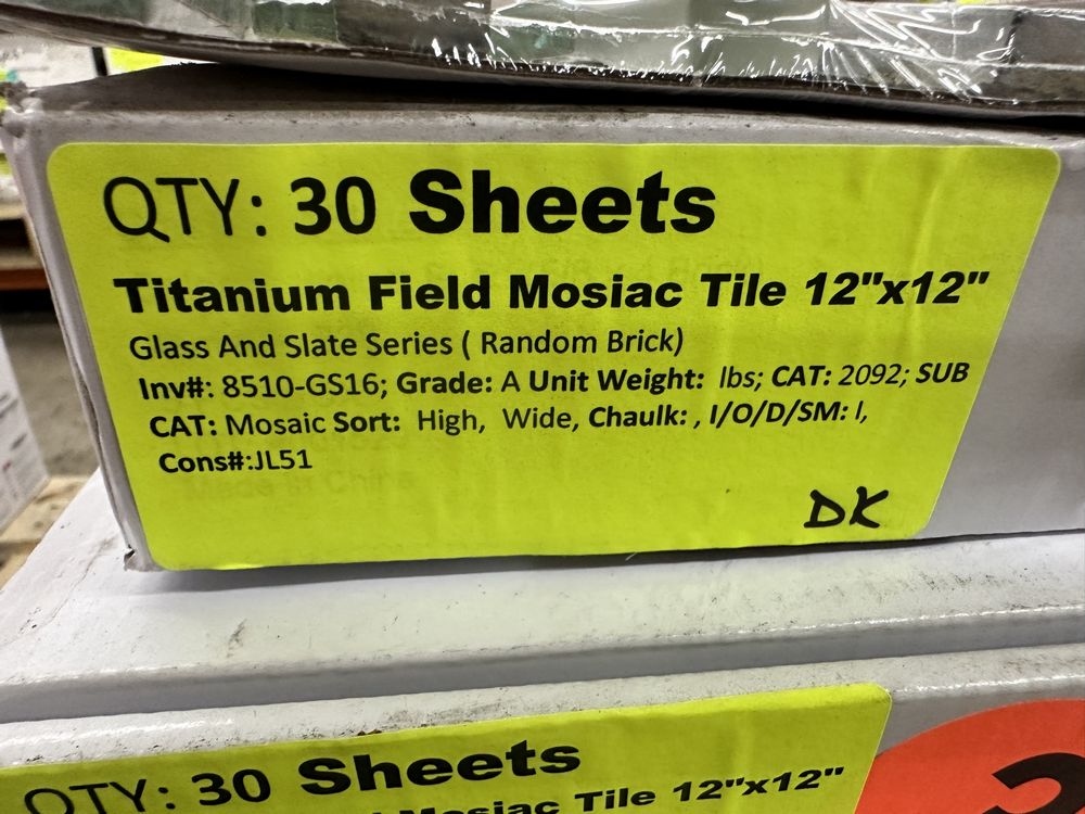 Titanium Field Mosaic Tile 12"x12". Glass and Slate Series 5 Sheets to Box 6 Boxes Grade A,This is a liquidated product. Any pre-existing retail, wholesale or manufacturer warranties will not transfer with the sale of this Product unless expressly stated otherwise. Weight: X. Sold by: Sheets. Sold as: Quantity X Price. Inventory #: 8510-GS16