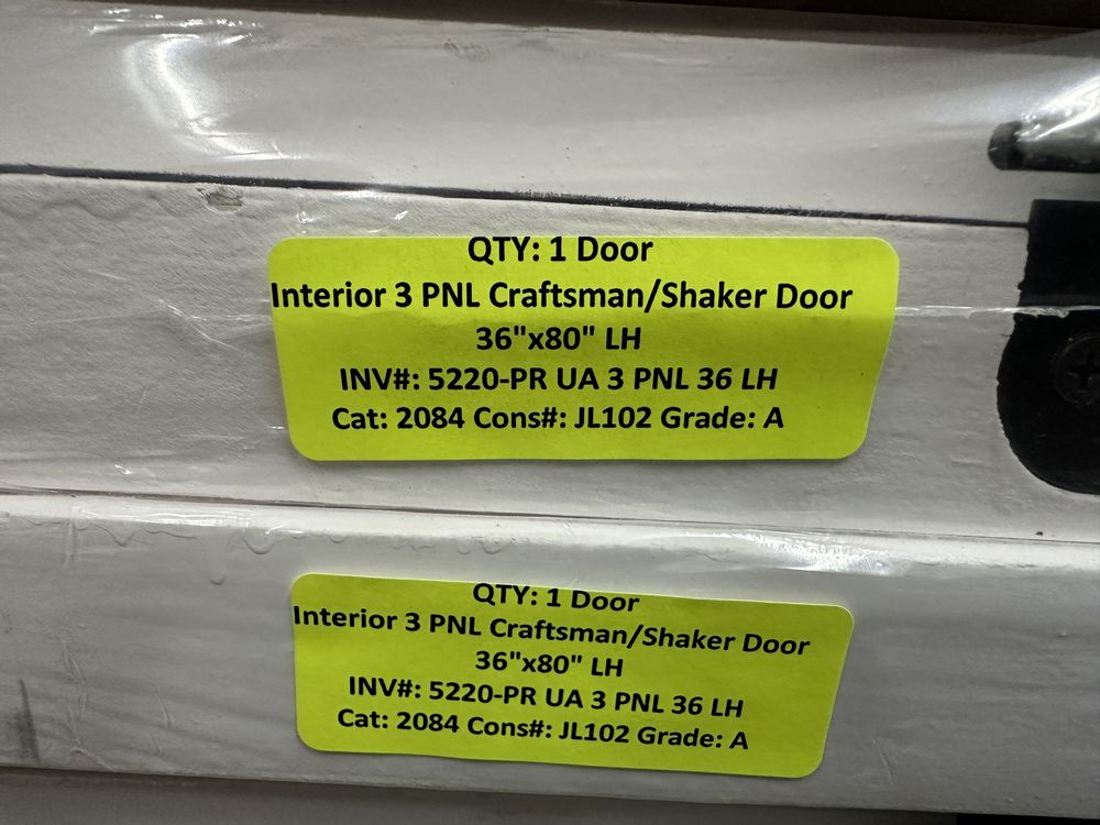 Interior 3 PNL Craftsman/Shaker Door 36"x80" LH (Unassembled). Grade: A,This is a liquidated product. The Auction Company makes no express or implied representations or warranties of any kind regarding the Product. Any pre-existing retail, wholesale or manufacturer warranties will not transfer with the sale of this Product unless expressly stated otherwise on this page. The Buyer accepts the Product in as-is condition, with all faults. Weight: x. Sold by: Door. Sold as: Quantity X Price. Inventory #: 5220-PR UA 3 PNL 36 LH