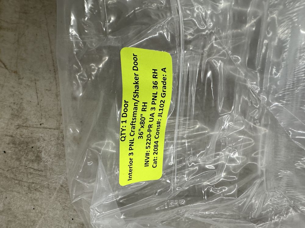 Interior 3 PNL Craftsman/Shaker Door 36"x80" RH (Unassembled). Grade: A,This is a liquidated product. The Auction Company makes no express or implied representations or warranties of any kind regarding the Product. Any pre-existing retail, wholesale or manufacturer warranties will not transfer with the sale of this Product unless expressly stated otherwise on this page. The Buyer accepts the Product in as-is condition, with all faults. Weight: x. Sold by: Door. Sold as: Quantity X Price. Inventory #: 5220-PR UA 3 PNL 36 RH