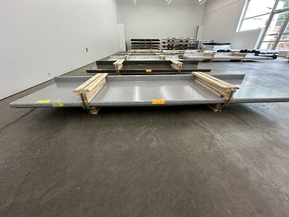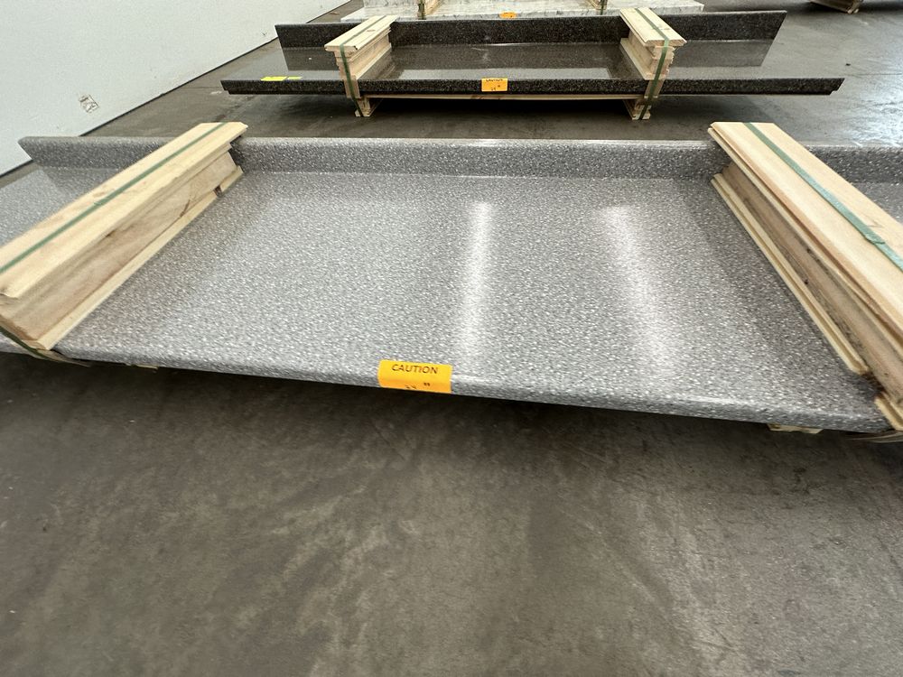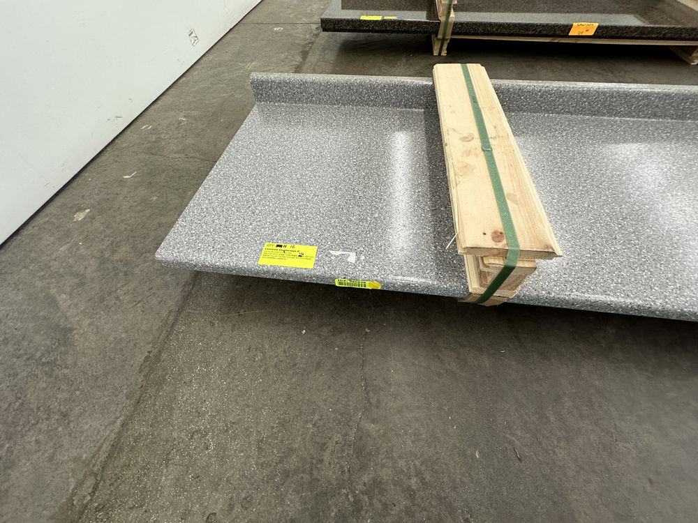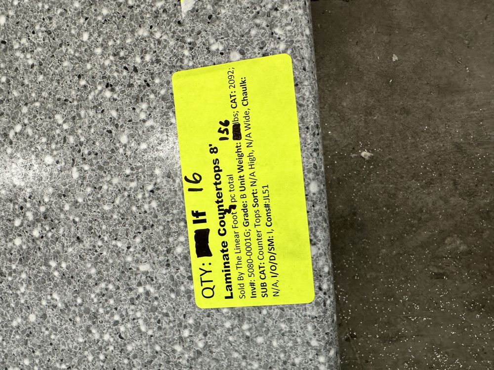 Laminate Countertops 8'. Sold By The Linear Foot, 2 pieces total Grade: B,This is a liquidated product. Any pre-existing retail, wholesale or manufacturer warranties will not transfer with the sale of this Product unless expressly stated otherwise. Weight: 156. Sold by: Linear Foot. Sold as: Quantity X Price. Inventory #: 5080-0001G