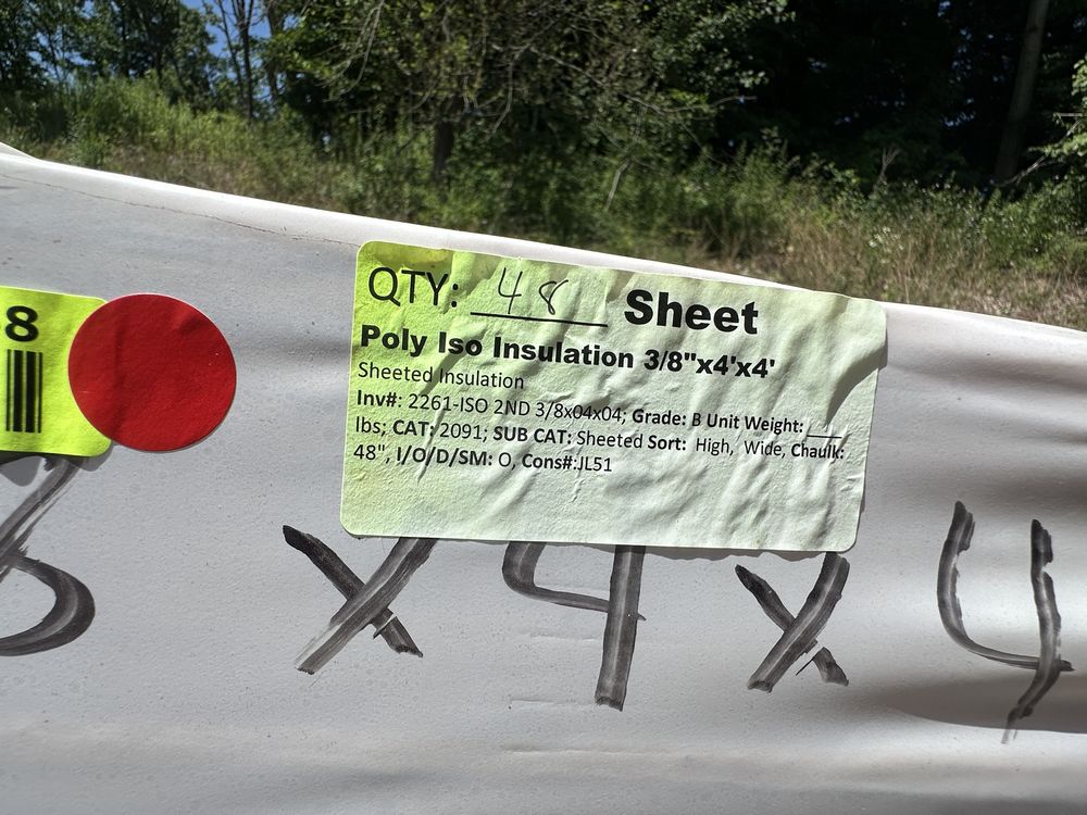 Poly ISO Insulation 3/8"x4'x4'. Sheeted Insulation, Grade:B,This is a liquidated product. The Auction Company makes no express or implied representations or warranties of any kind regarding the Product. Any pre-existing retail, wholesale or manufacturer warranties will not transfer with the sale of this Product unless expressly stated otherwise on this page. The Buyer accepts the Product in as-is condition, with all faults. Weight: x. Sold by: Sheet. Sold as: Quantity X Price. Inventory #: 2261-ISO 2ND 3/8x04x08