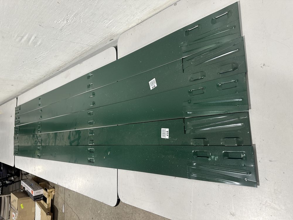 Colmet 8' 14-Gauge x 4 in. Green Steel Landscape Edging (5-Pack). Edging only no stakes. Color blends with garden and lawn surroundings or mulch, Powder coated steel helps to prevent rust and corrosion, Panels (sold separately) interlock to create required length,This is a liquidated product. The Auction Company makes no express or implied representations or warranties of any kind regarding the Product. Any pre-existing retail, wholesale or manufacturer warranties will not transfer with the sale of this Product unless expressly stated otherwise on this page. The Buyer accepts the Product in as-is condition, with all faults. Weight: . Sold by: . Sold as: Quantity X Price. Inventory #: